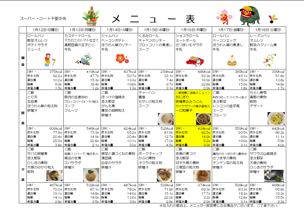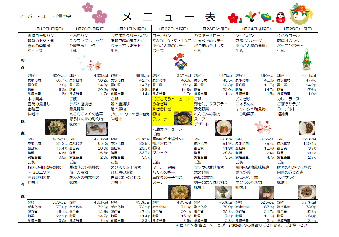 1月12日(日)~1月18日(土)のお食事メニューをご紹介します。
