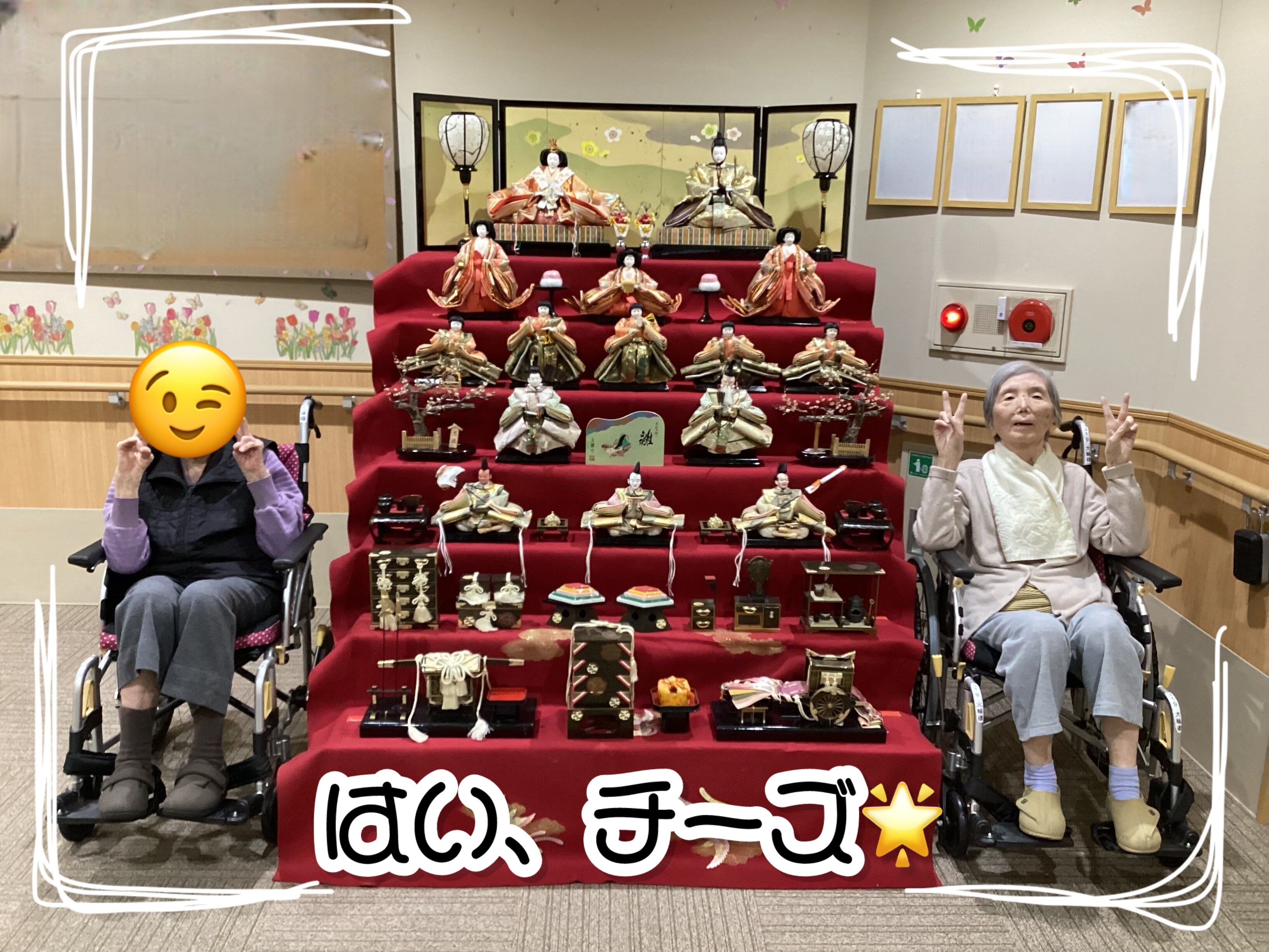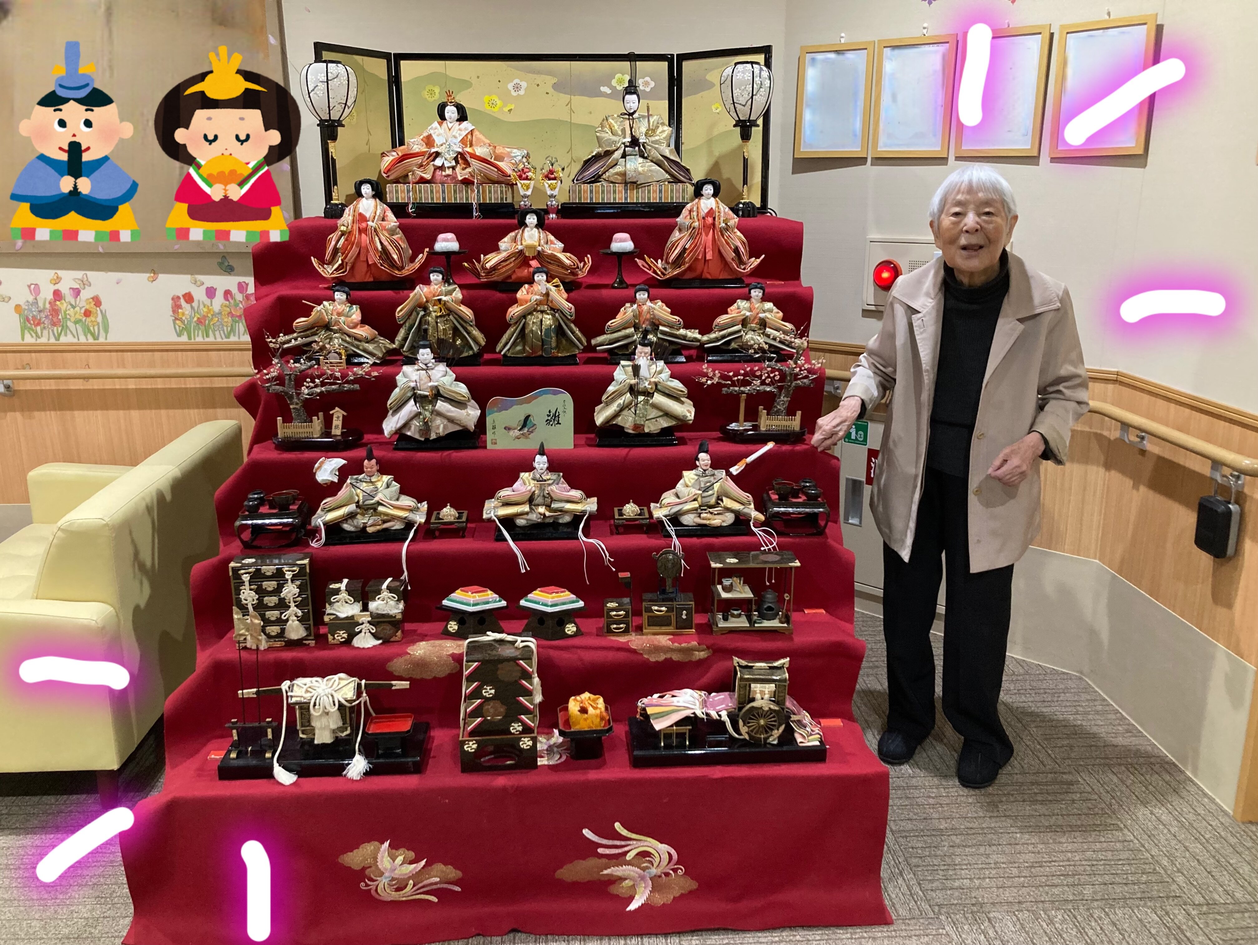 施設では立春後から、毎年恒例の立派な雛人形を飾っておりました!