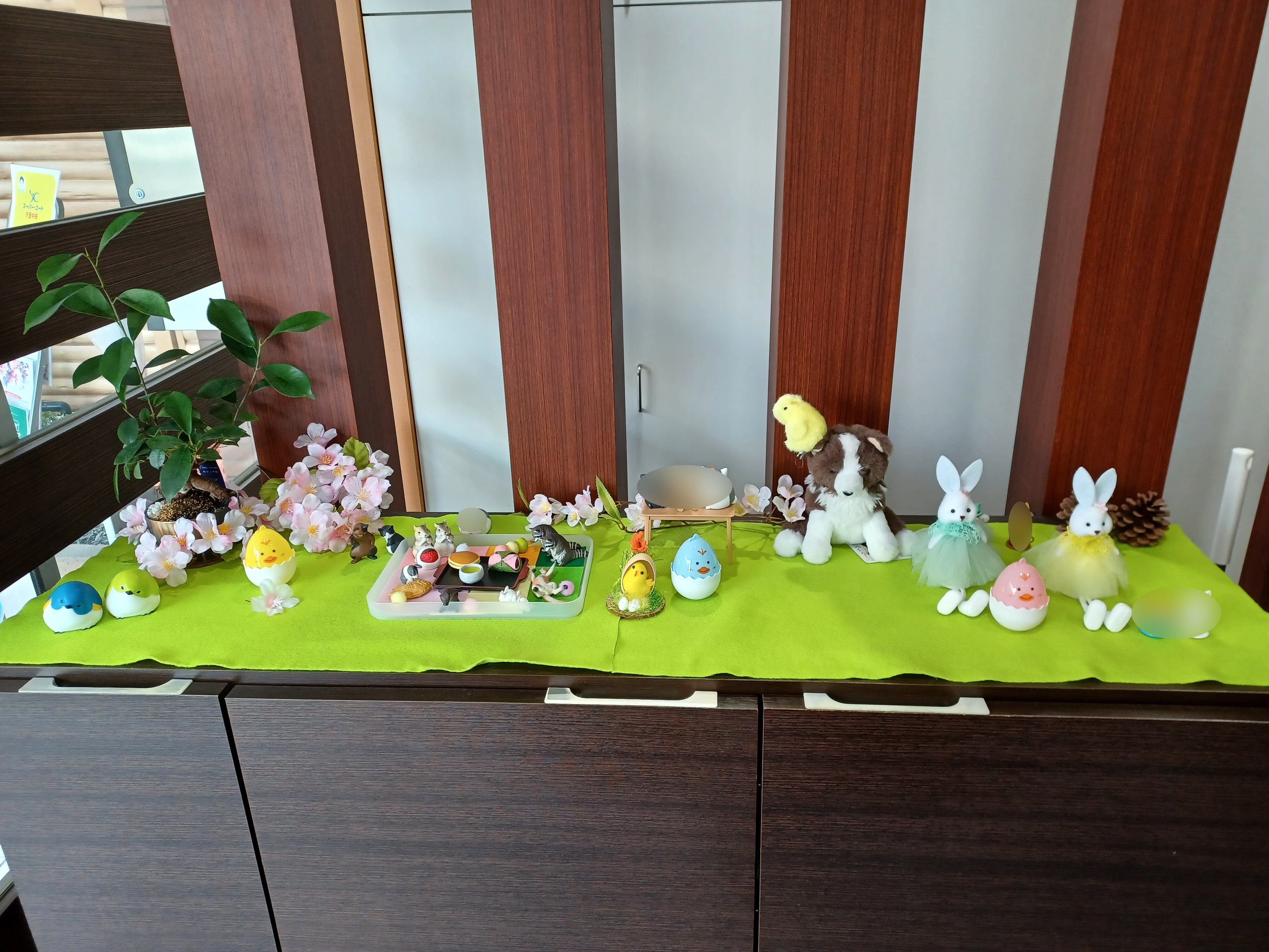もうすぐ4月!という事で、玄関の靴箱上の飾りも春らしい仕様となっております(^^)