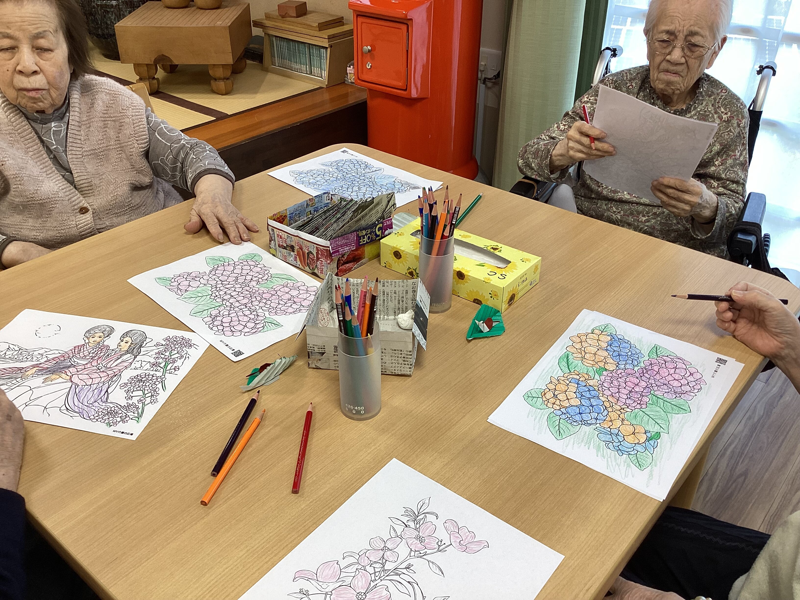 毎日14時半から実施しているレクリエーション、本日は塗り絵!