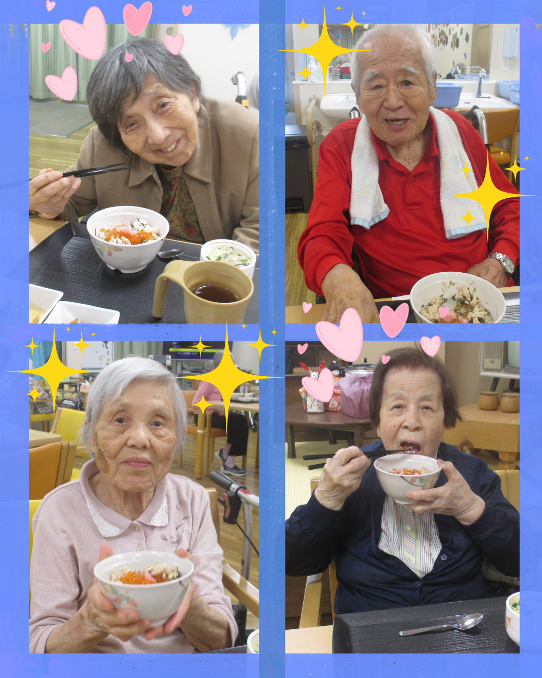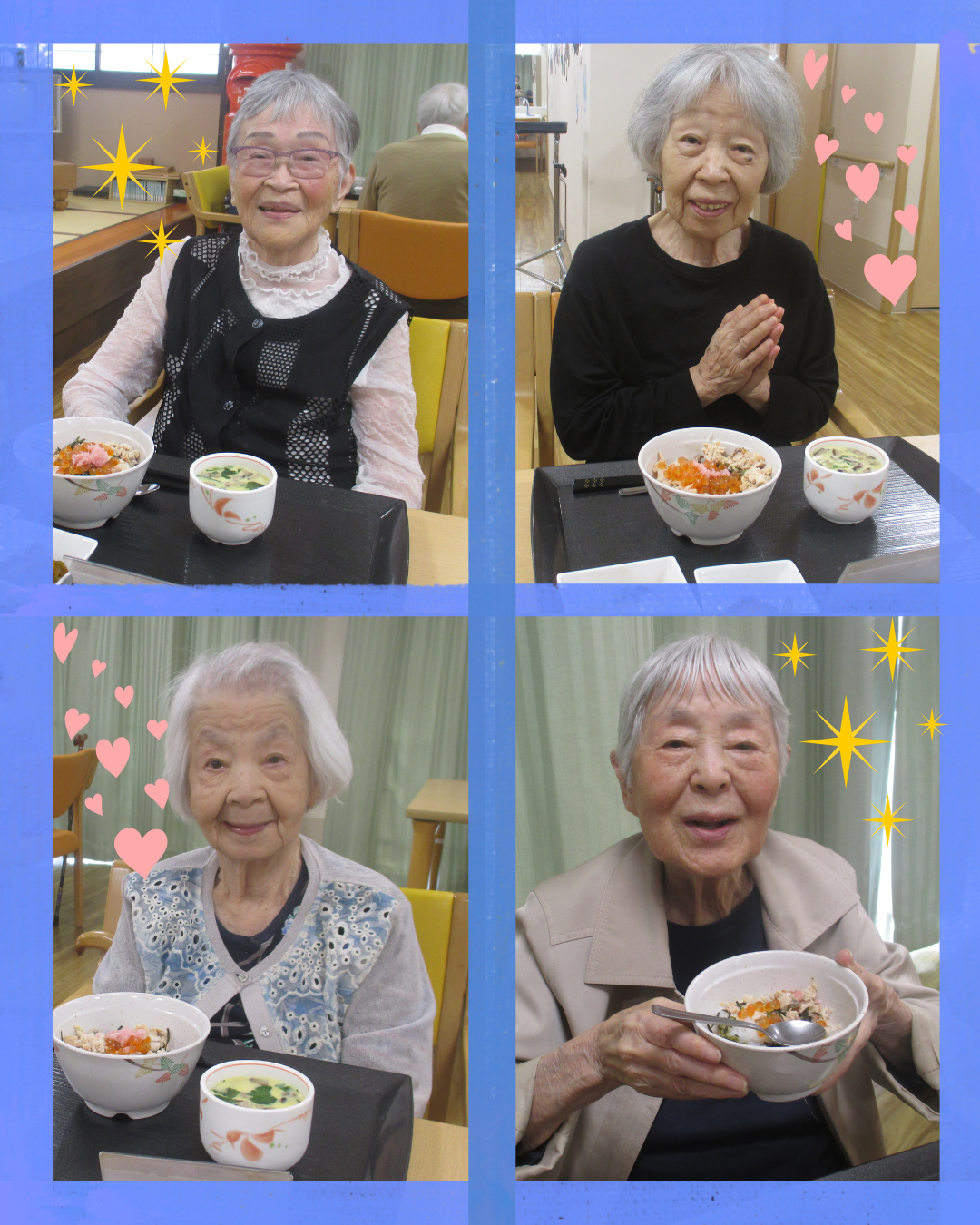 「いくらが絶品やわ~」「鮭とよく合って美味しい!」「茶碗蒸しも出汁がきいてて美味しいね」とほとんどのみなさんが完食されていました(*'▽')