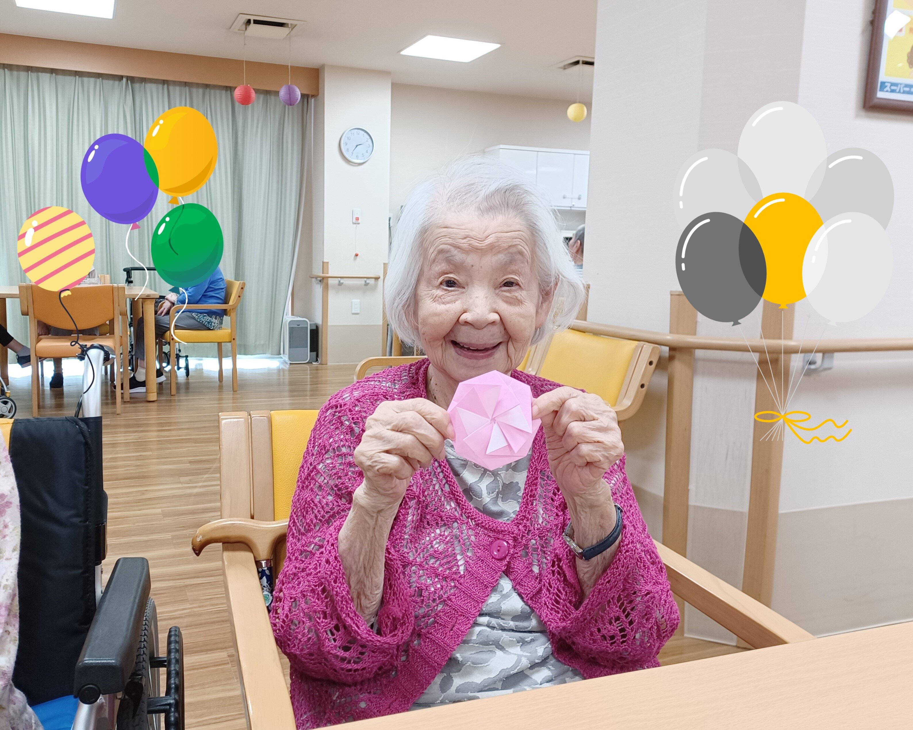 今月1日(水)の折り紙レクリエーションは花を作成しました♪