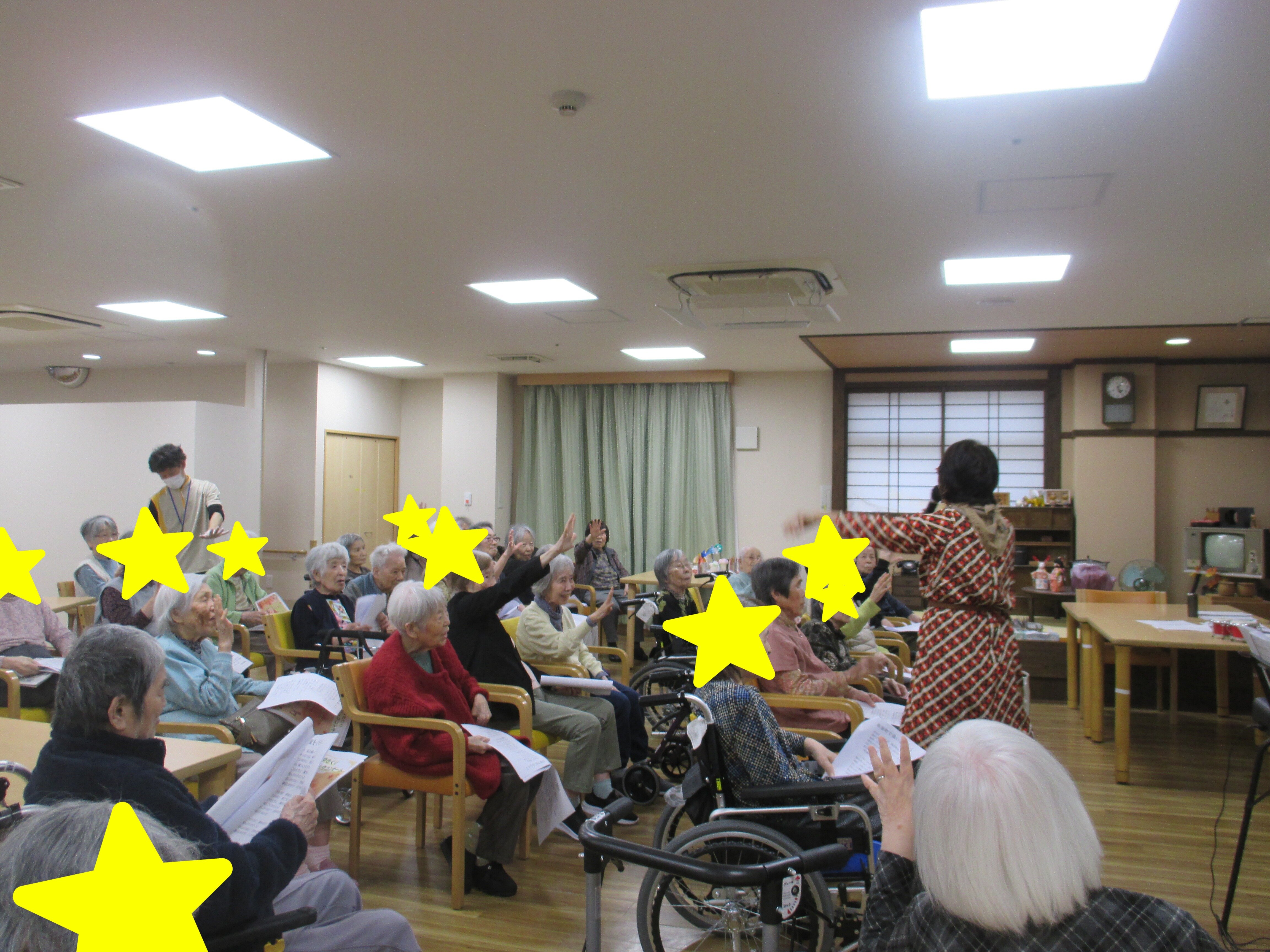入居者の皆さんが、懐かしい曲に合わせて口ずさんだり、自然と手を叩いたりしている姿がとても印象的で、音楽の力で心がひとつになる瞬間を感じることができました。