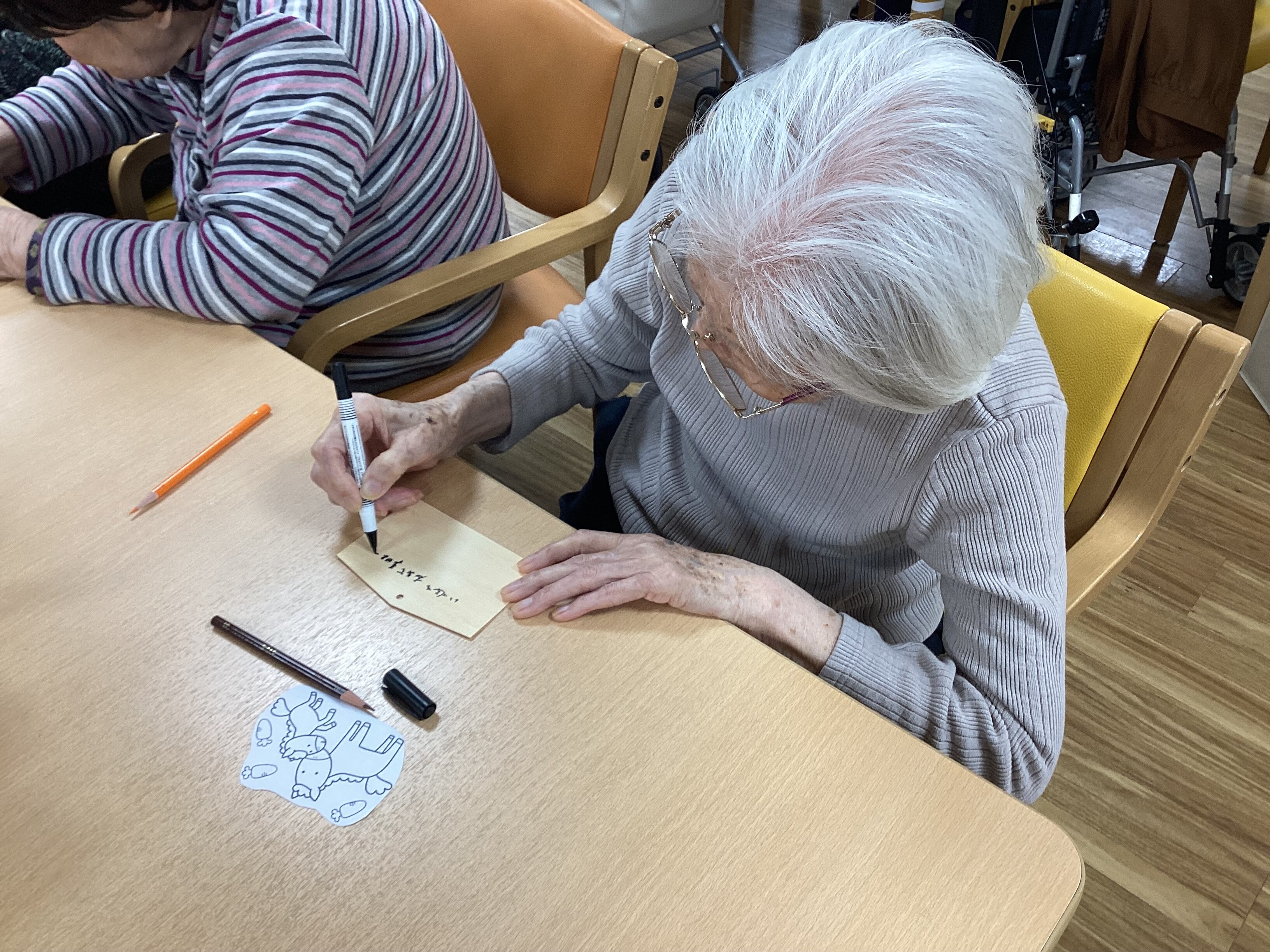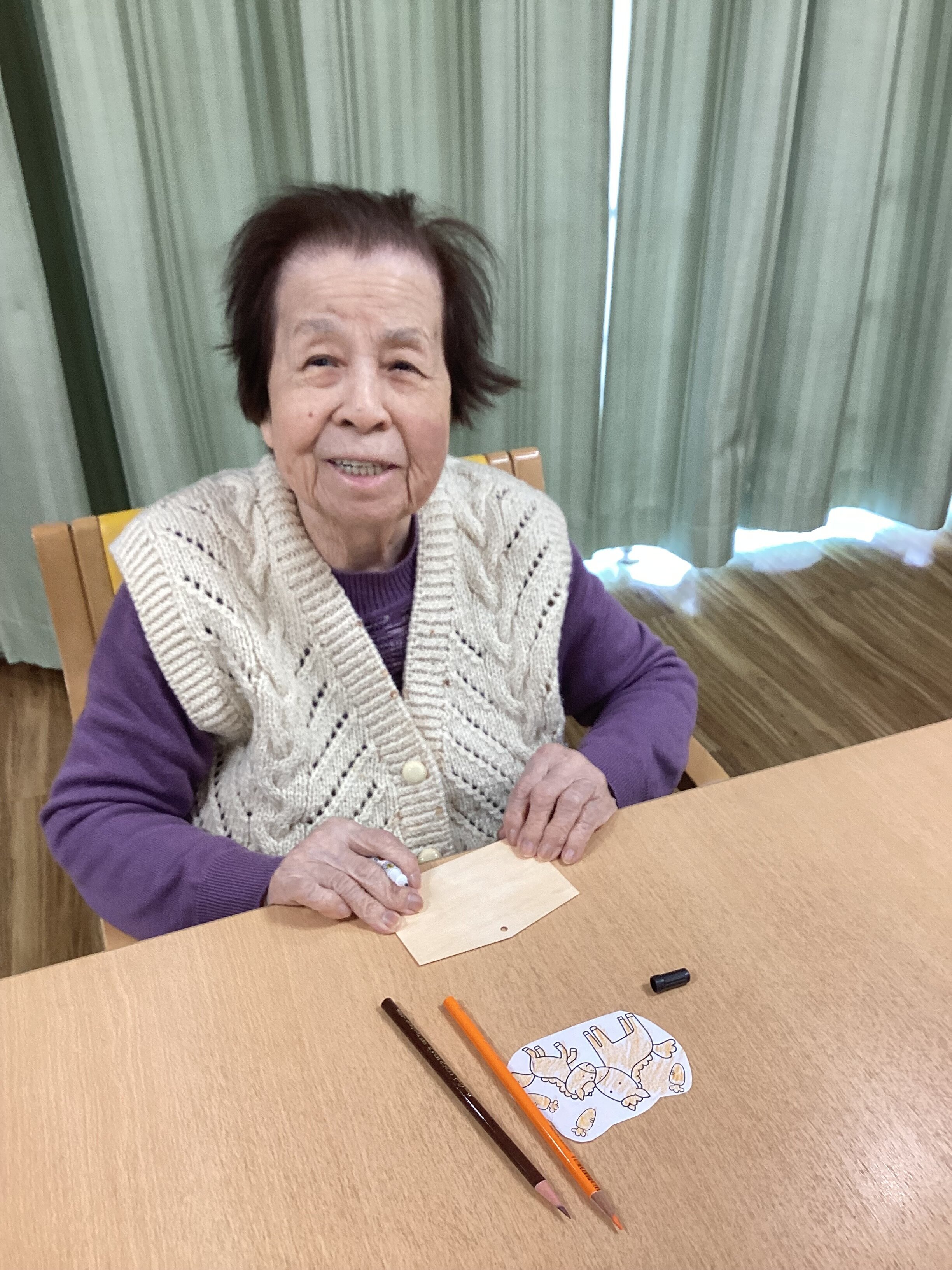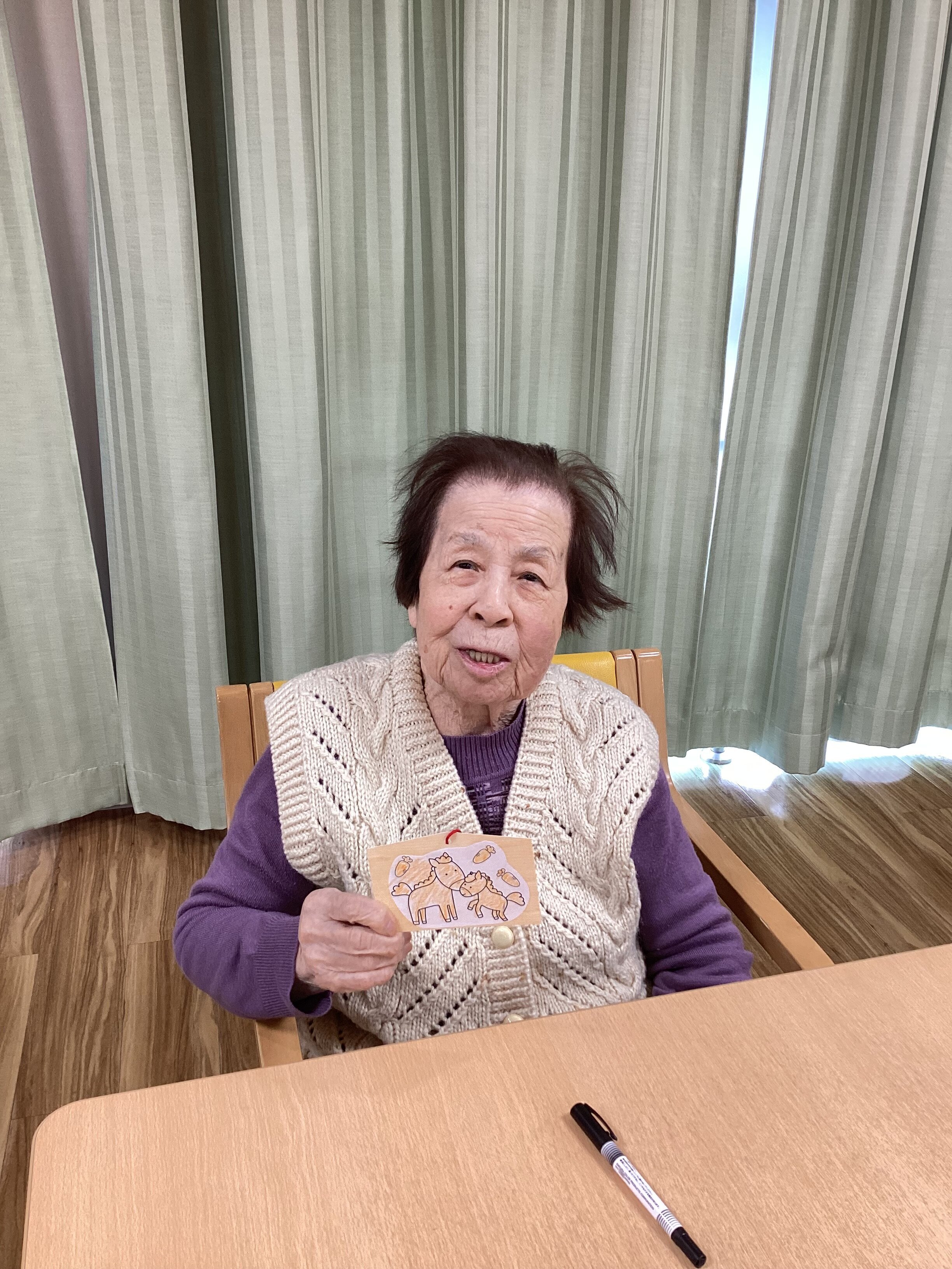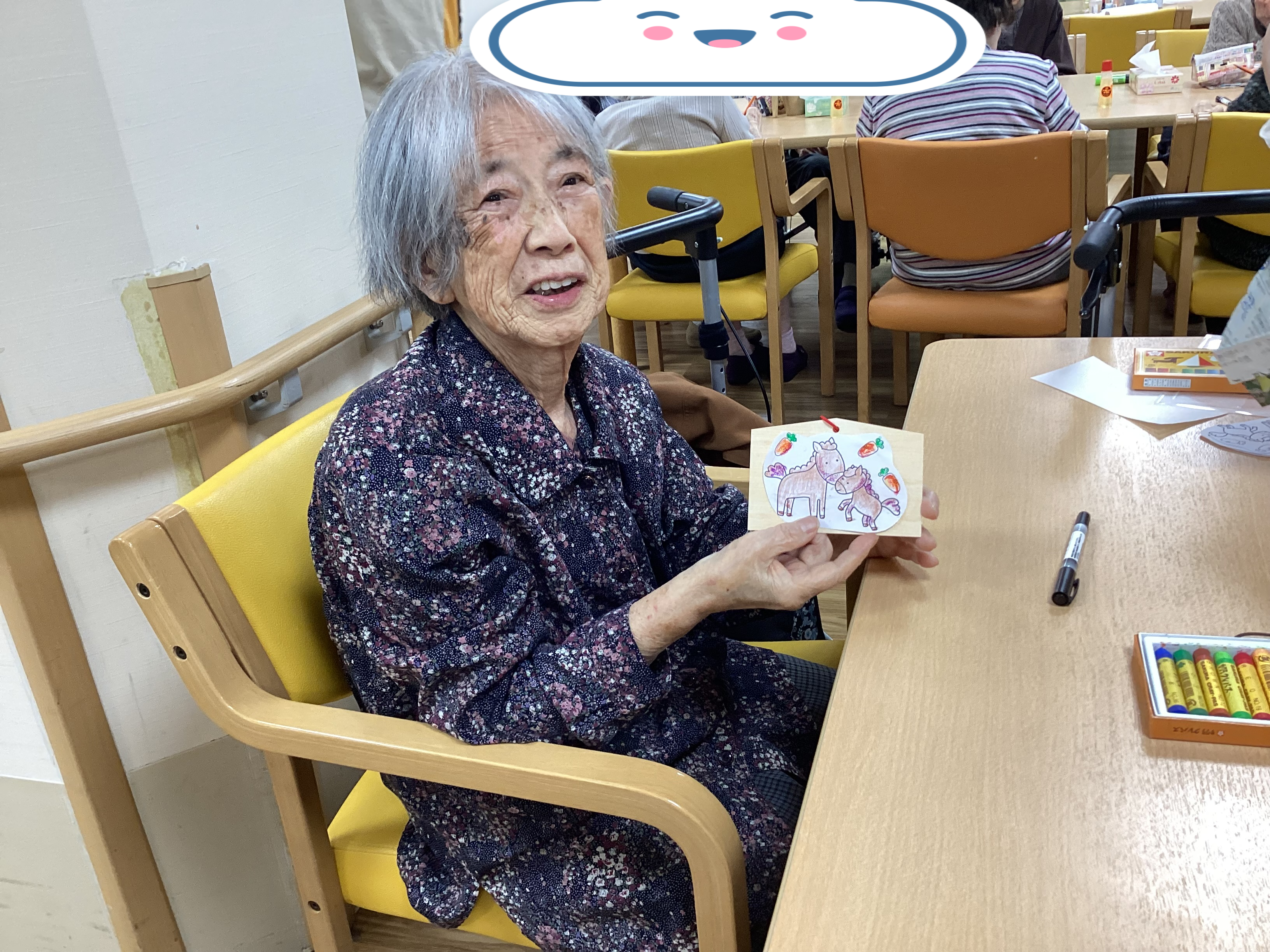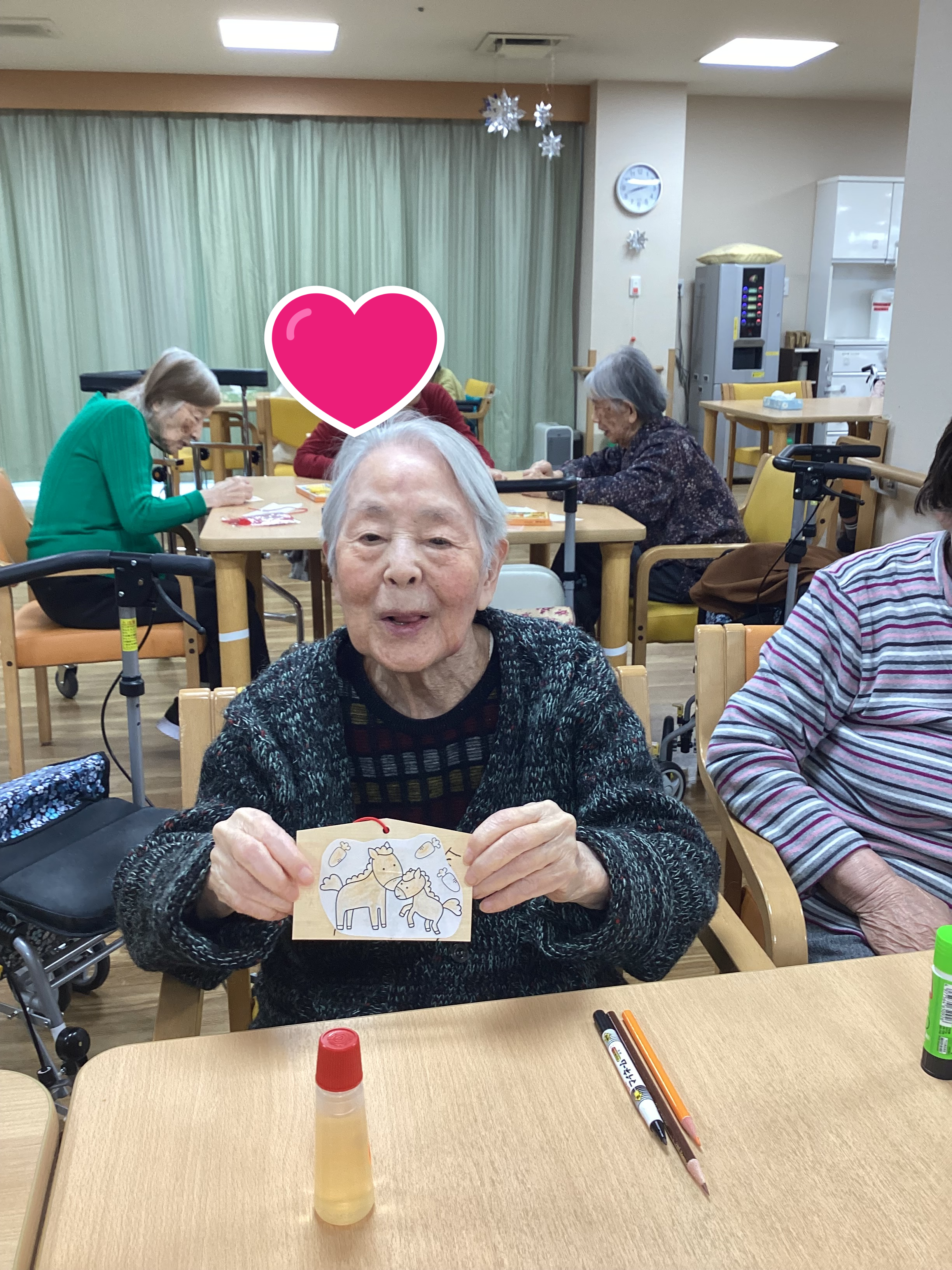 前回の福笑いに続き、睦月祭お正月レクリエーション第2弾として「絵馬づくり」を行いました。
