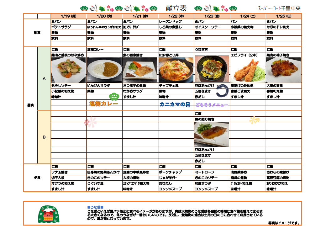 1月19日(月)~25日(日)までのお食事メニューをご紹介します!