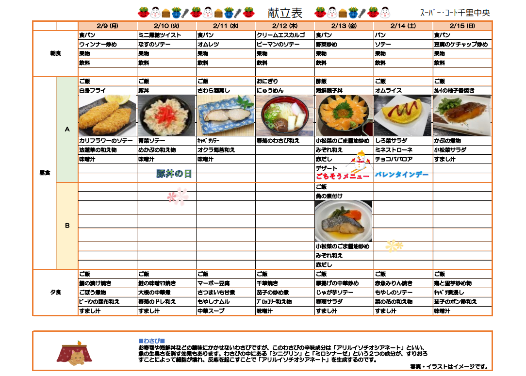 2月9日(月)~15日(日)のお食事メニューをご紹介します!