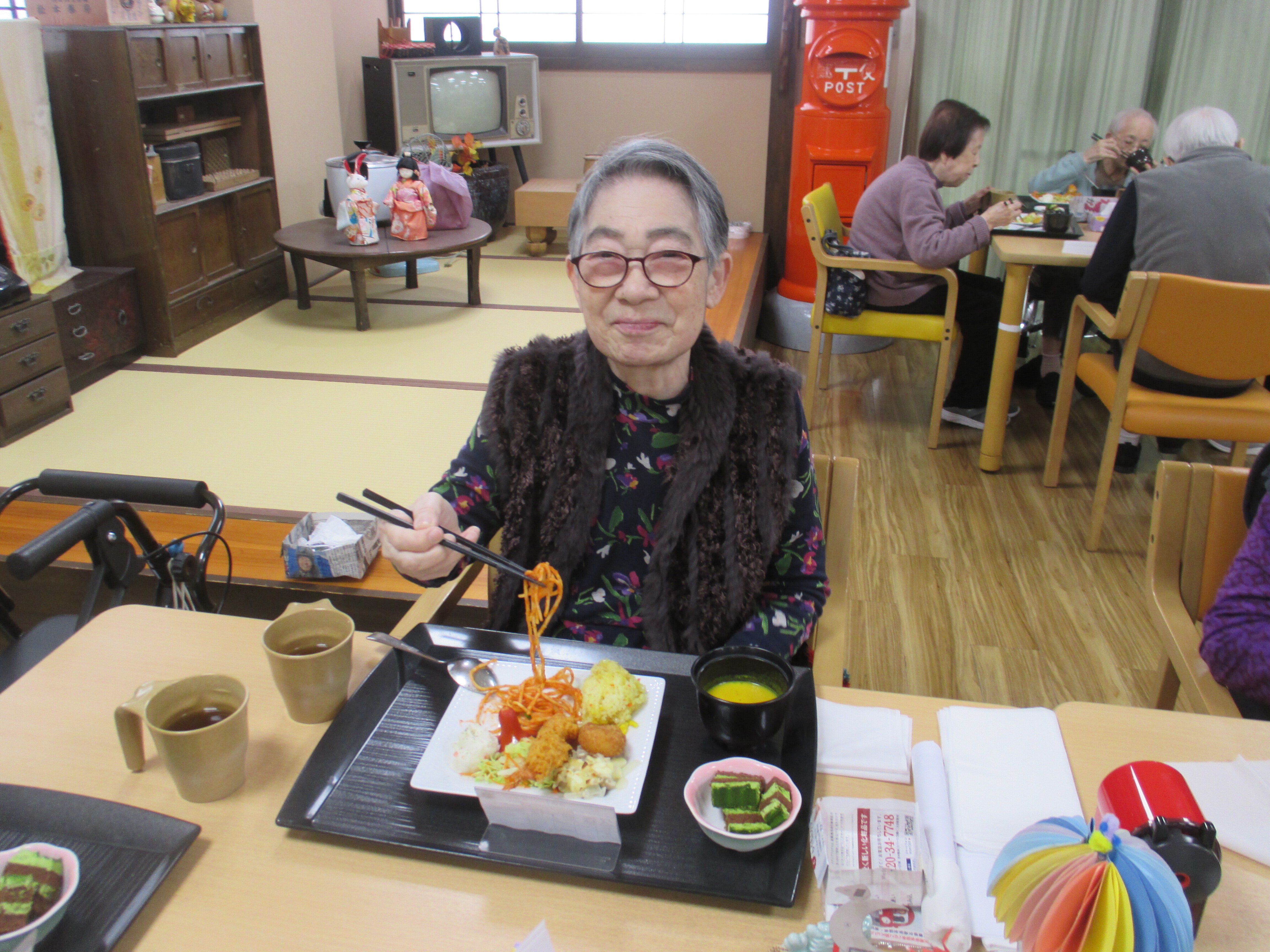プレートを前にじっくり眺められる方や、エビフライから嬉しそうに召し上がる方、ナポリタンを「昔よく食べたよ」とお話しされる方など、それぞれに楽しまれているご様子が印象的でした♪