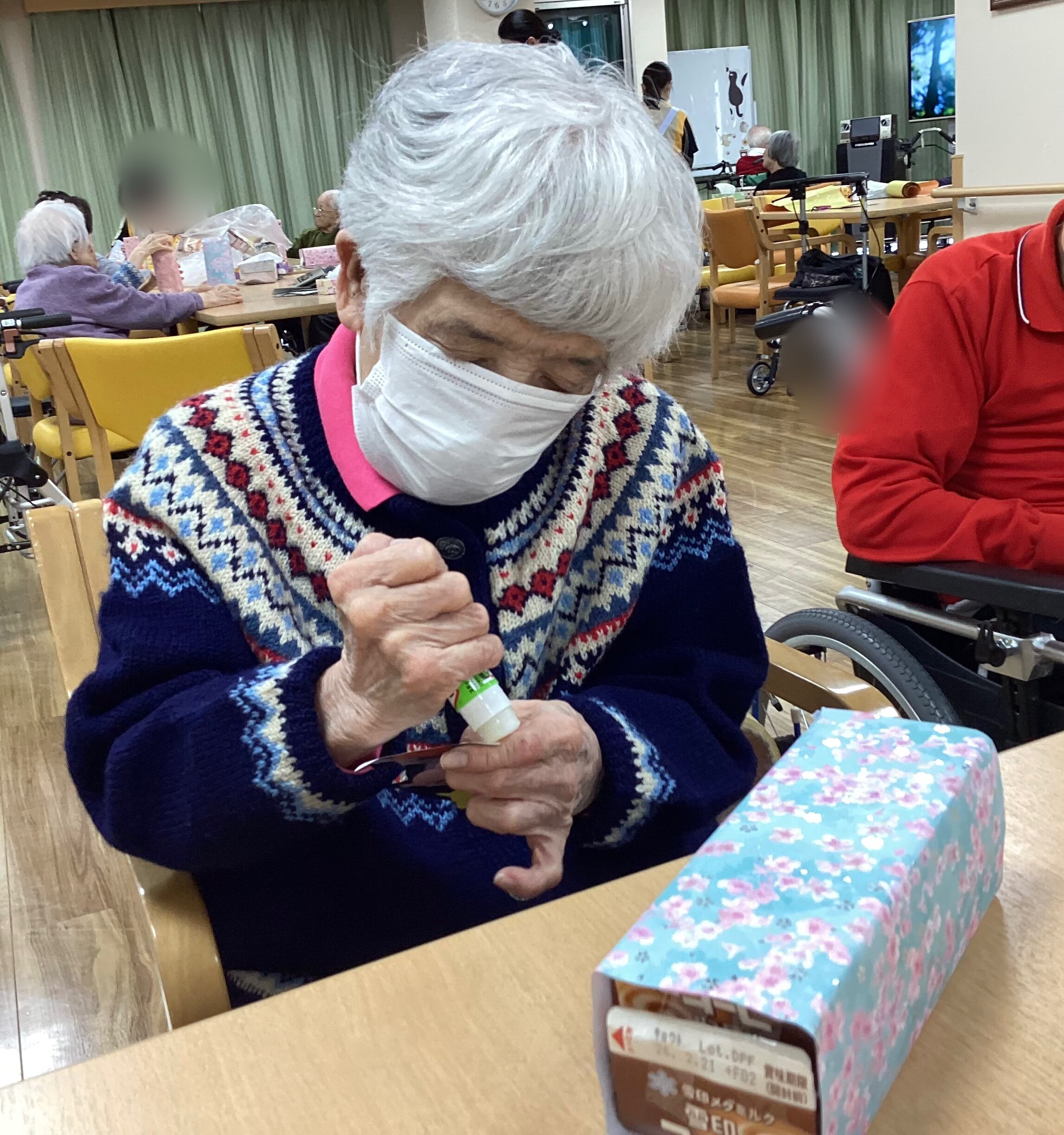 来月のひな祭りレクリエーションに向けて、制作レクを行いました!