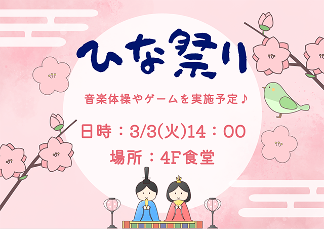 今月は、3日に「ひな祭り」レクを開催いたします♪