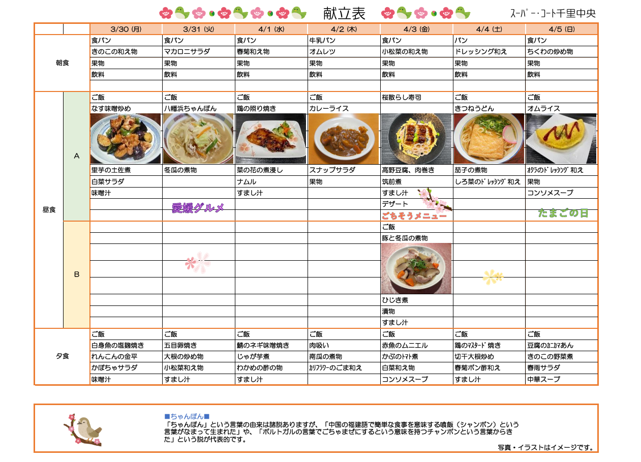 3/30(月)~4/5(日)のお食事メニューをご紹介します!