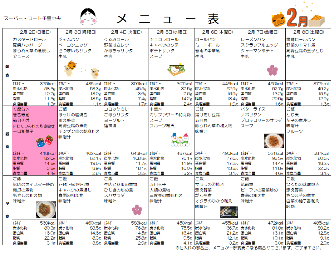 12月8日(月)~14日(日)の食事メニューをご紹介します!
