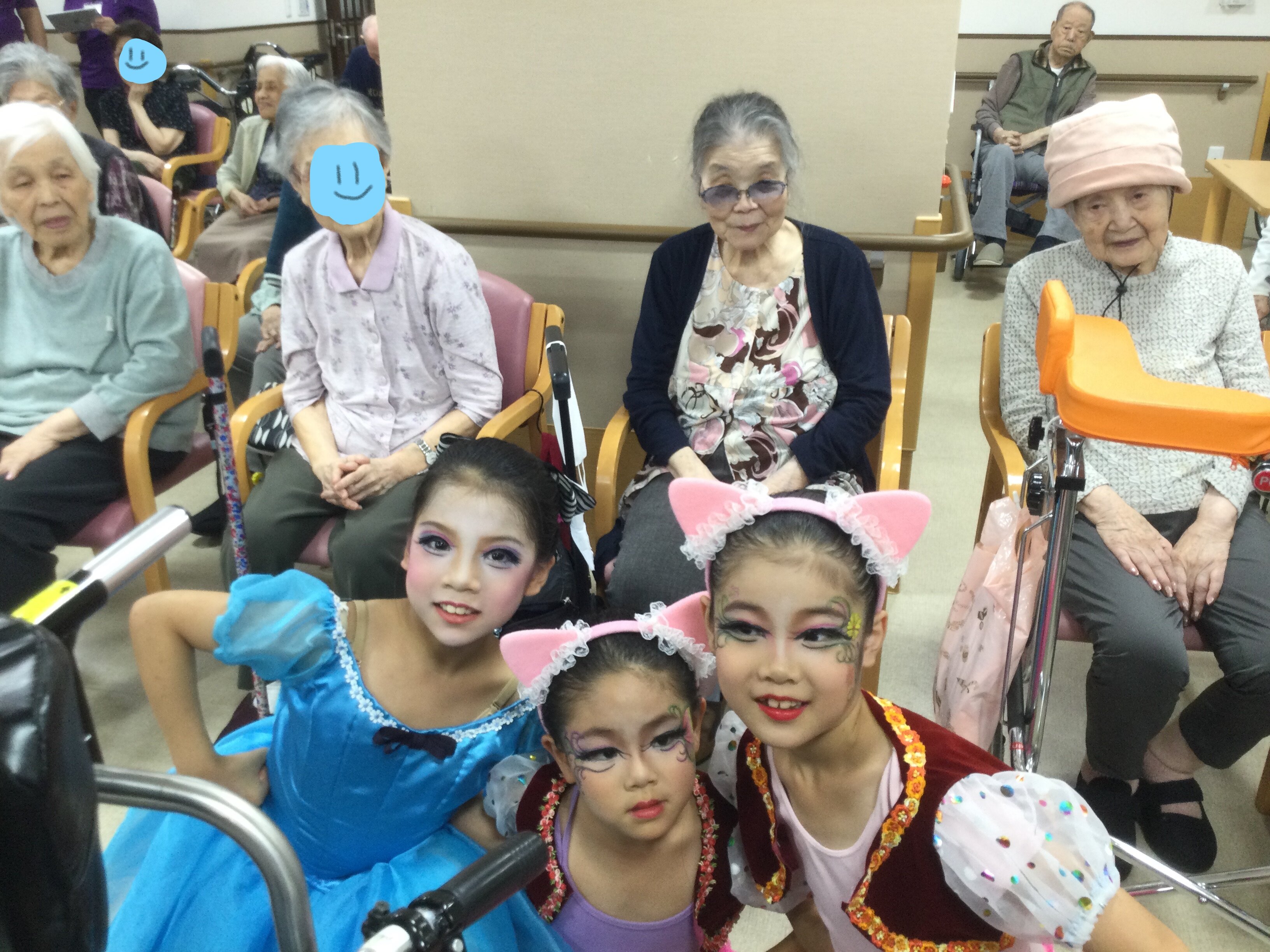 可愛らしい衣装、お化粧、何よりも魅力的な踊りにご入居者は大喜び!