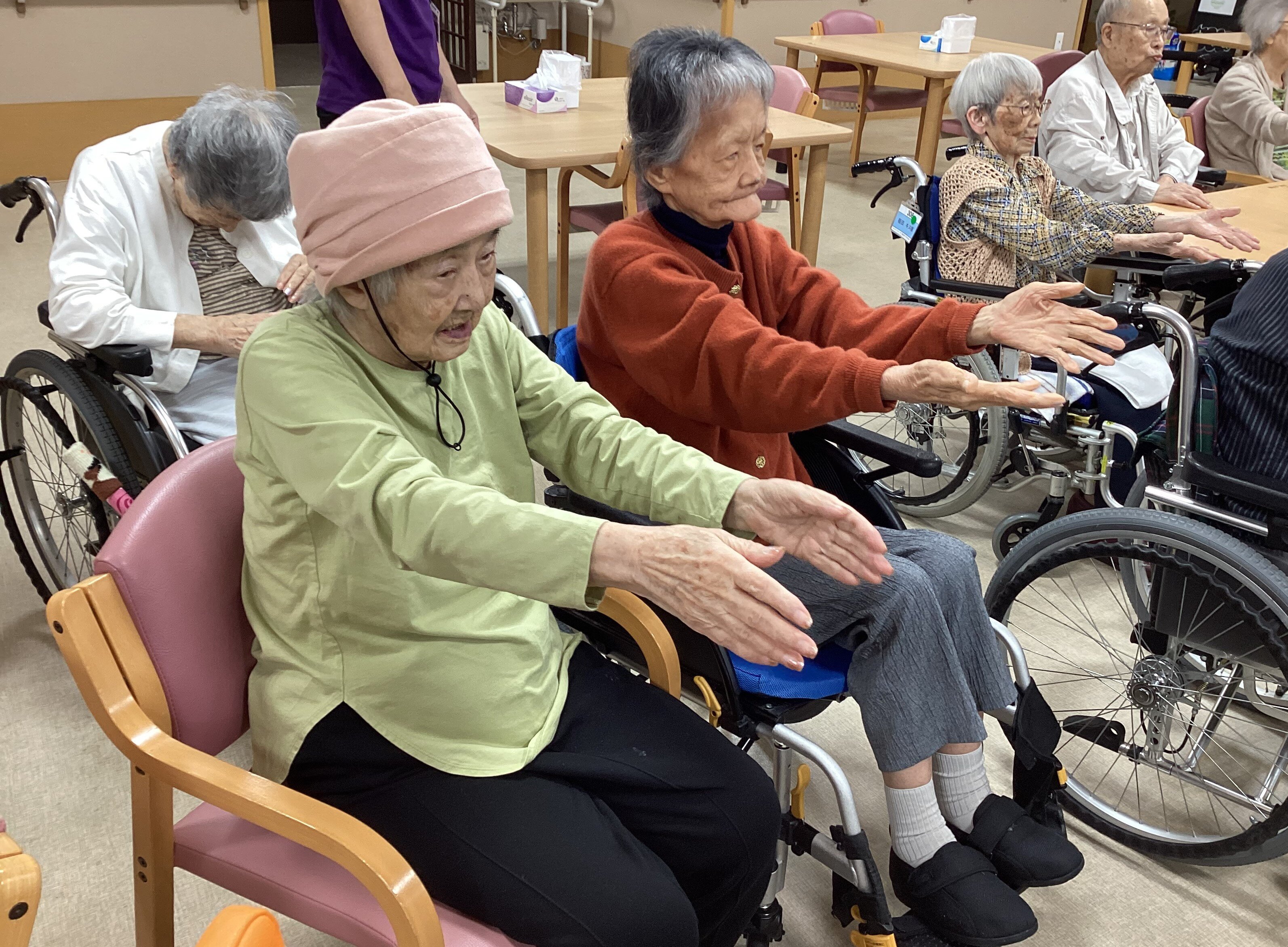 夕焼け小焼けの曲に合わせて首のストレッチもしました。