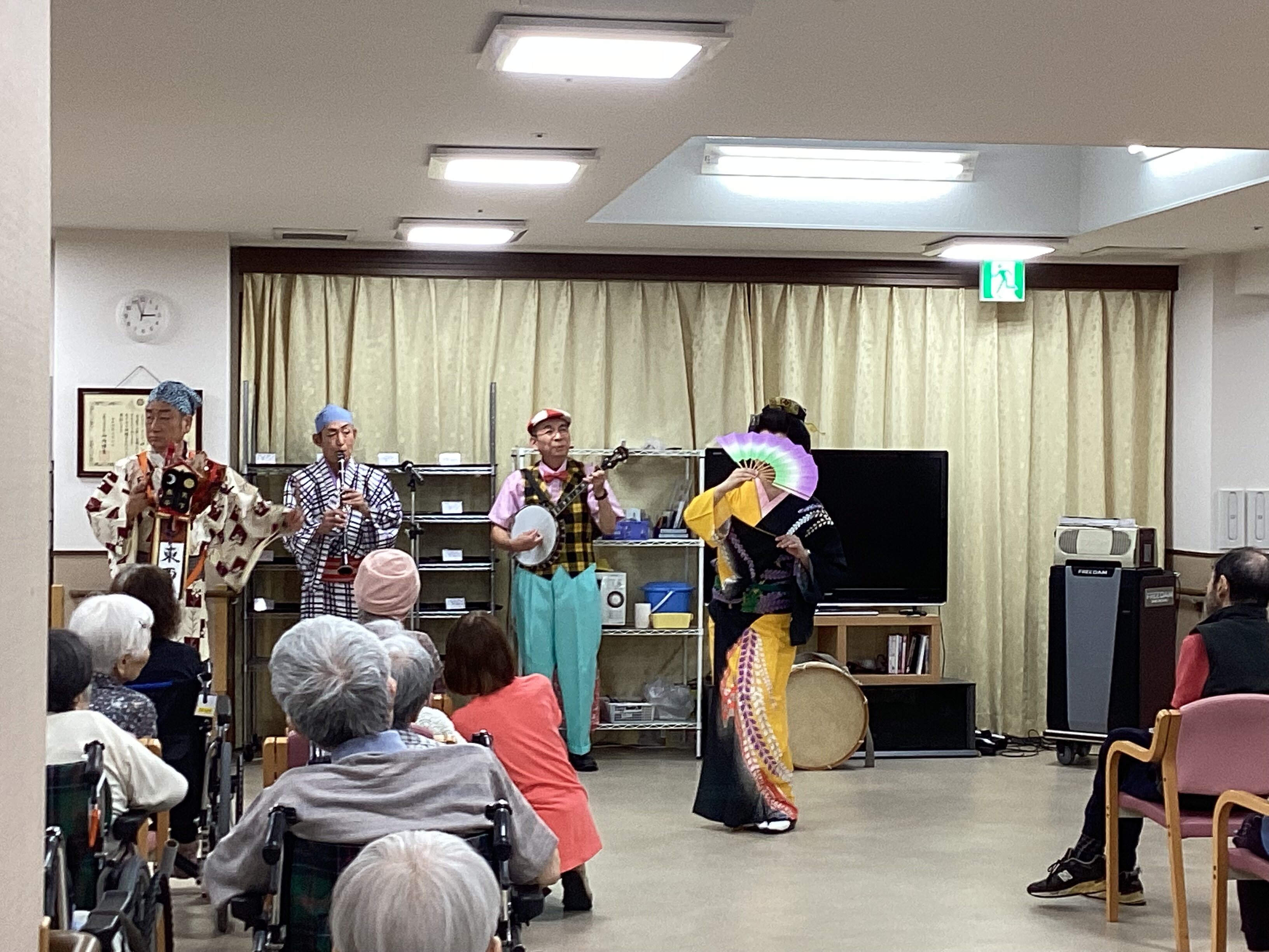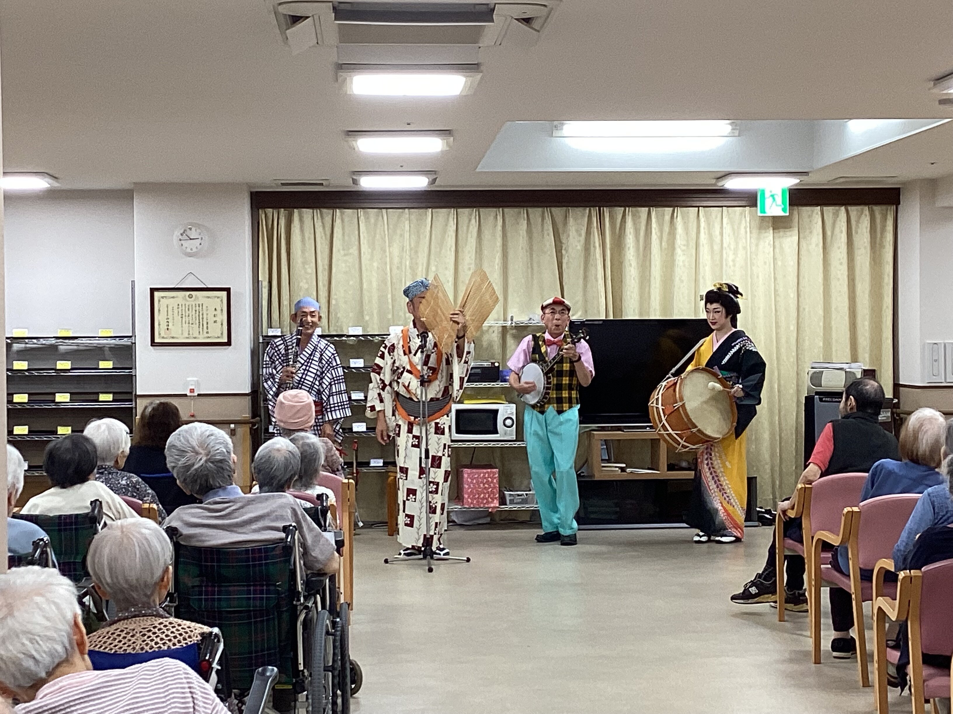 音楽と話芸でご入居者や職員の目を釘付けにしていました(#^.^#)