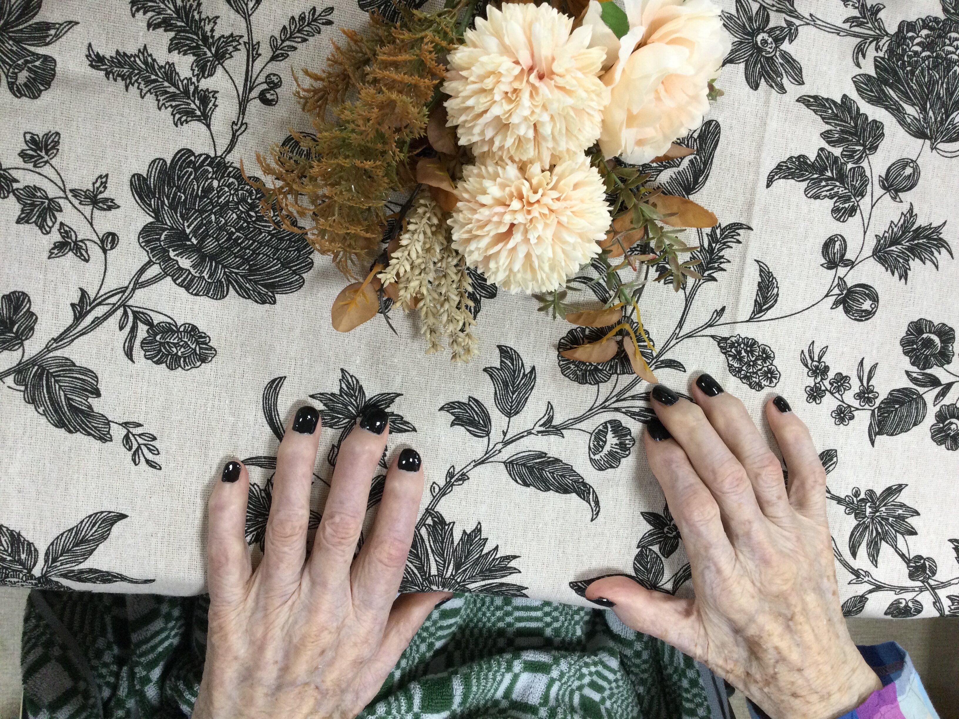 とってもきれいな黒のネイルと白のお花が対照的になっていていい感じですね!!