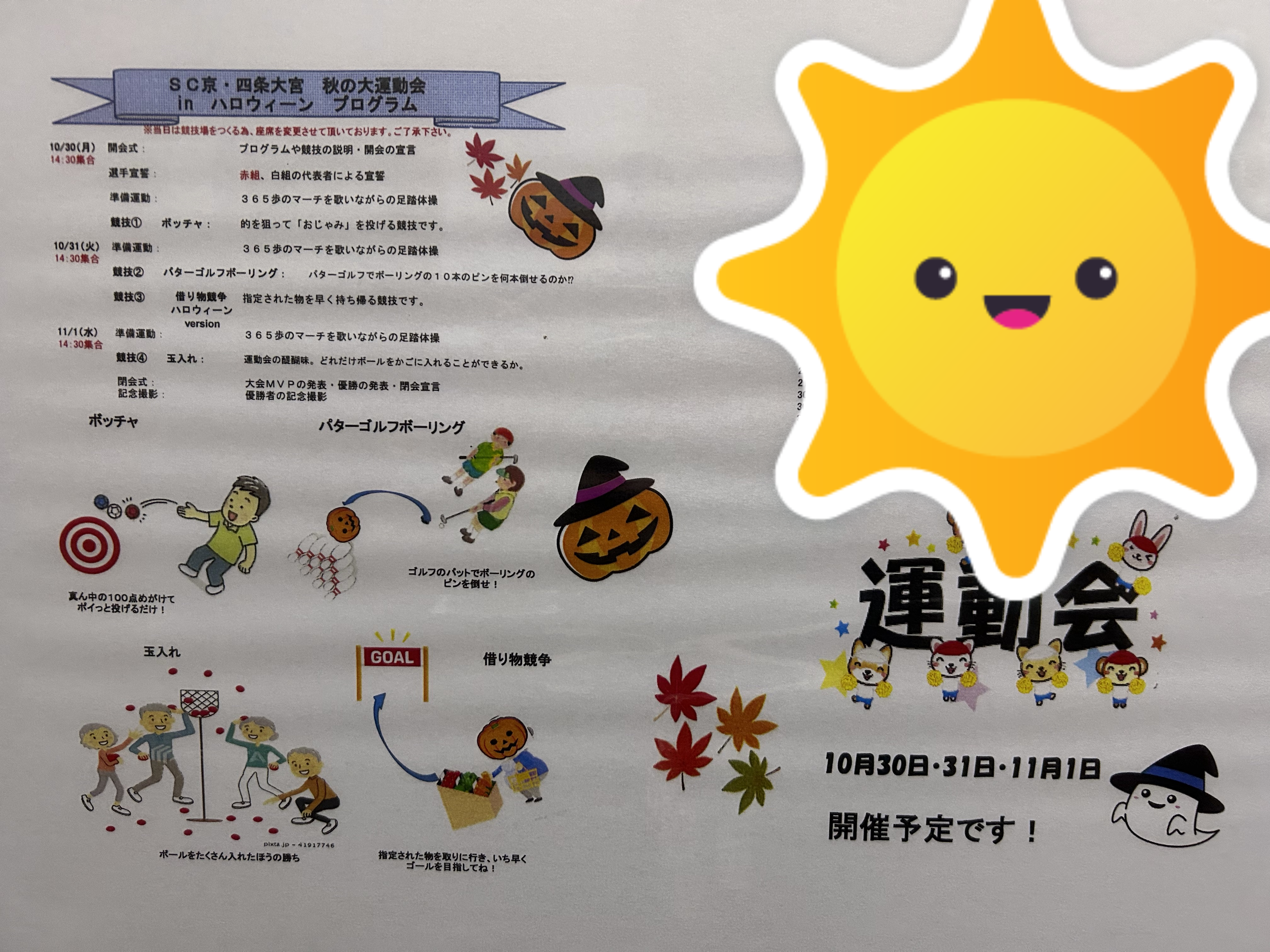 今月の月祭、秋の大運動会のプログラムです!!