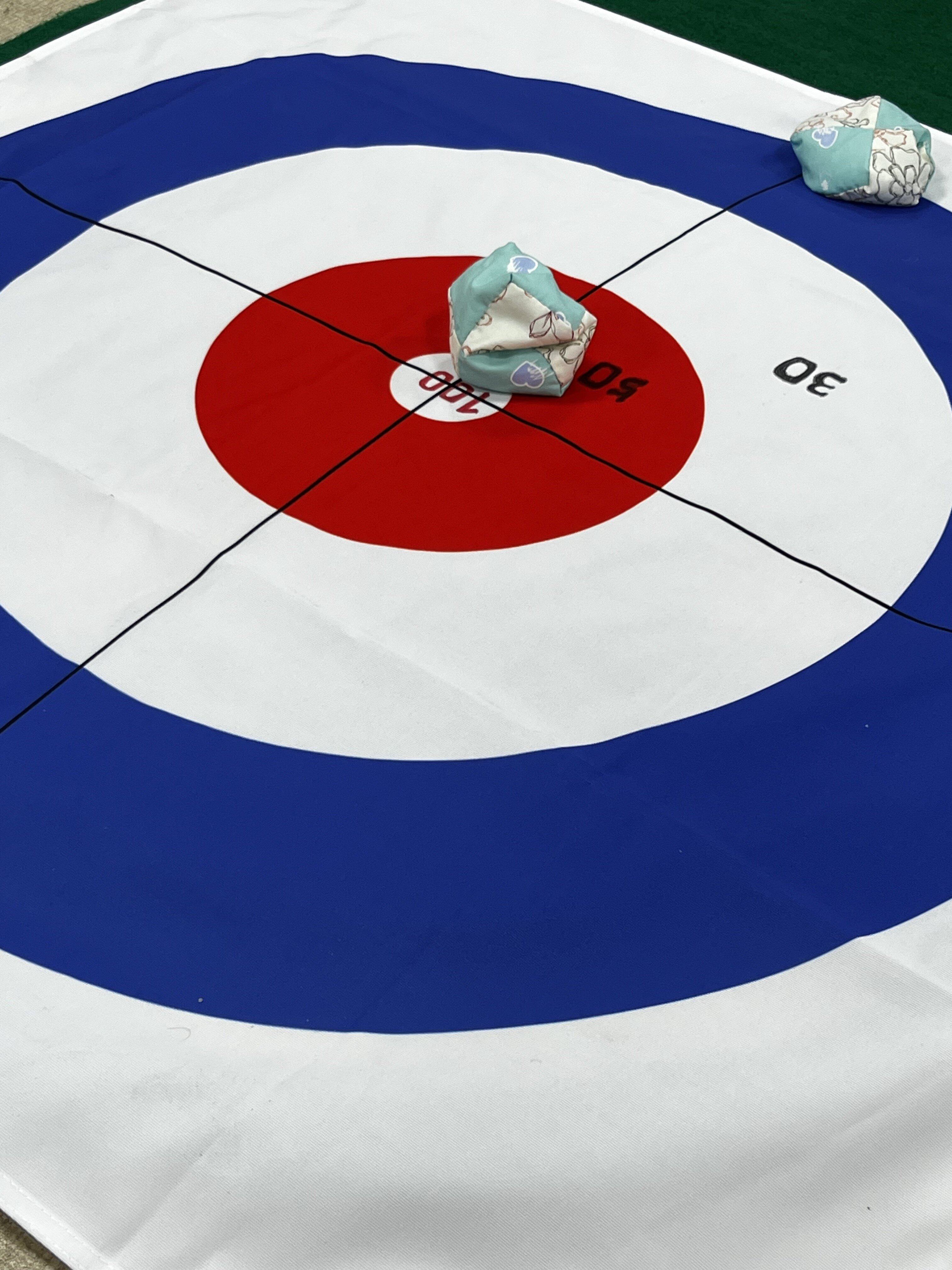お手玉を投げ、的の中心に近くなるほど点数が高くなります!!
