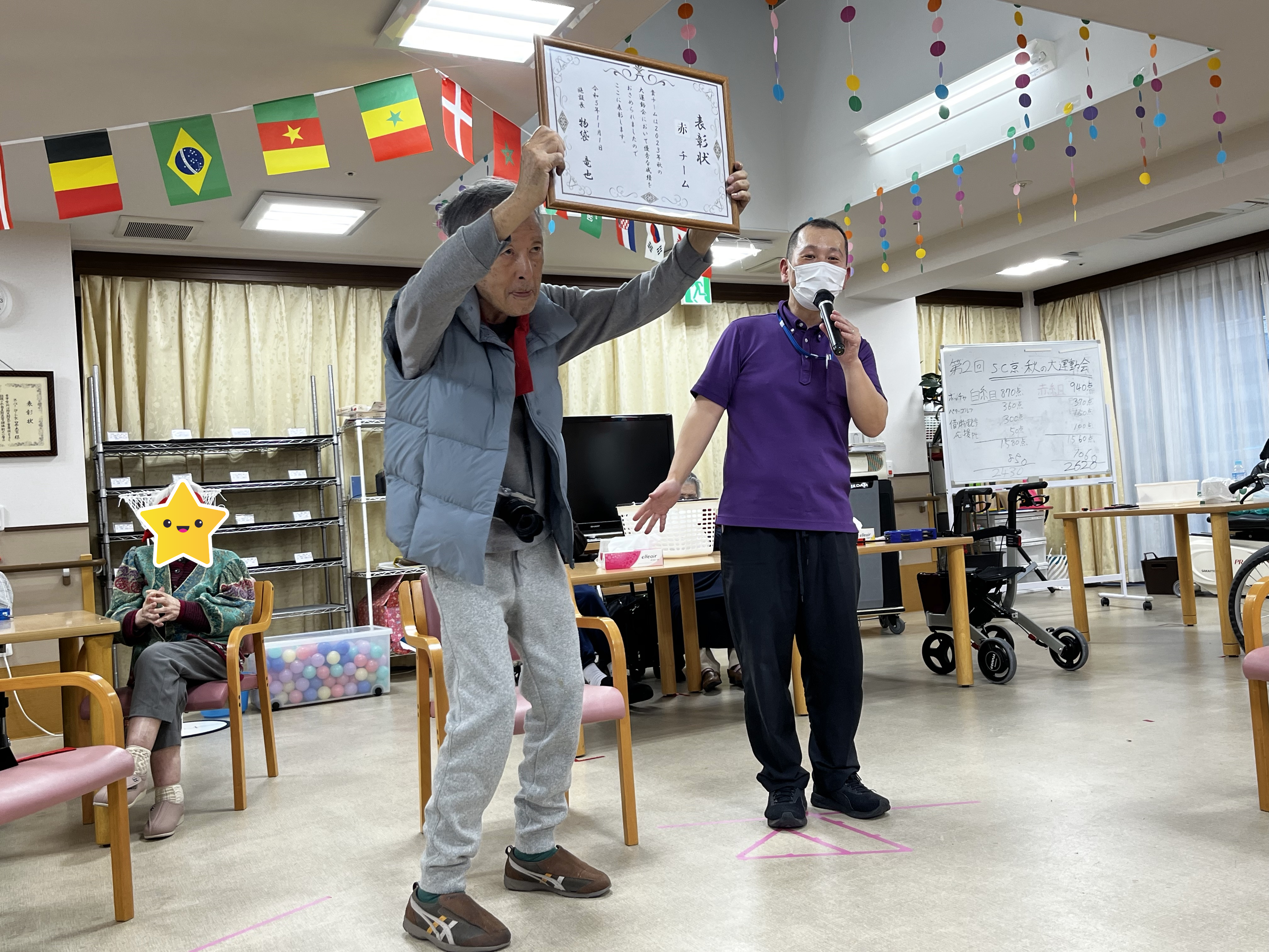 優勝した赤組にはトロフィーと賞状が贈られました~(*^-^*)