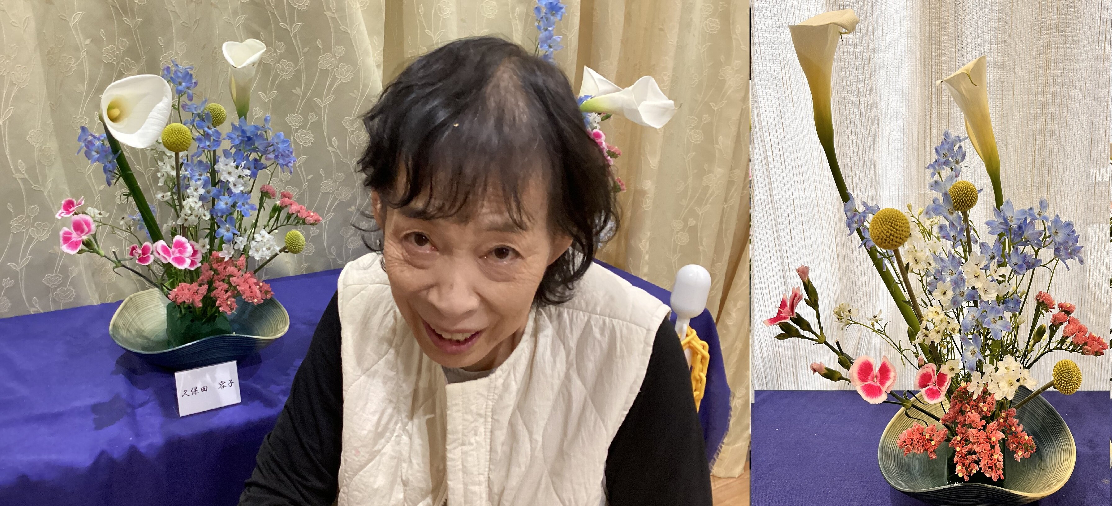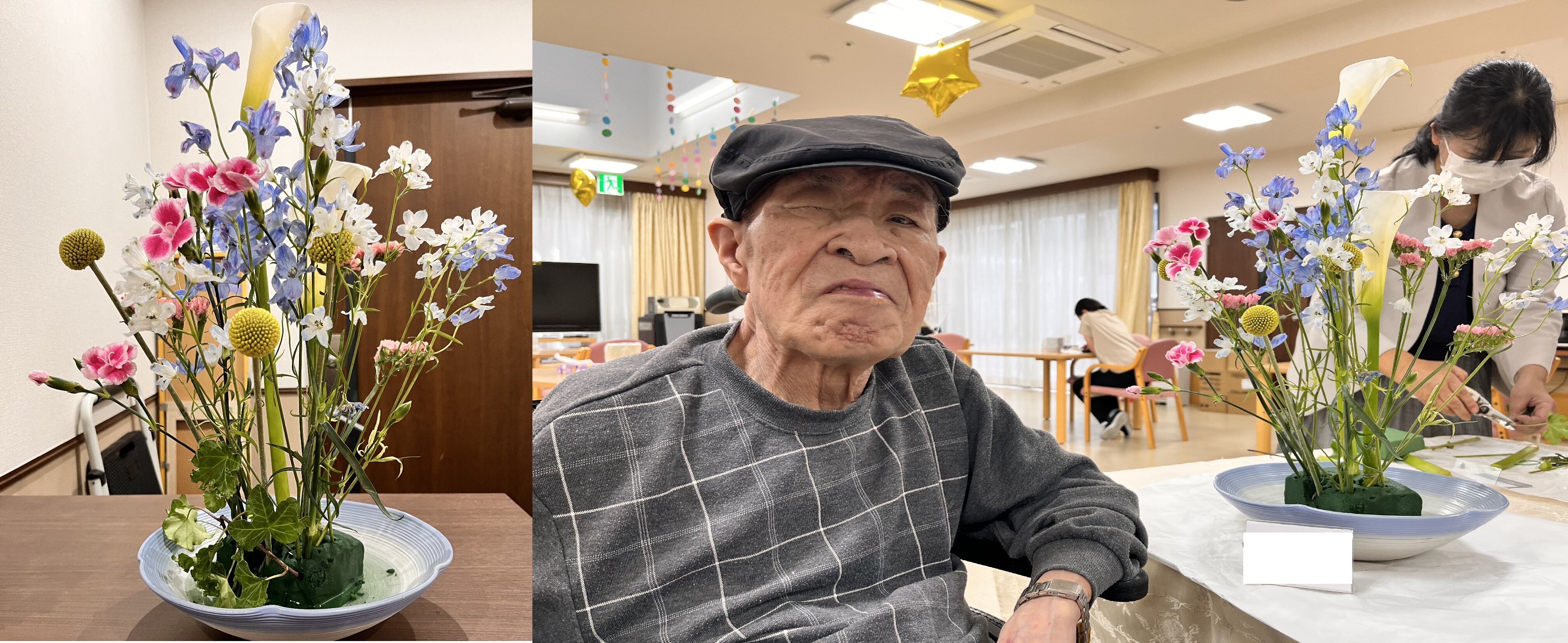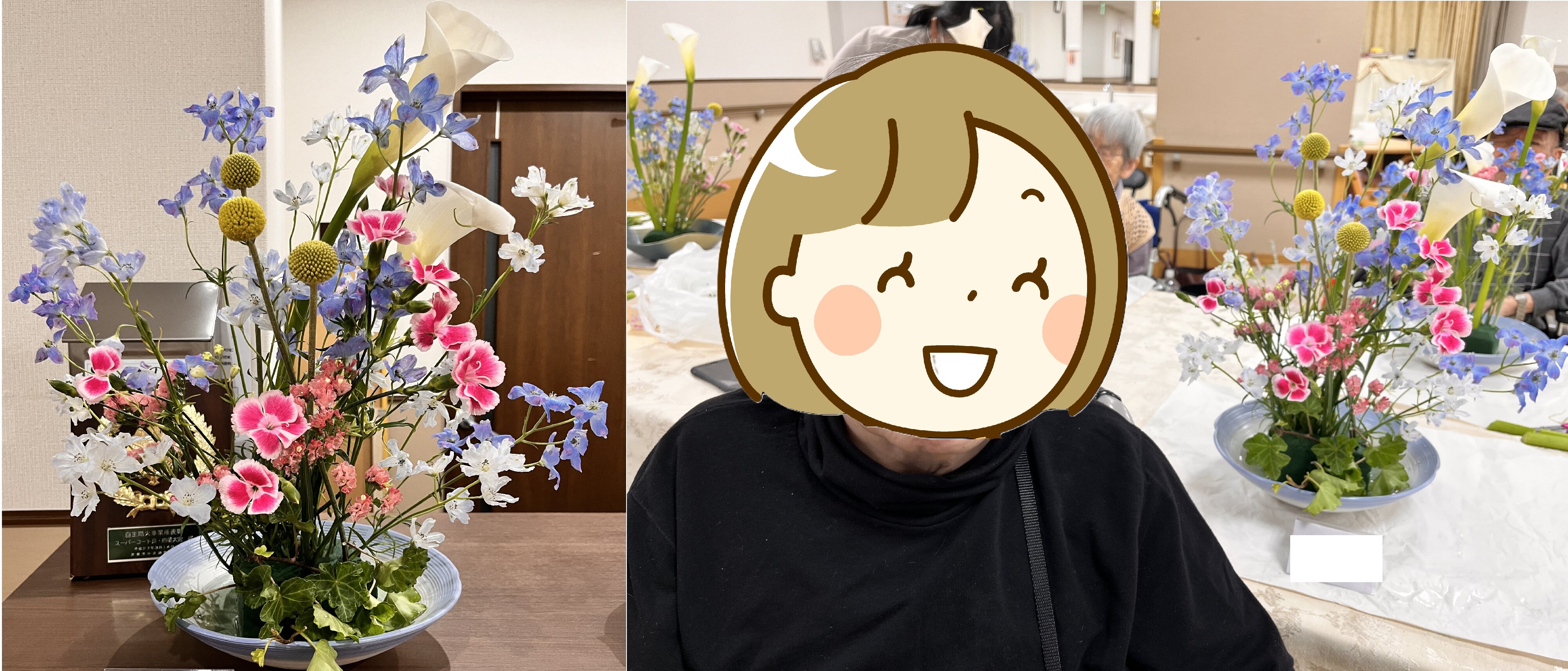 みなさん思い思いにお花を活けておられ、素敵な作品が出来ました。もうすぐ春が終わり梅雨の季節に入ろうとしていますが、春らしい色合いのお花で華やかな作品がたくさん飾られていますので、ぜひ施設に来られた際にはご覧になってください。最後までお読み頂きありがとうございました!