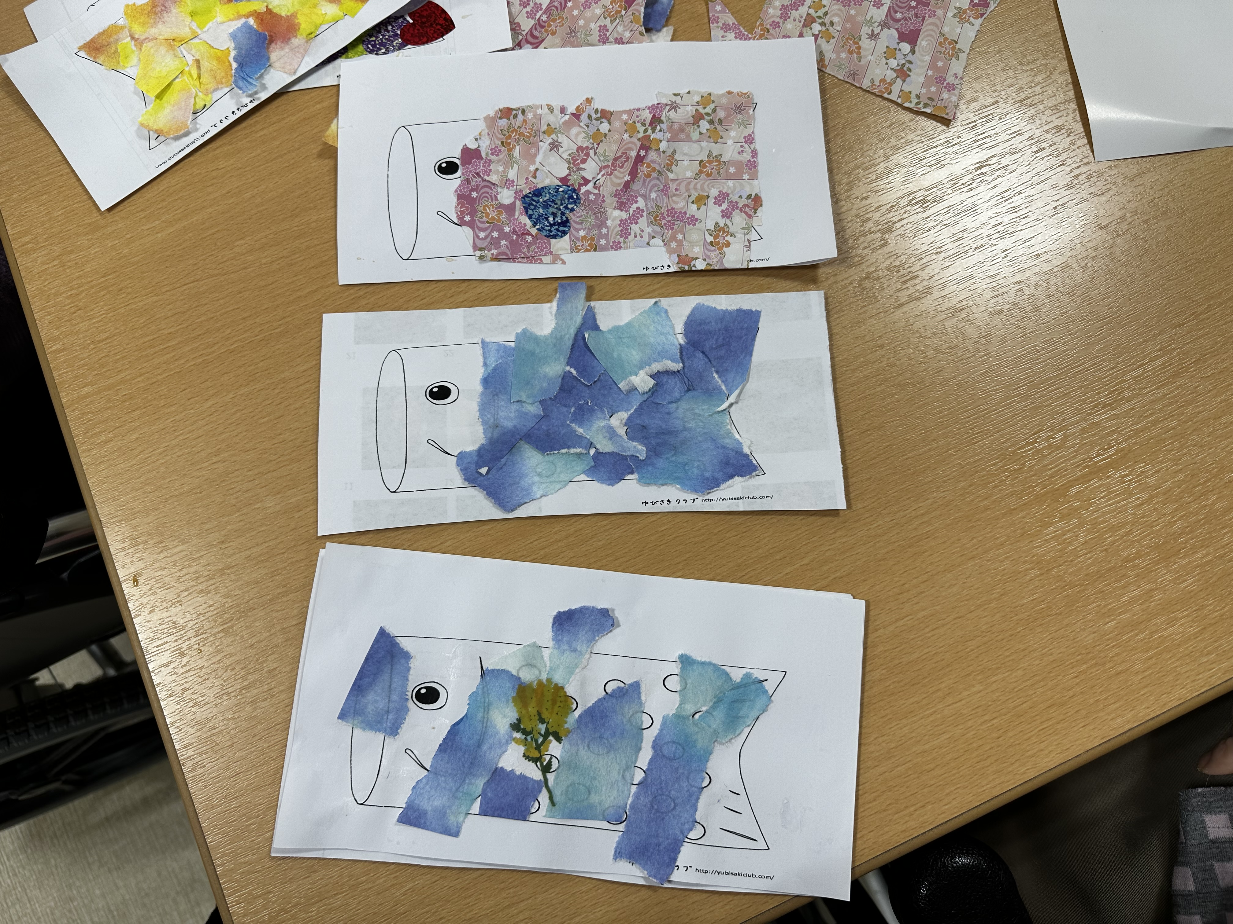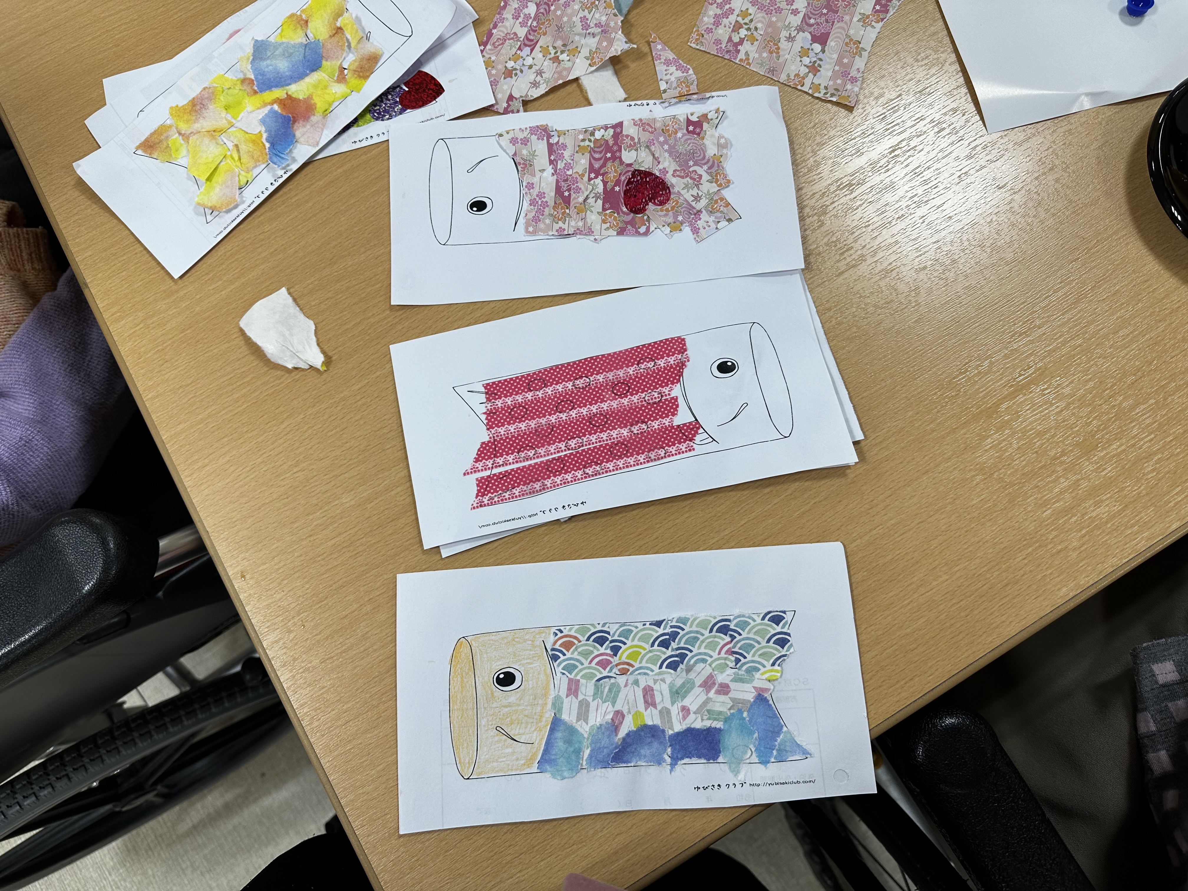 先日、5月こいのぼりのちぎり絵を作成いたしました。