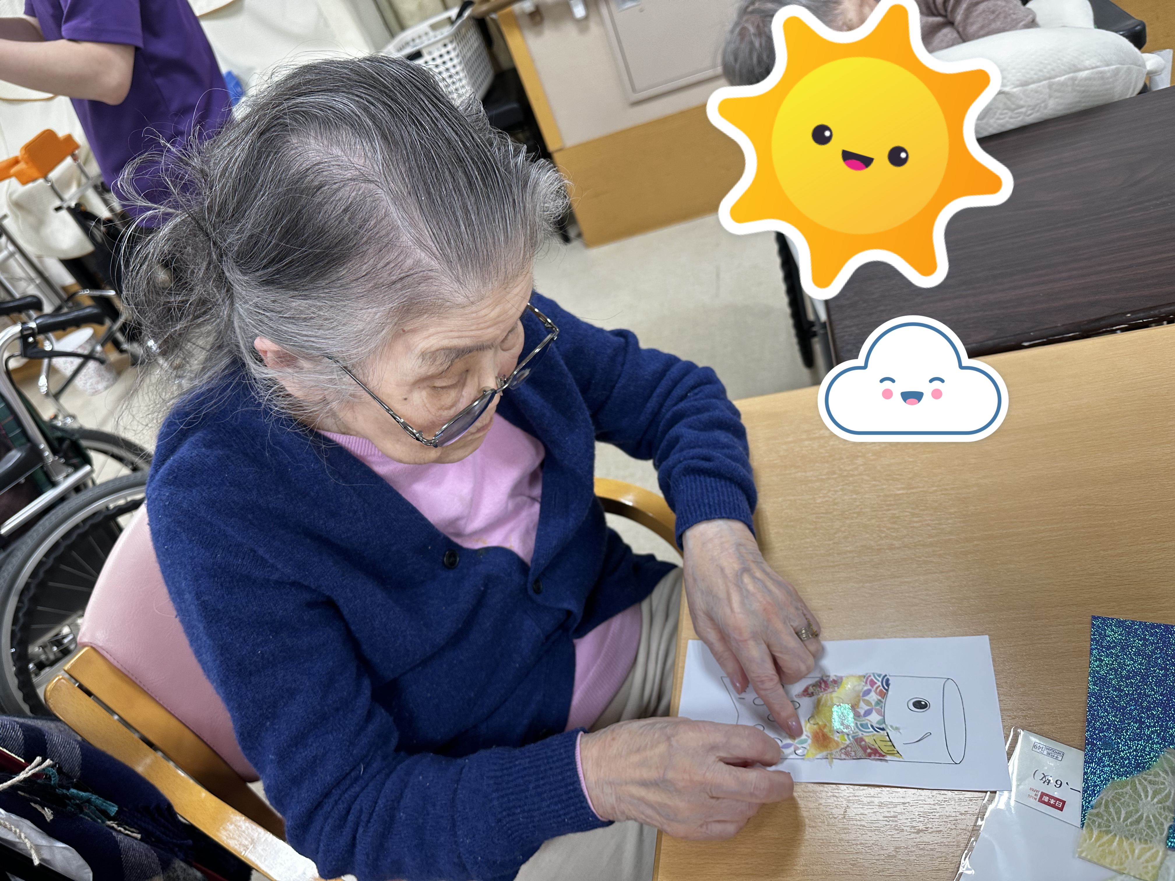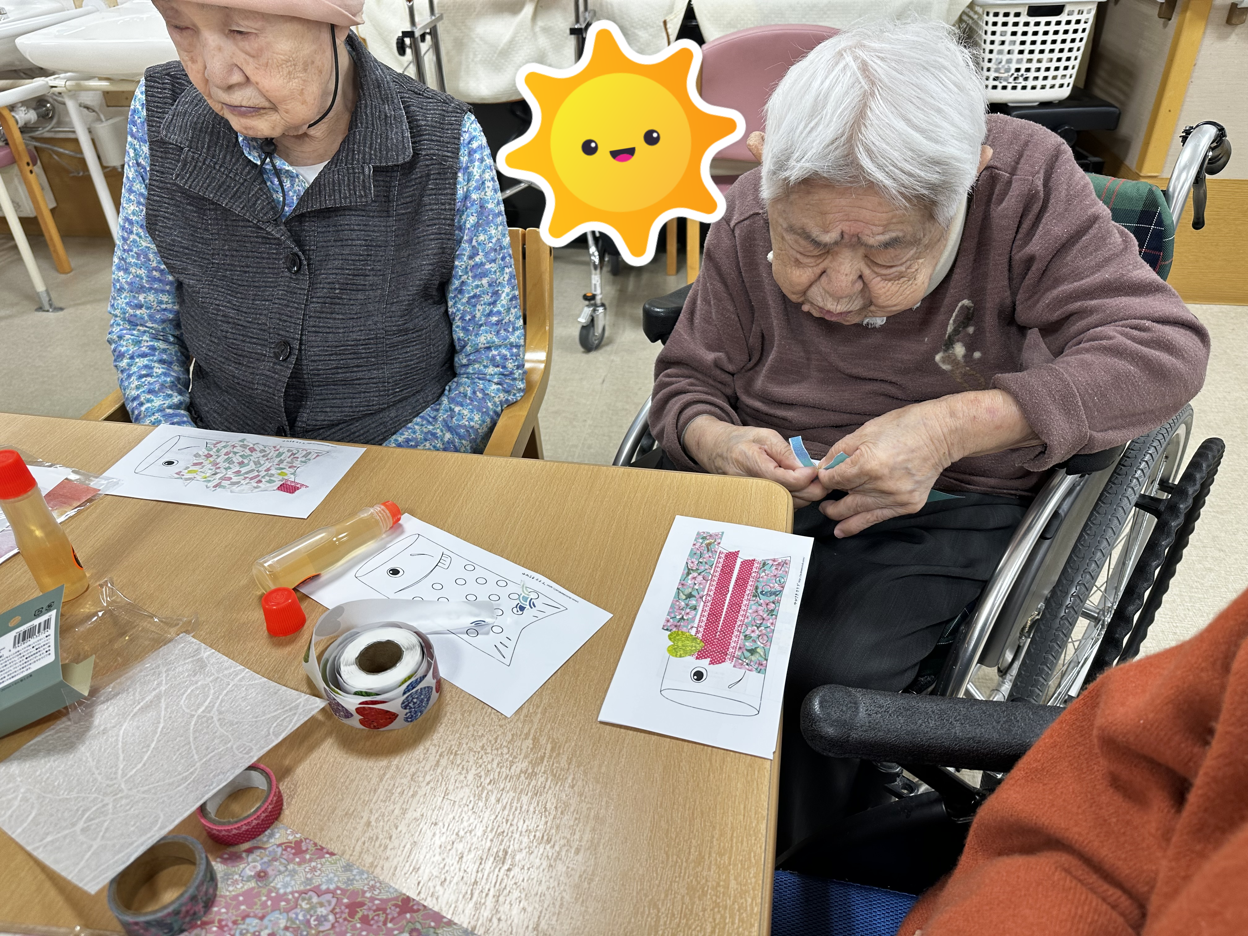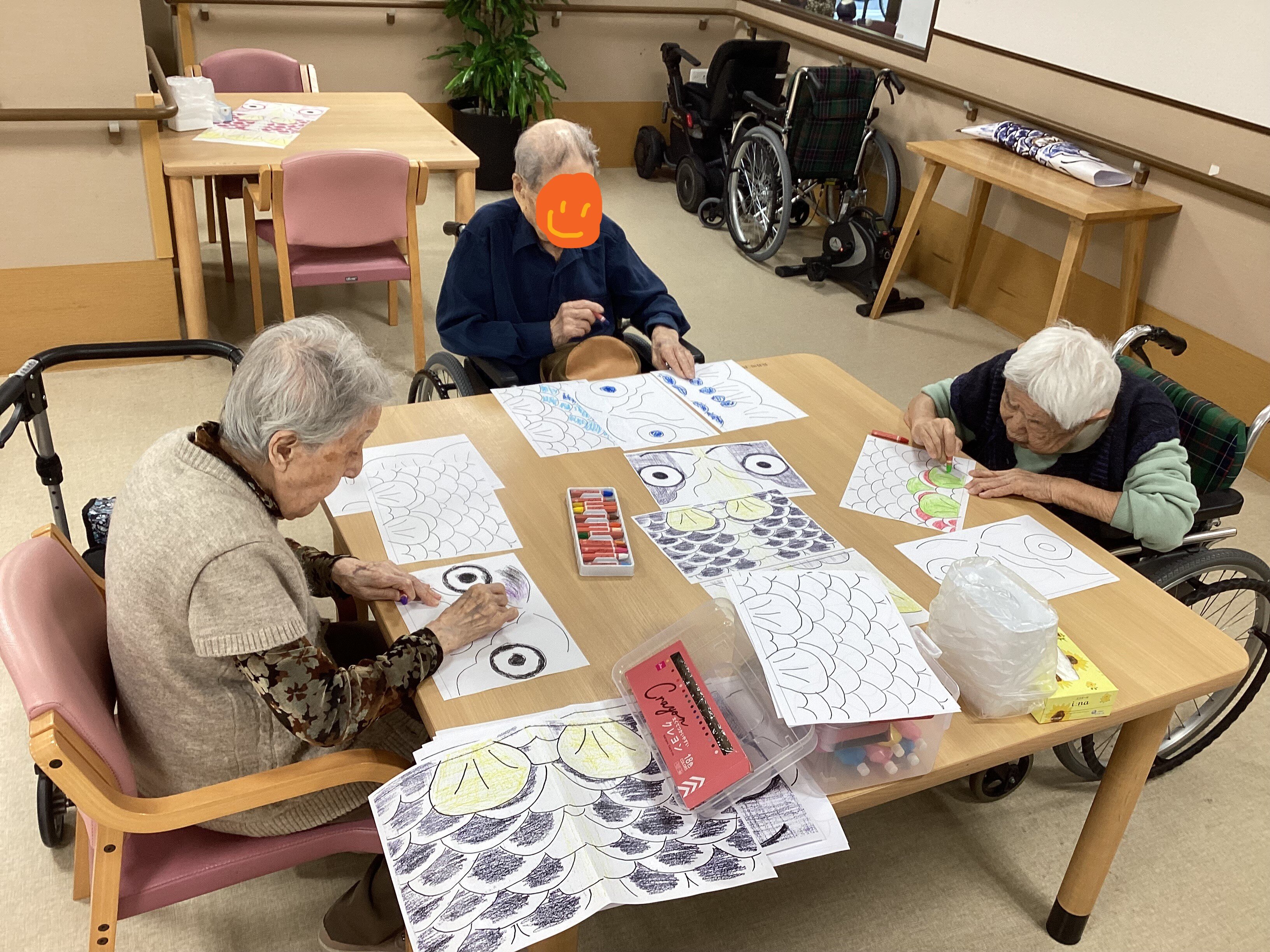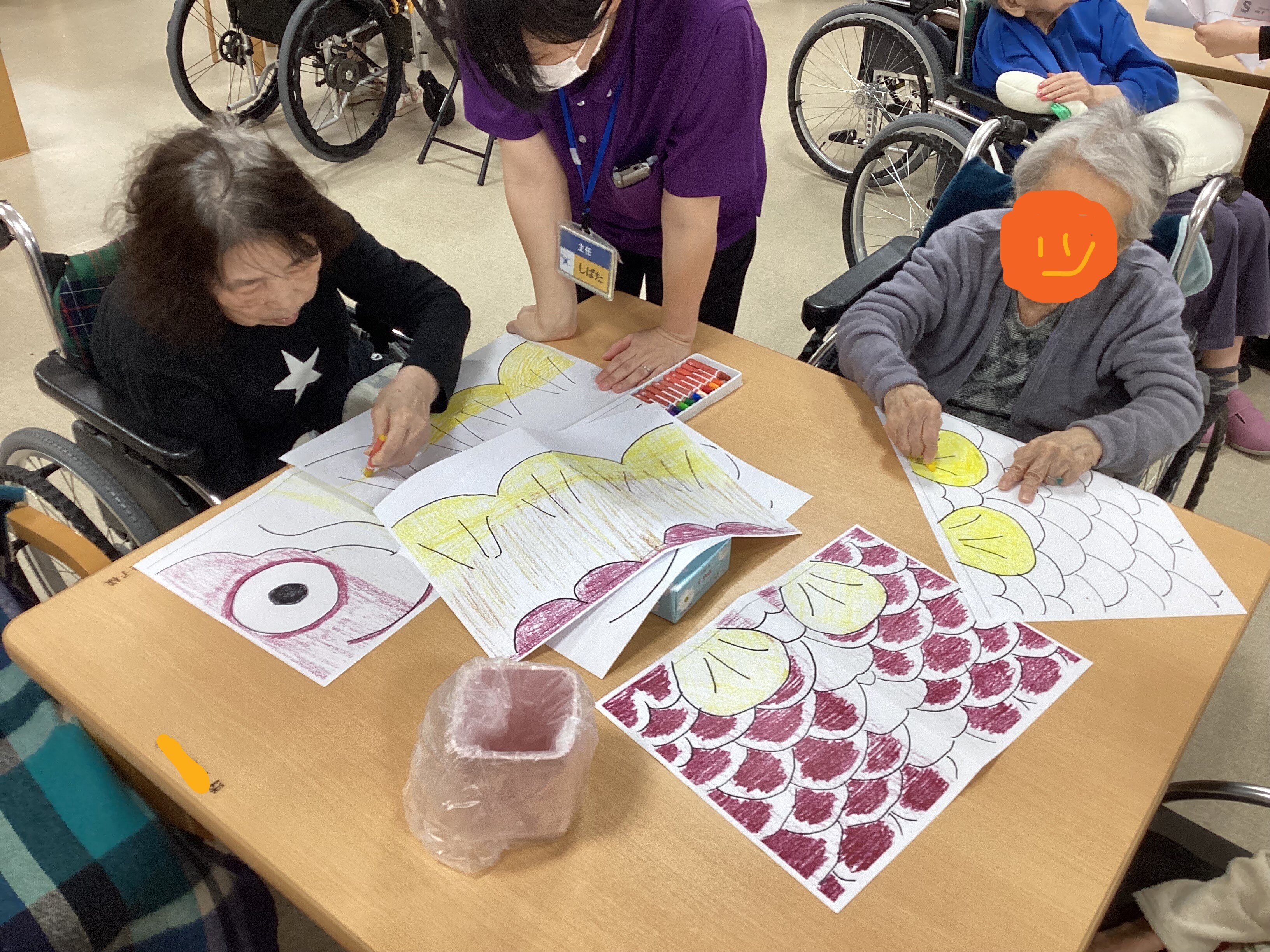 本日は前回の続きである卓上こいのぼり作りのレクのご様子をお届けいたします。