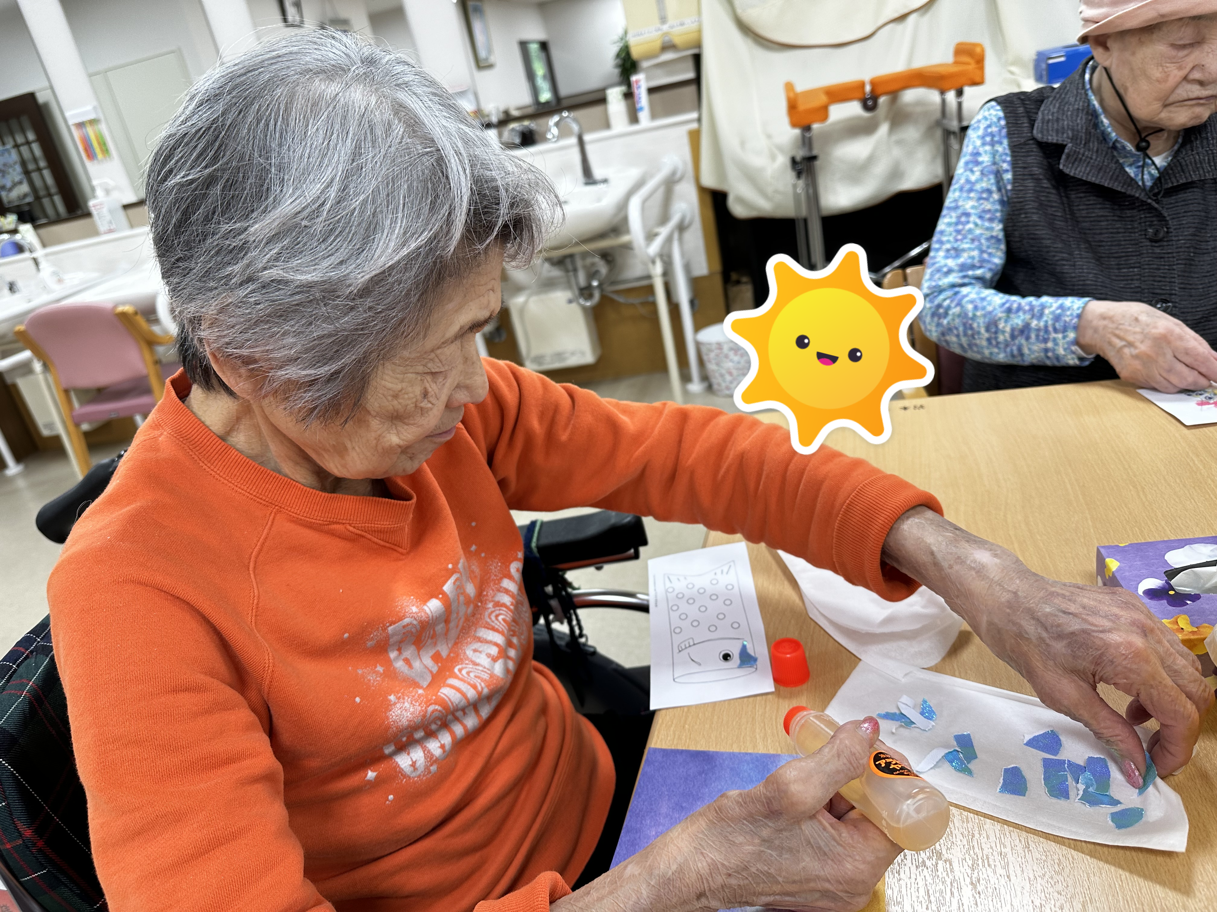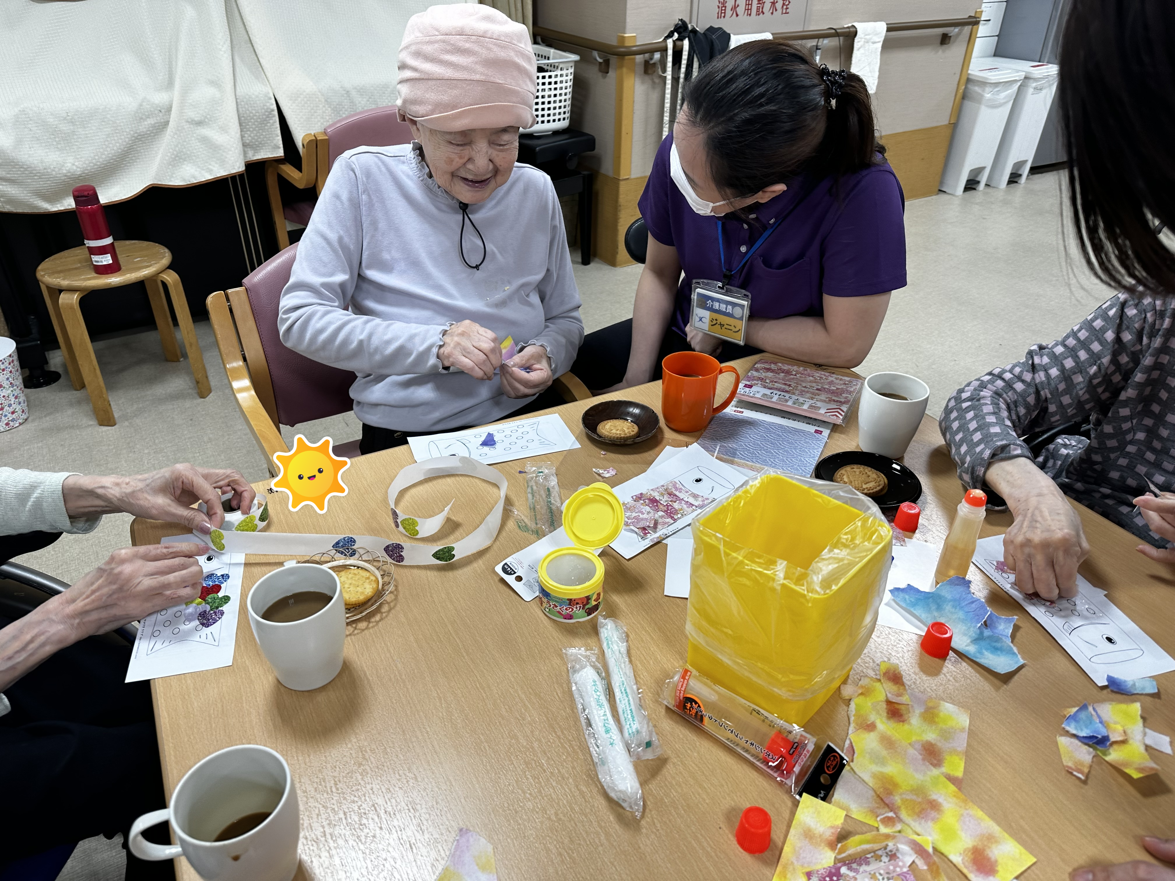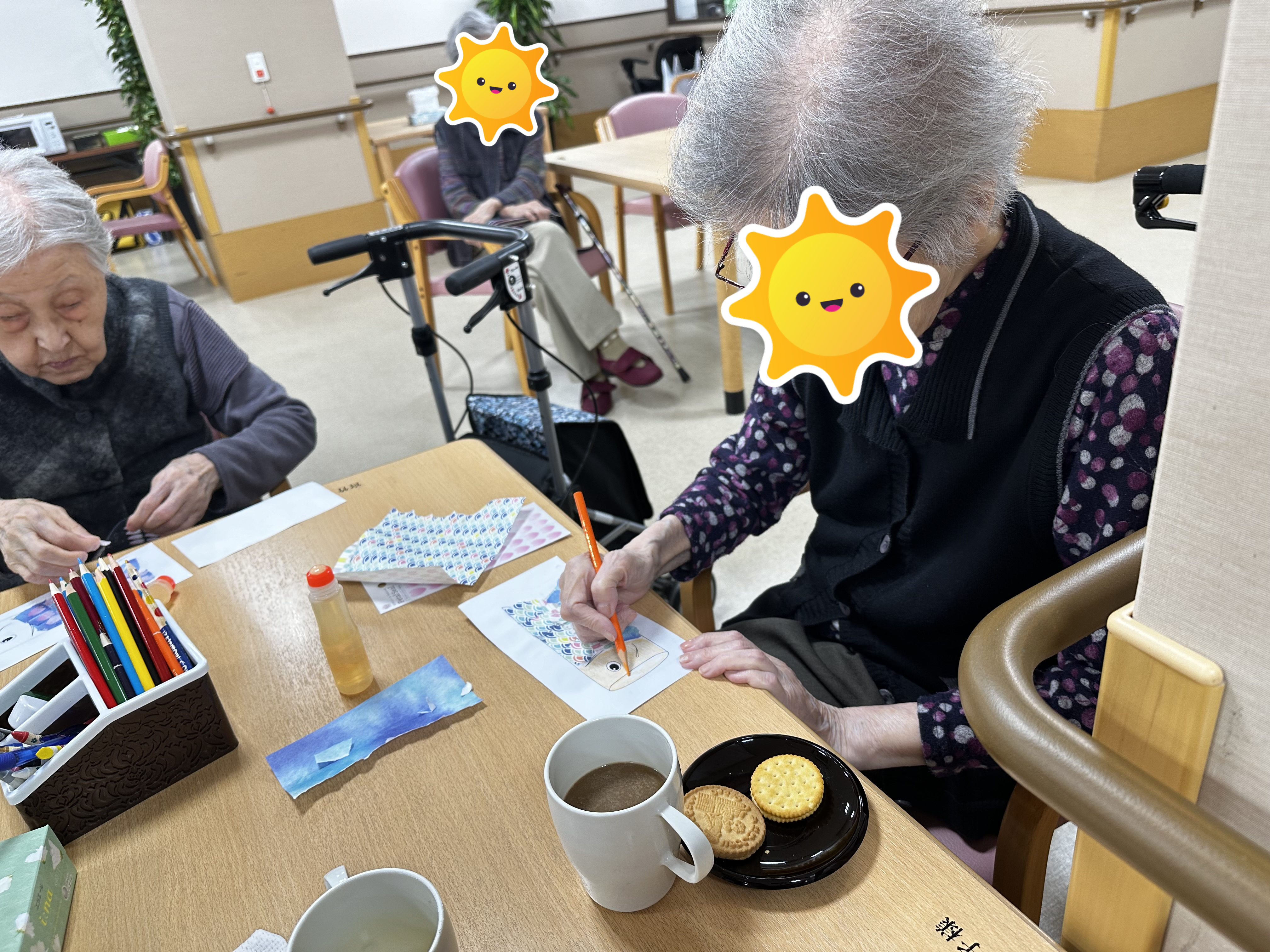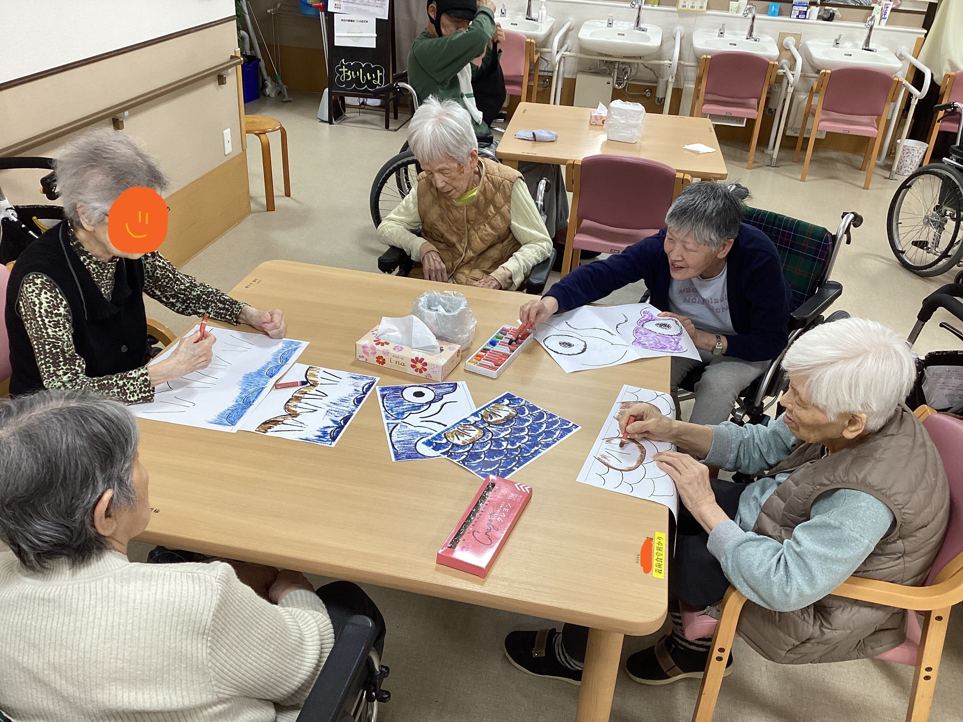 本日は前回の続きである卓上こいのぼり作りのレクのご様子をお届けいたします。