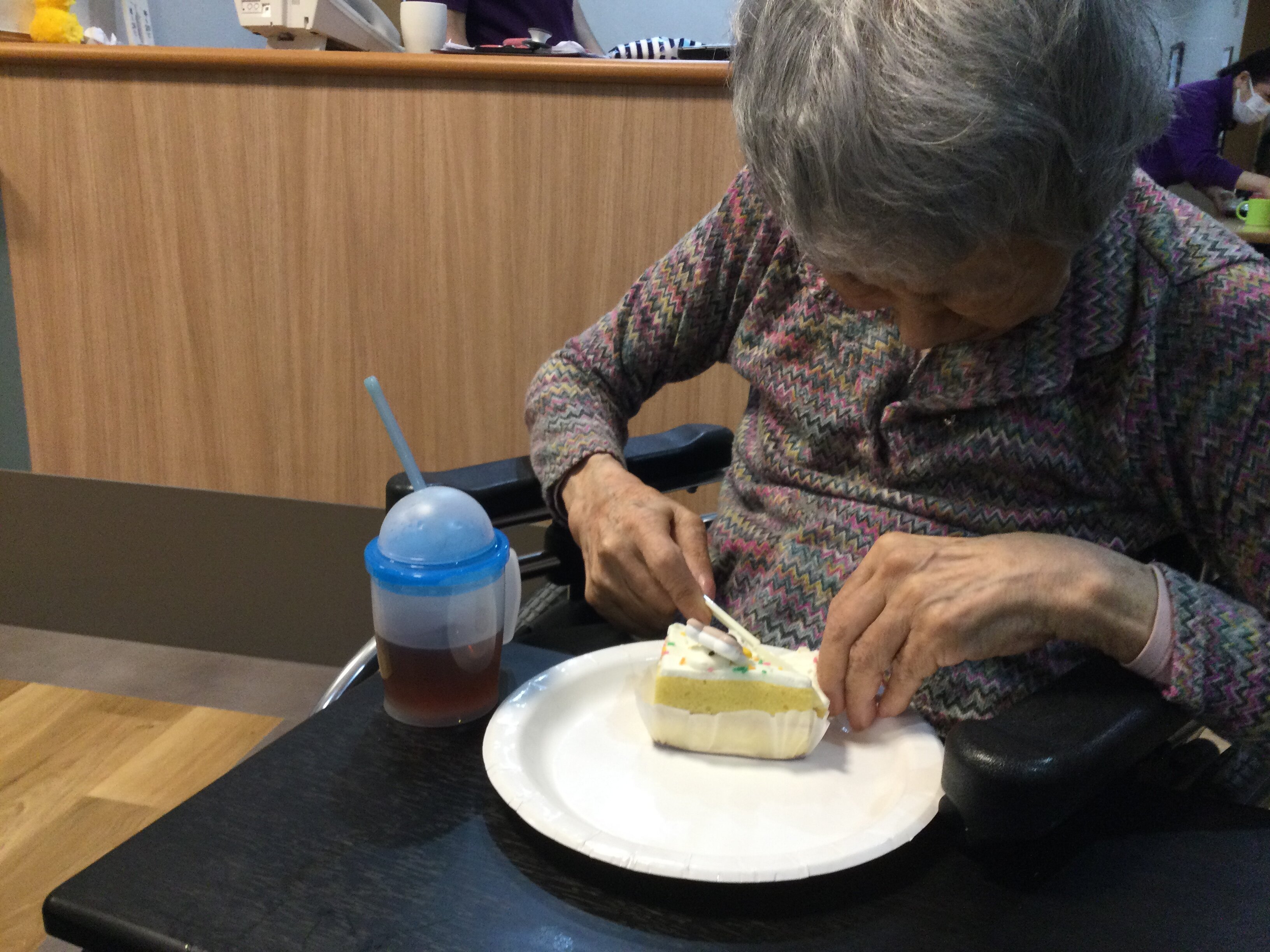私たちは月祭として、ご入居されている女性の皆様にケーキとプレゼントでお祝いさせていただきました!