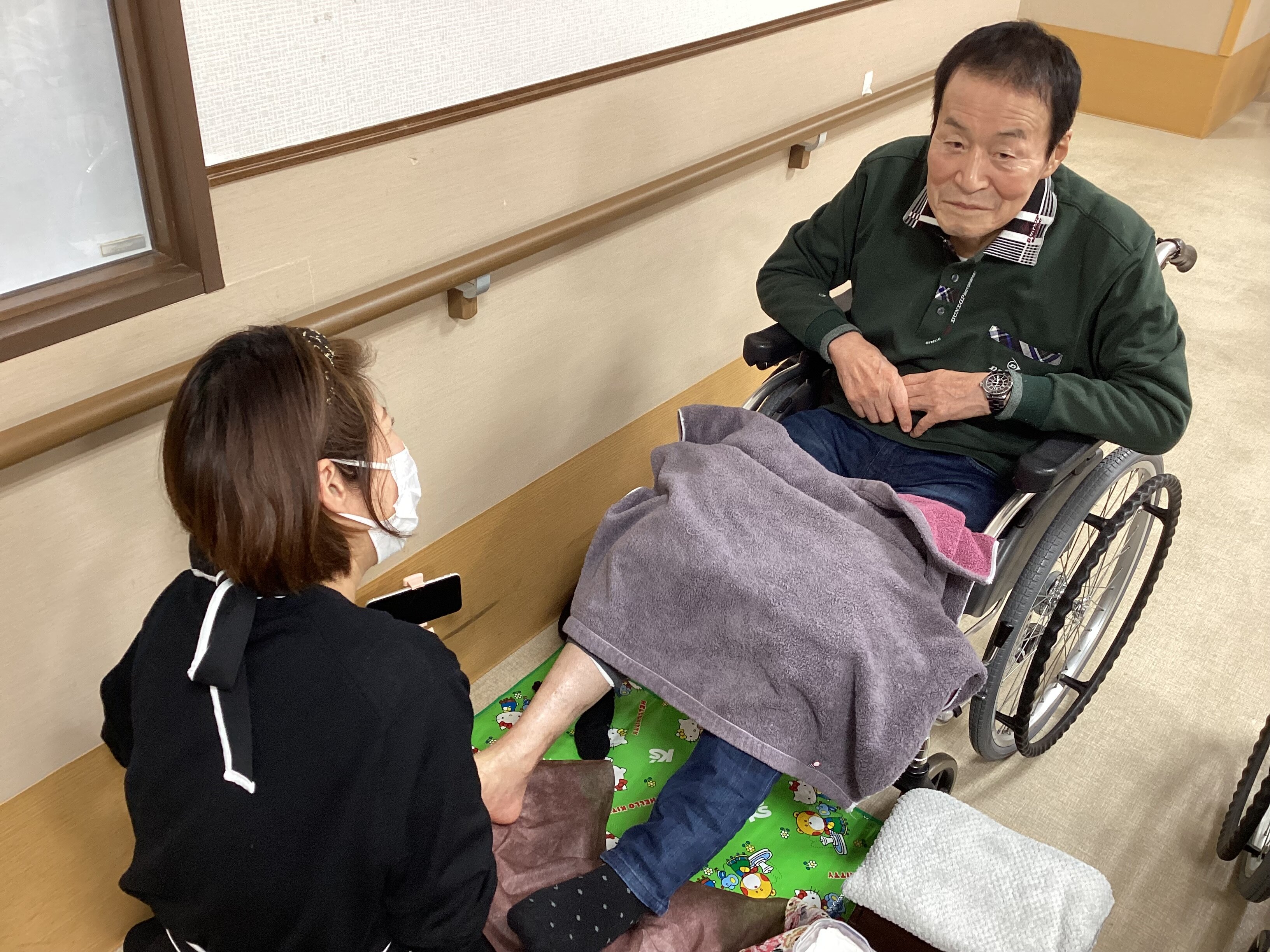 周りのご入居者も「気持ちよさそうやね」「綺麗になれそう」と