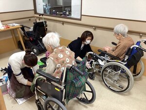 リハスタッフ2名とご入居者2名が参加し、笑顔でジェンガを楽しんでおられました。