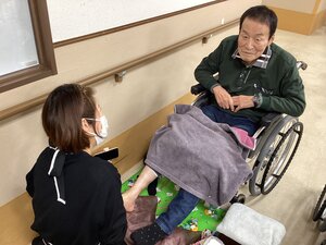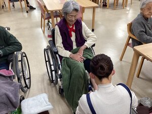 ご入居者が職員と一緒にあやとりをされていました。