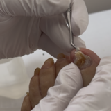アロマオイル数滴を手に取り、馴染ませるように揉みこんでいきます。