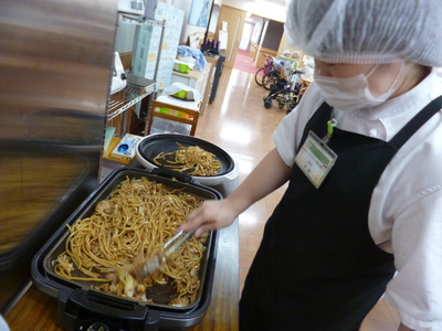 厨房さんがご入居者の目の前で焼きそばを調理してくれました!