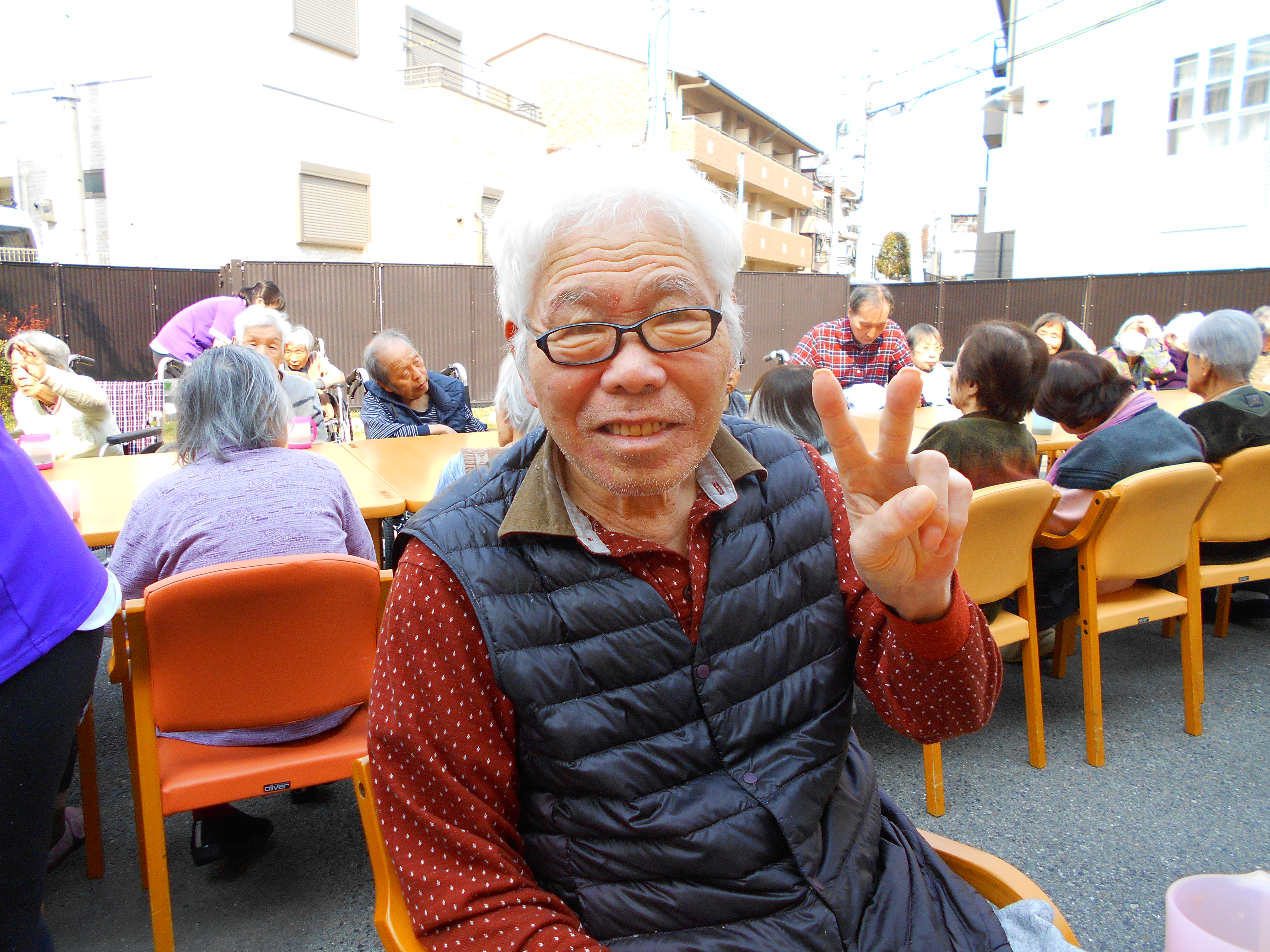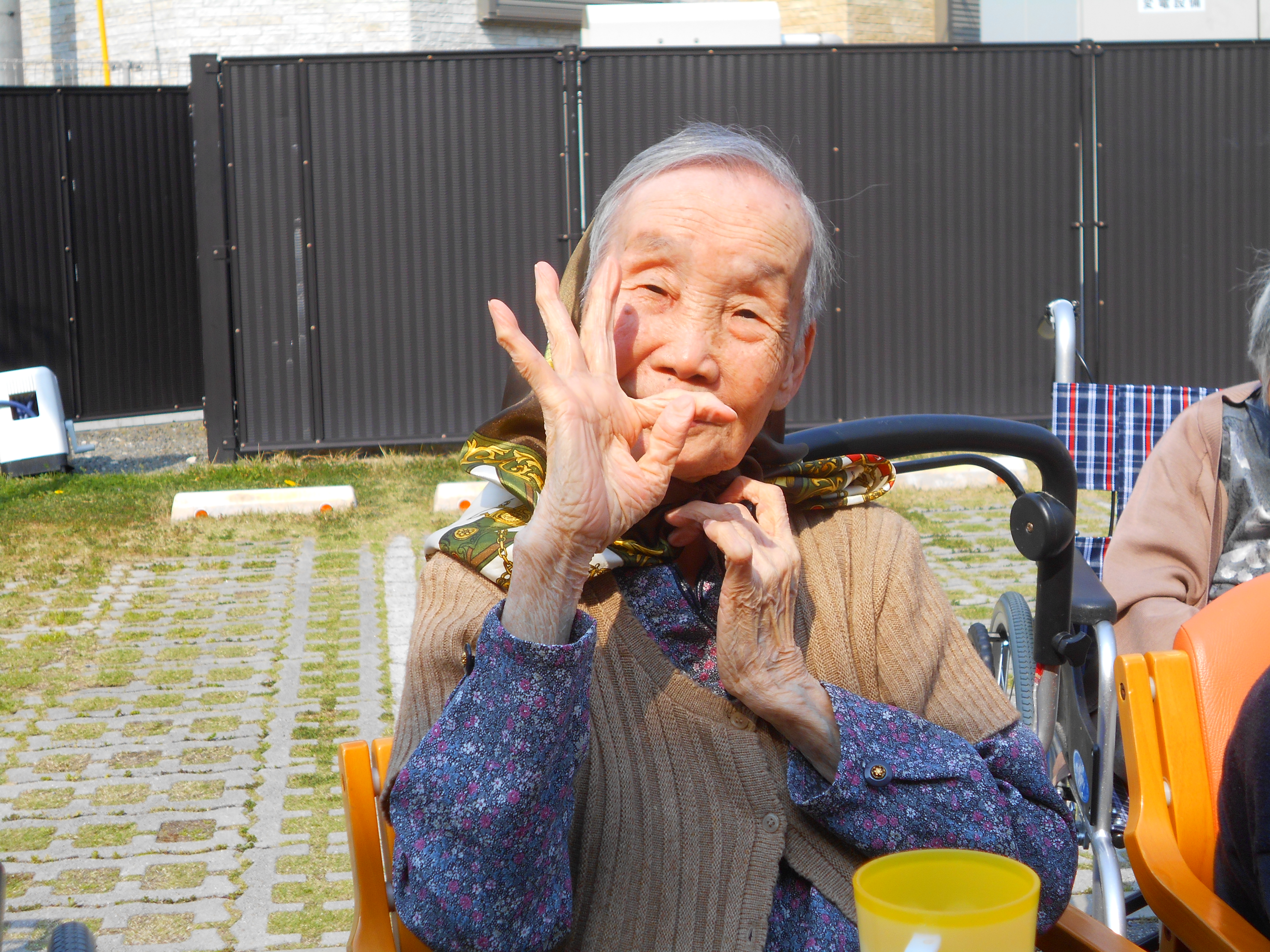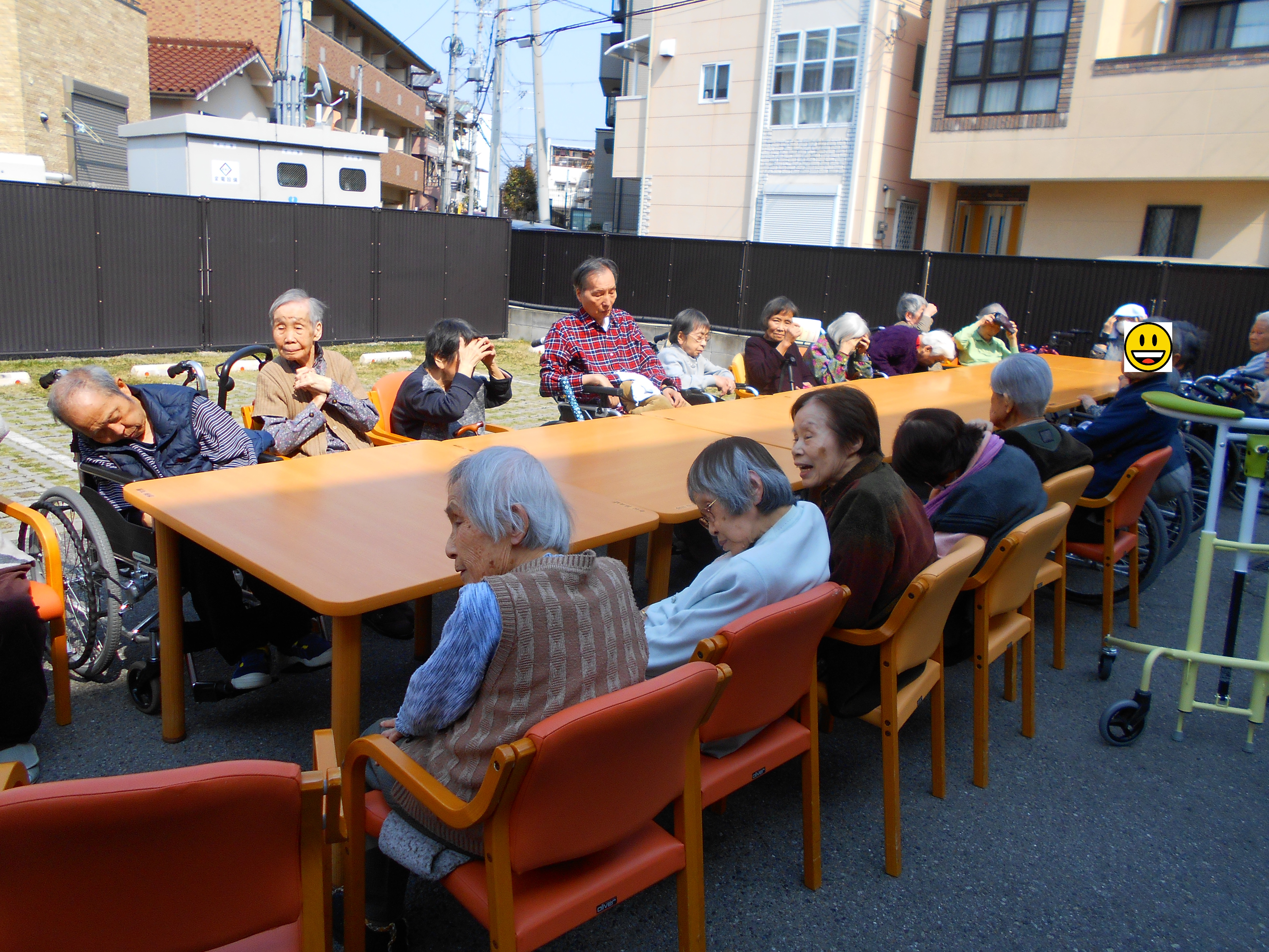 さて、暖かい日が続き空も快晴の日に、施設の外で日向ぼっこをしました!