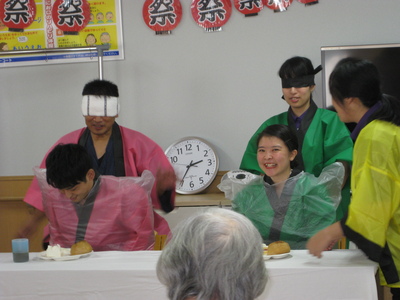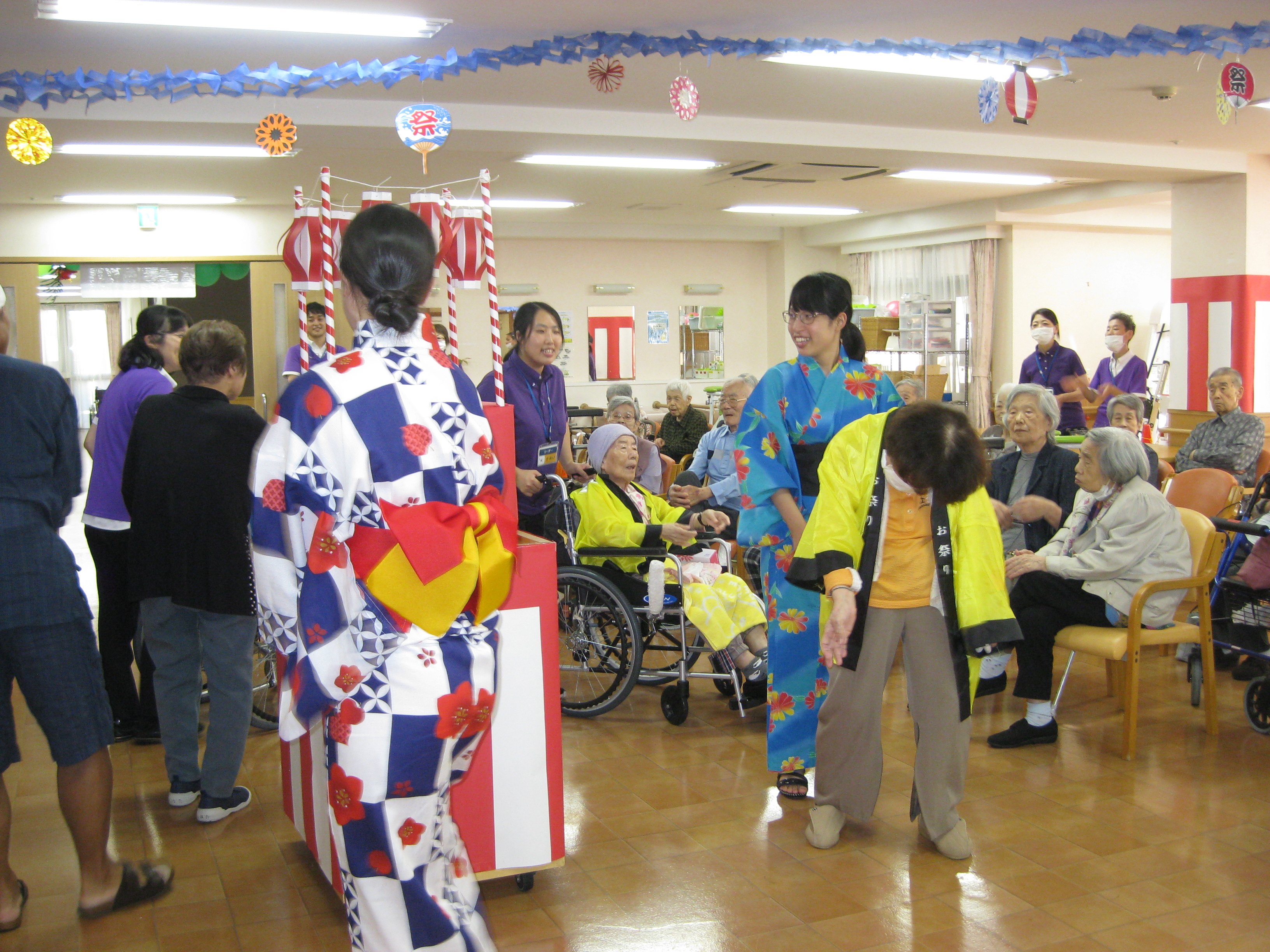 二人羽織の次は納涼祭には欠かせない盆踊りです。今回は炭坑節と河内音頭を踊りました!