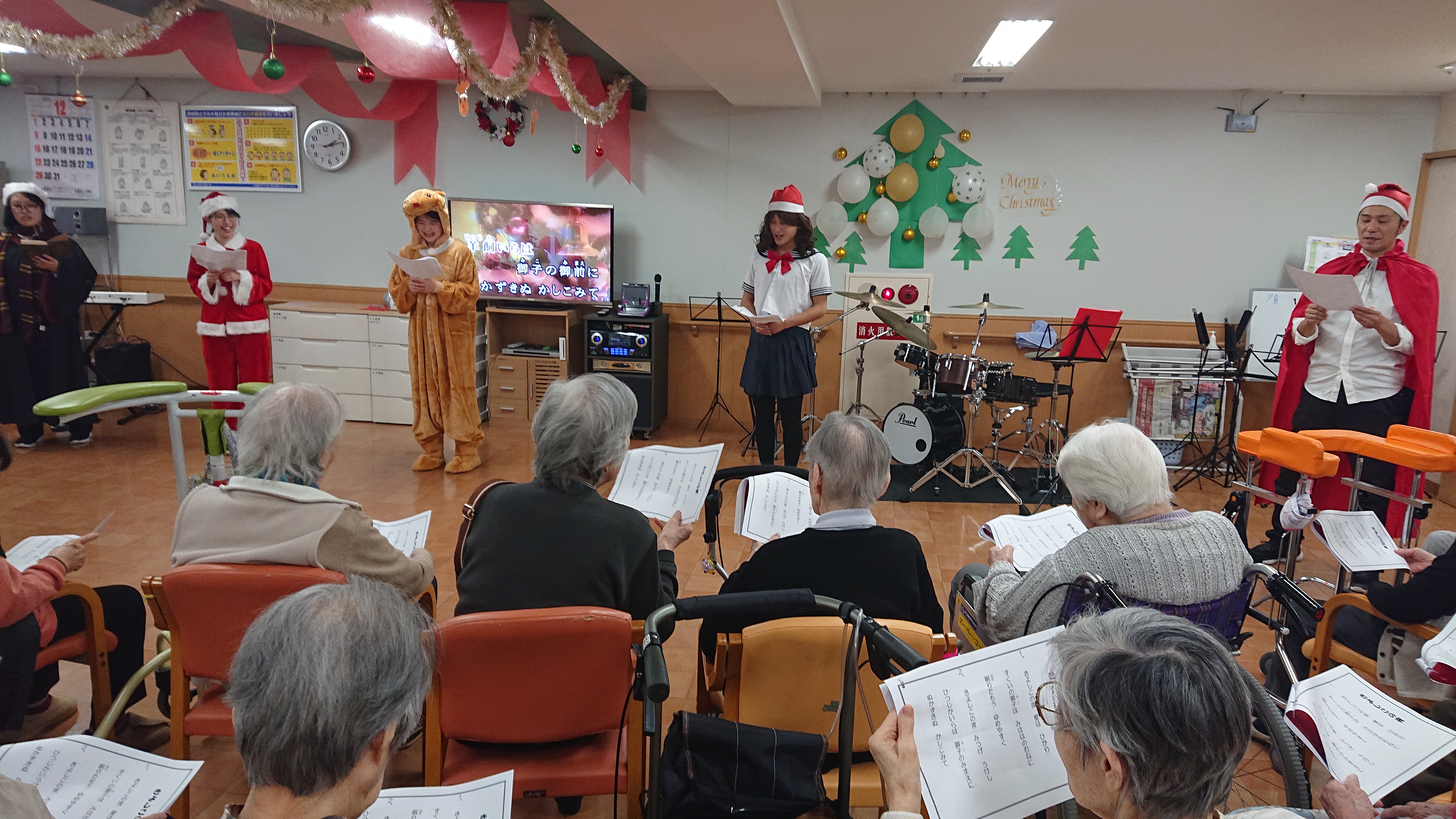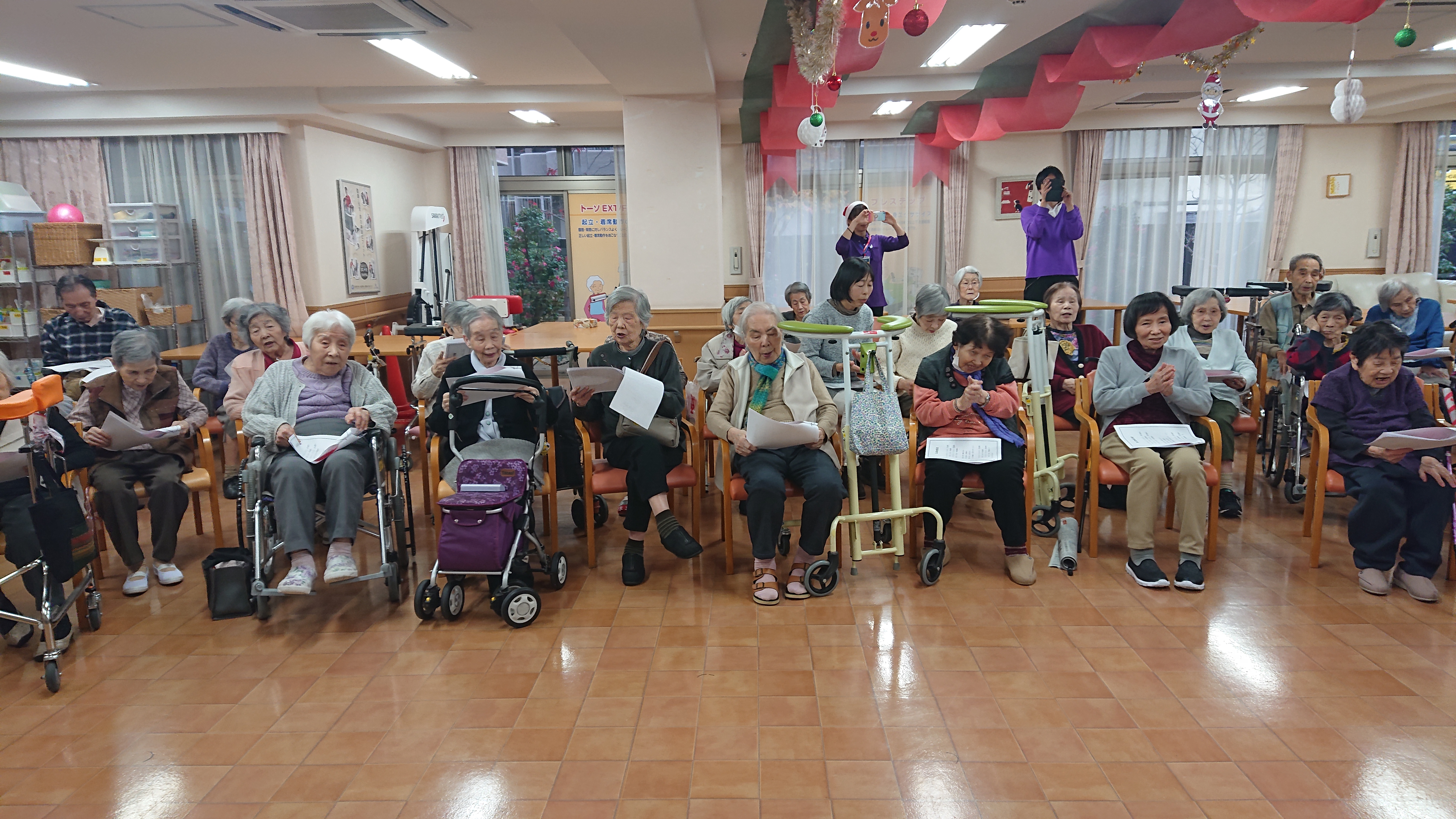 ご入居者の方々には歌詞カードをお配りし、一緒に歌っていただきました!