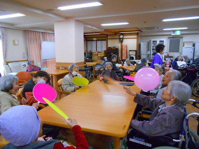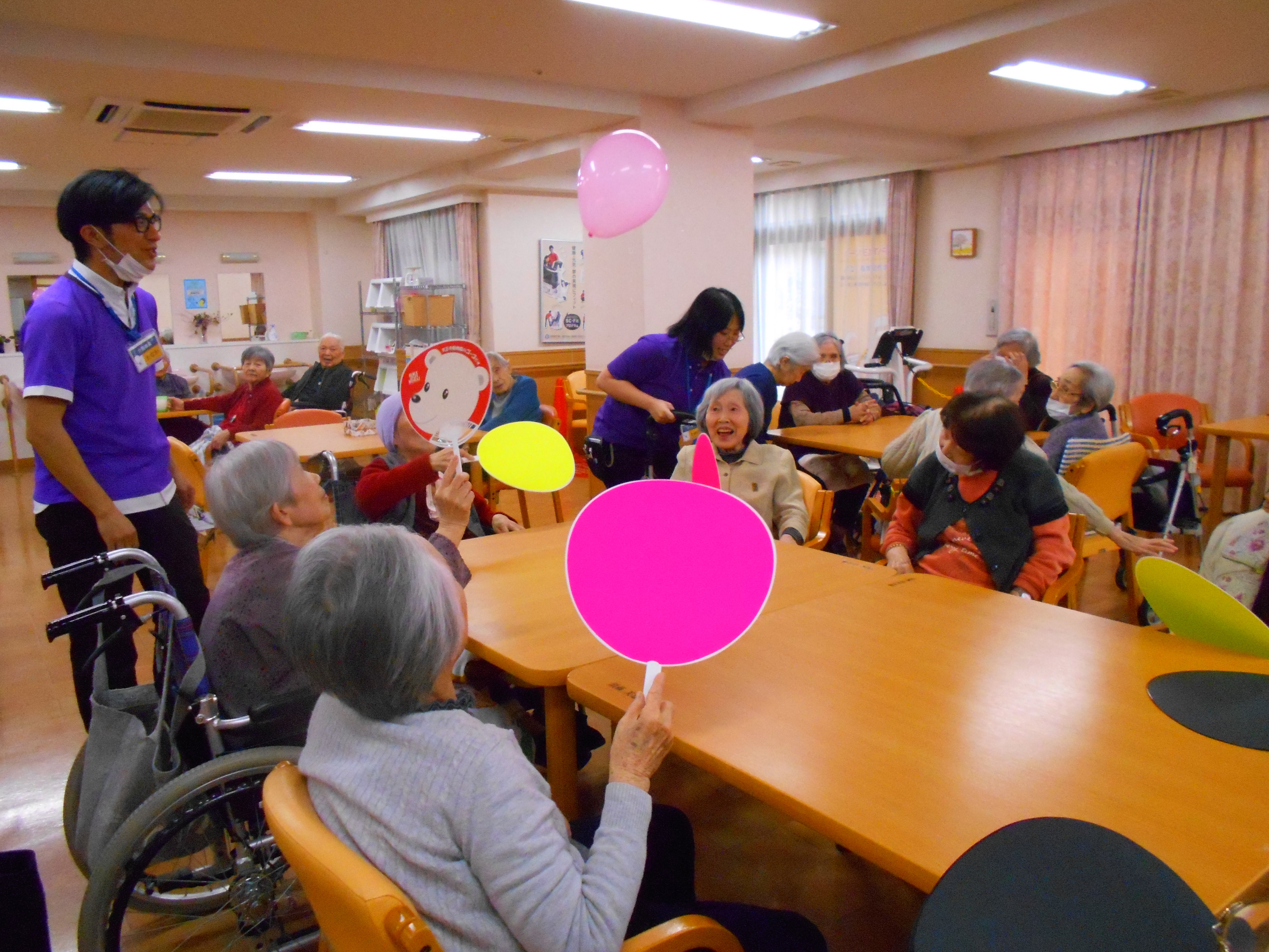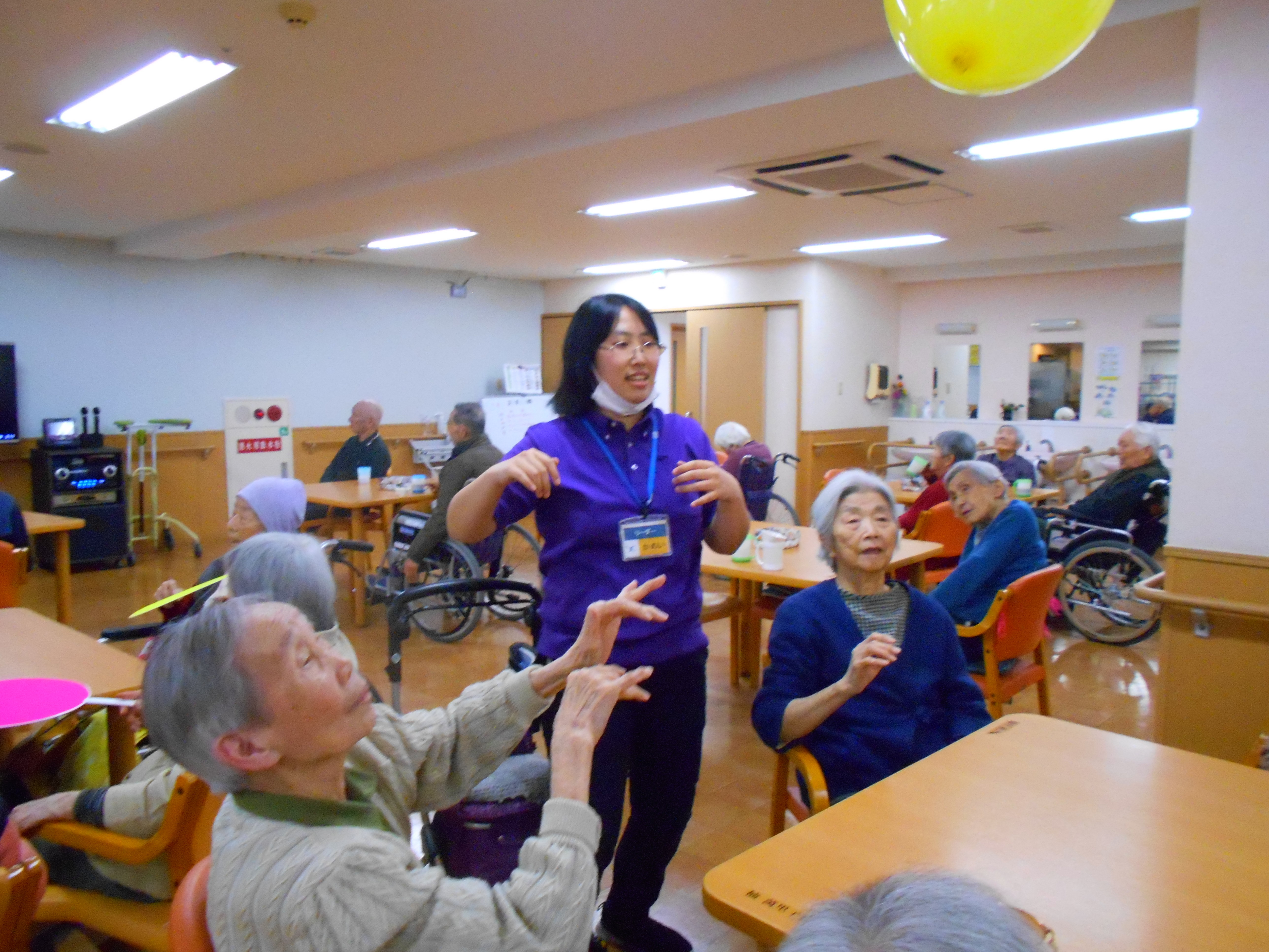 ご入居者の方々のリクエストにお応えし、簡単な体を動かす新規レクを実施しました!