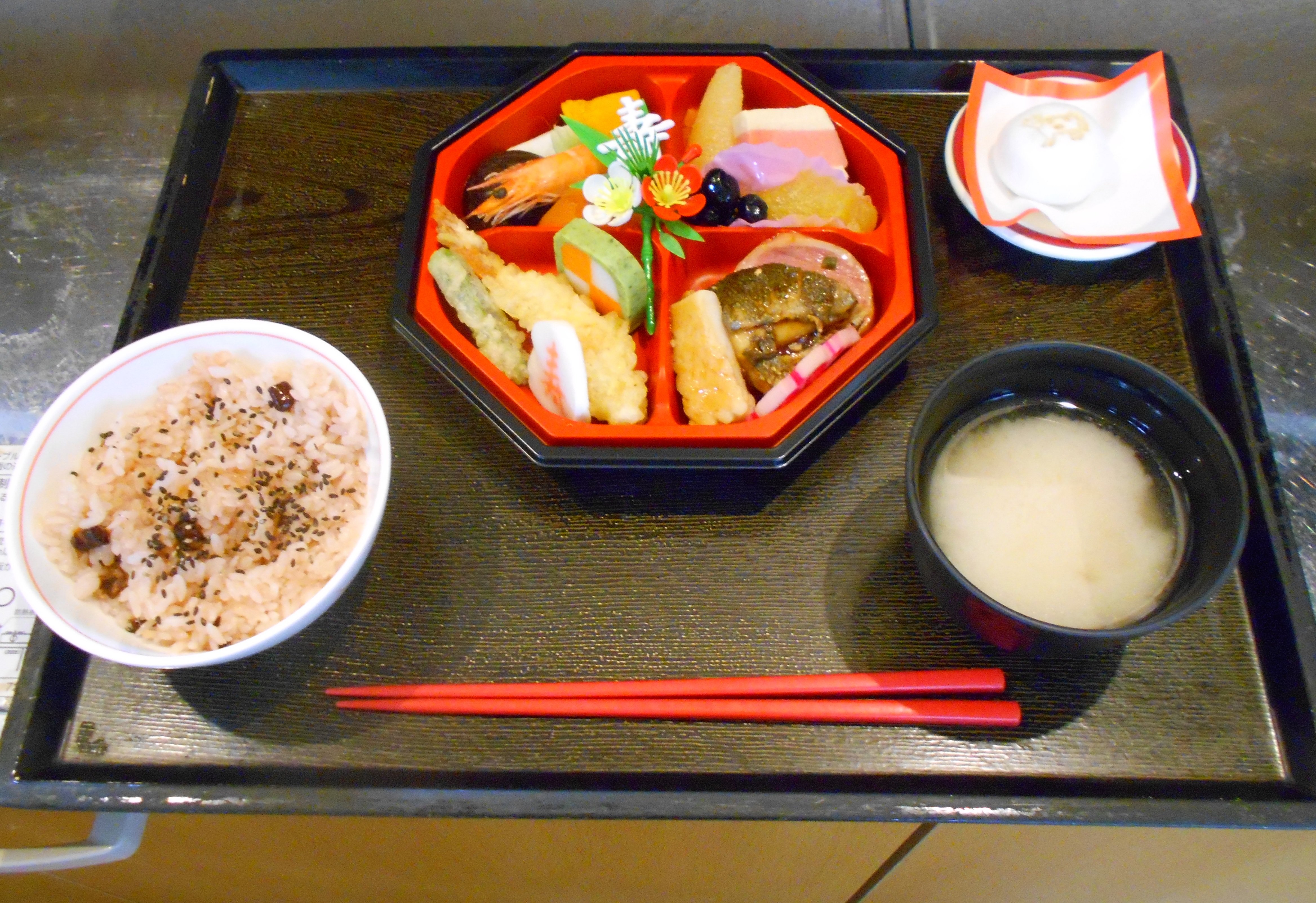 お正月レクの前におせち料理をいただきました。