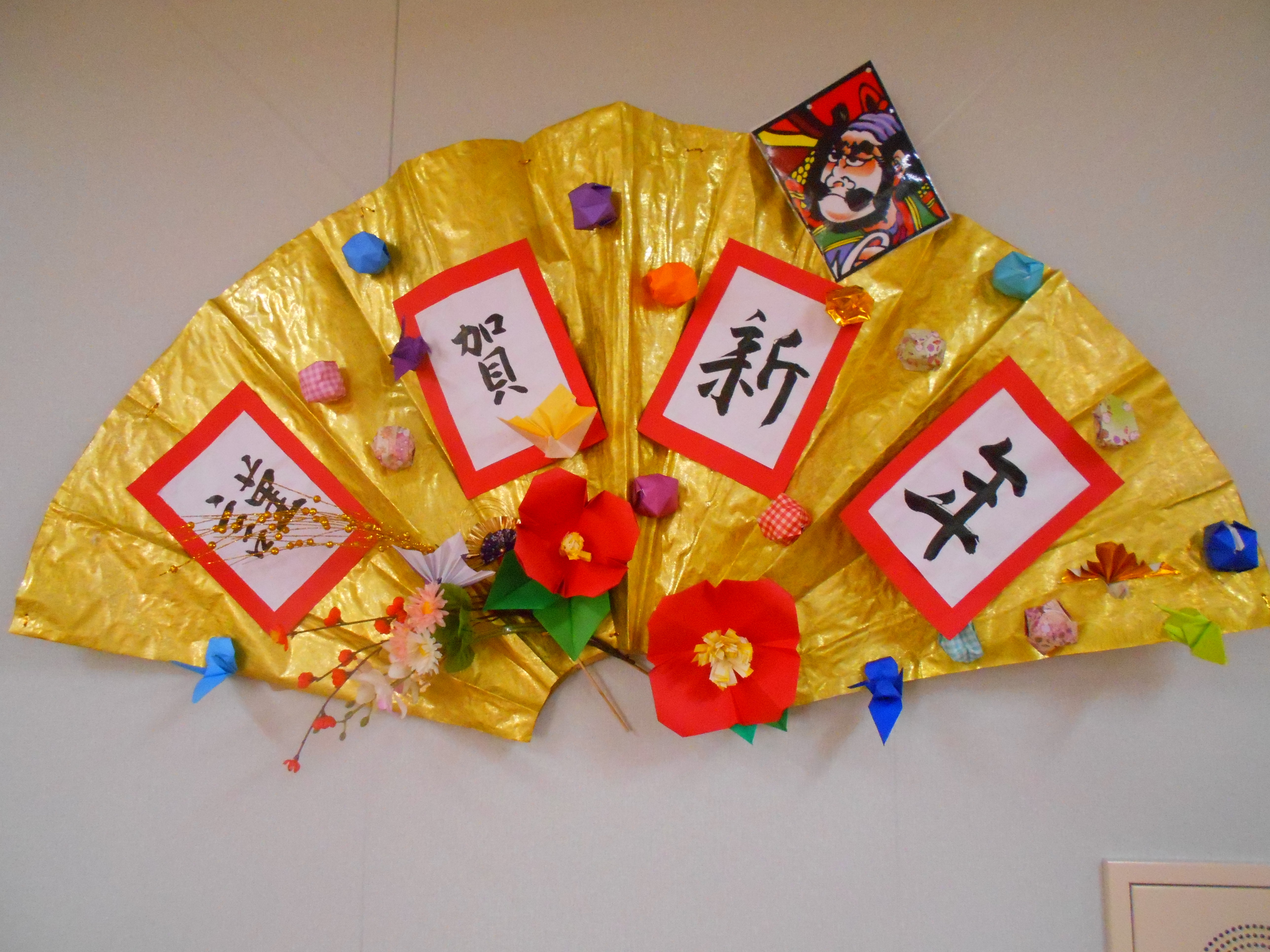 食堂に飾った「謹賀新年」の字はご入居者4名の方が書いてくださいました。
