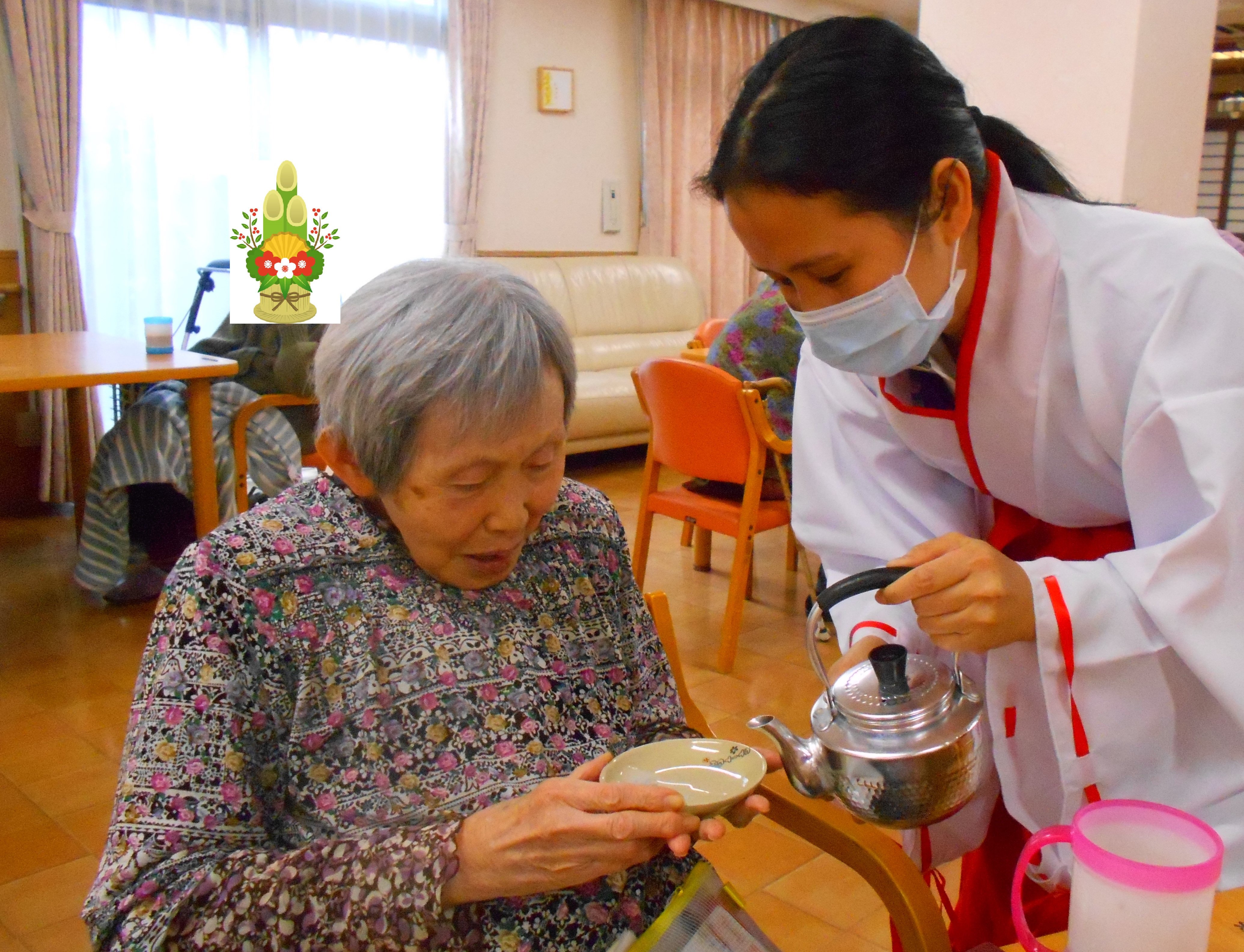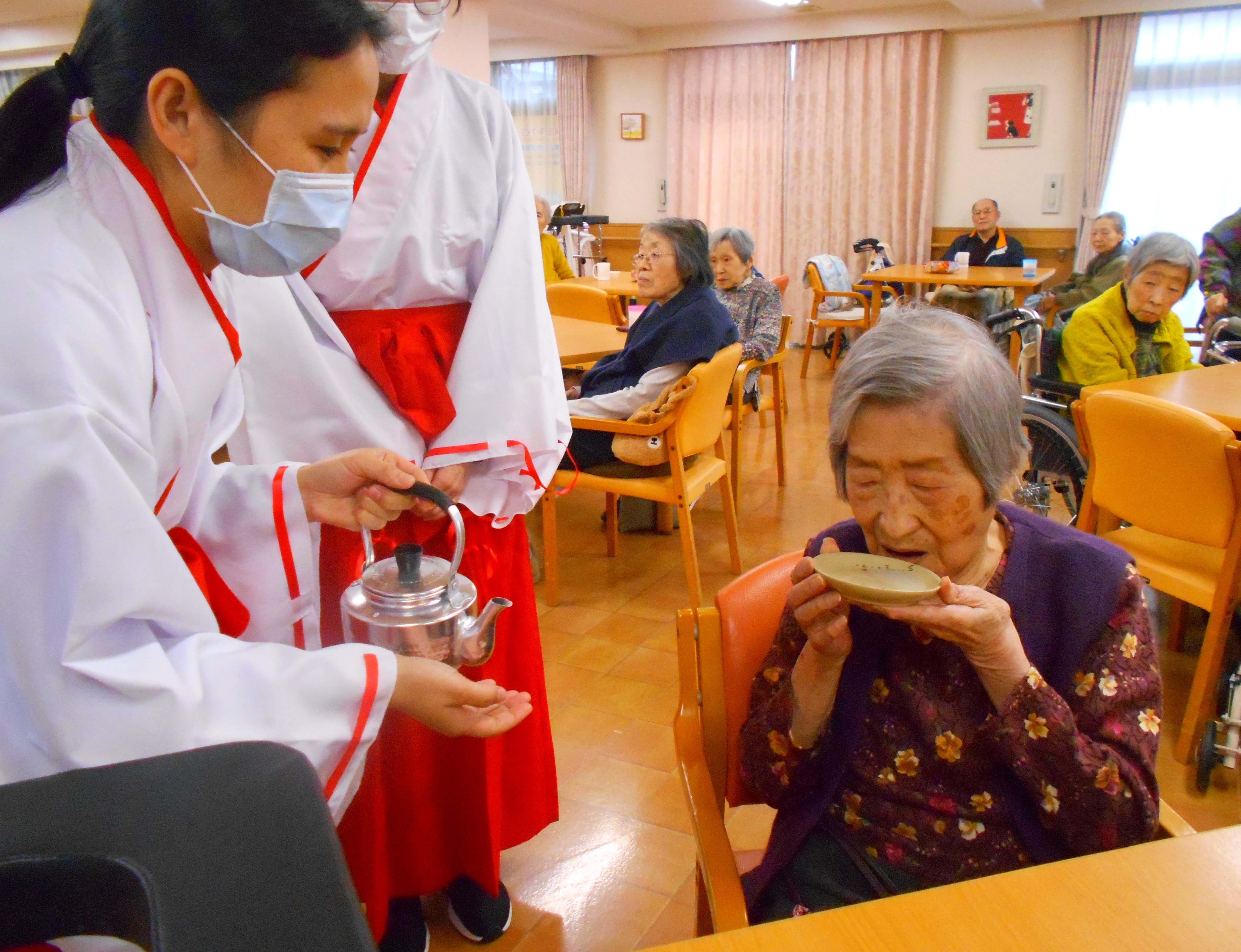 2日には、お神酒を施設でさせていただきました!