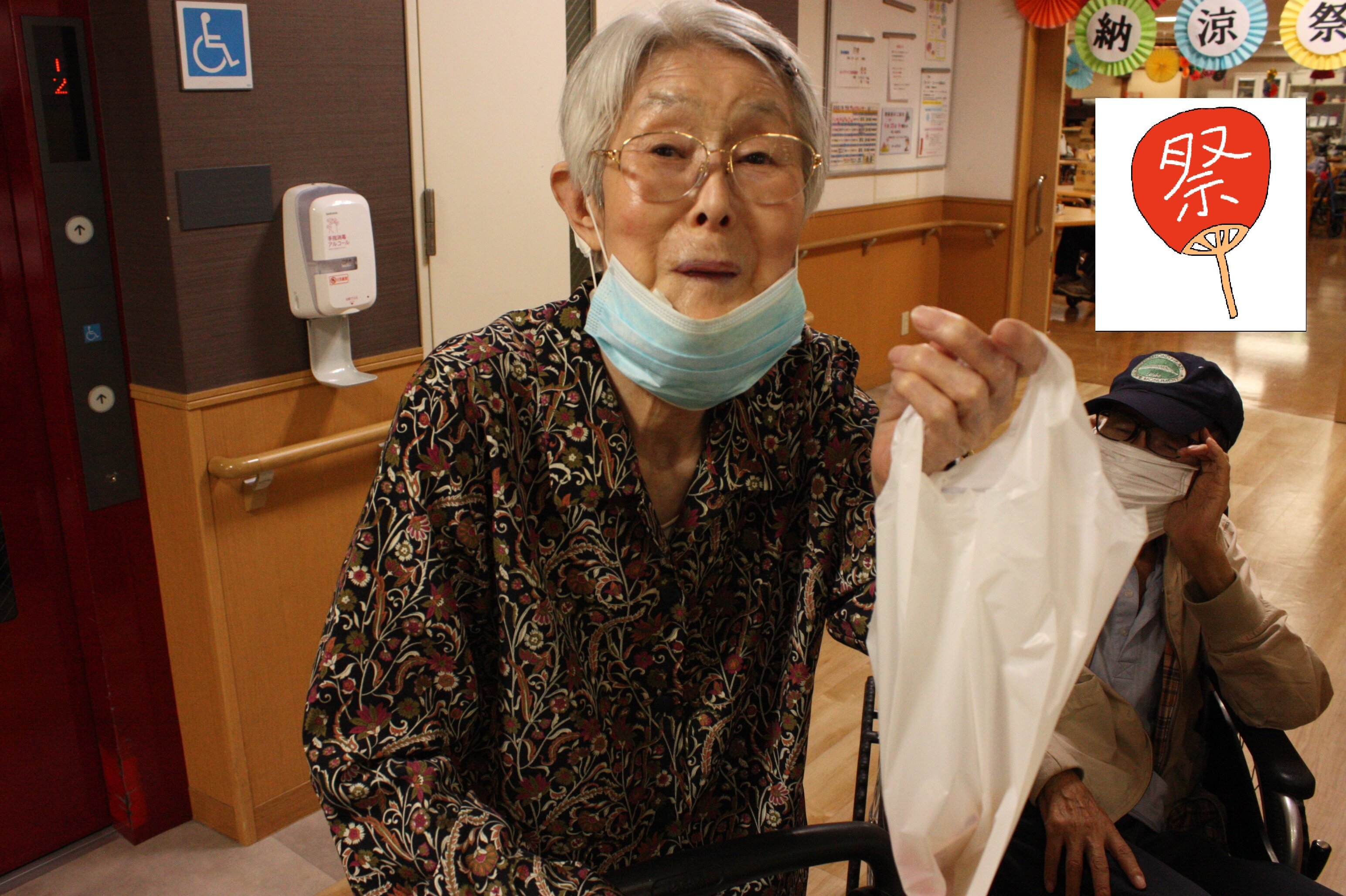 納涼祭では午前中に、くじ引き・お手玉投げ・ヨーヨー釣りを行いました!