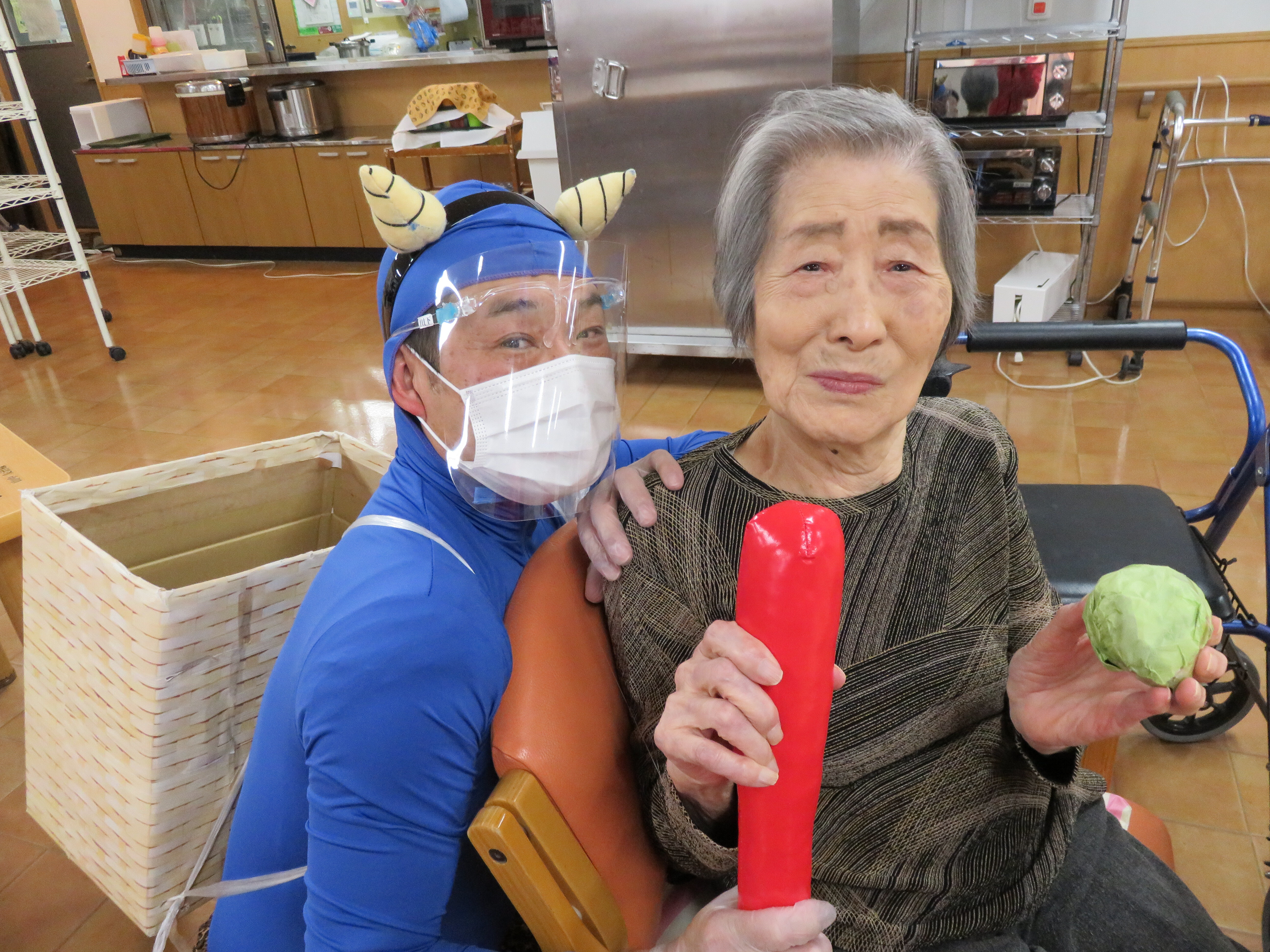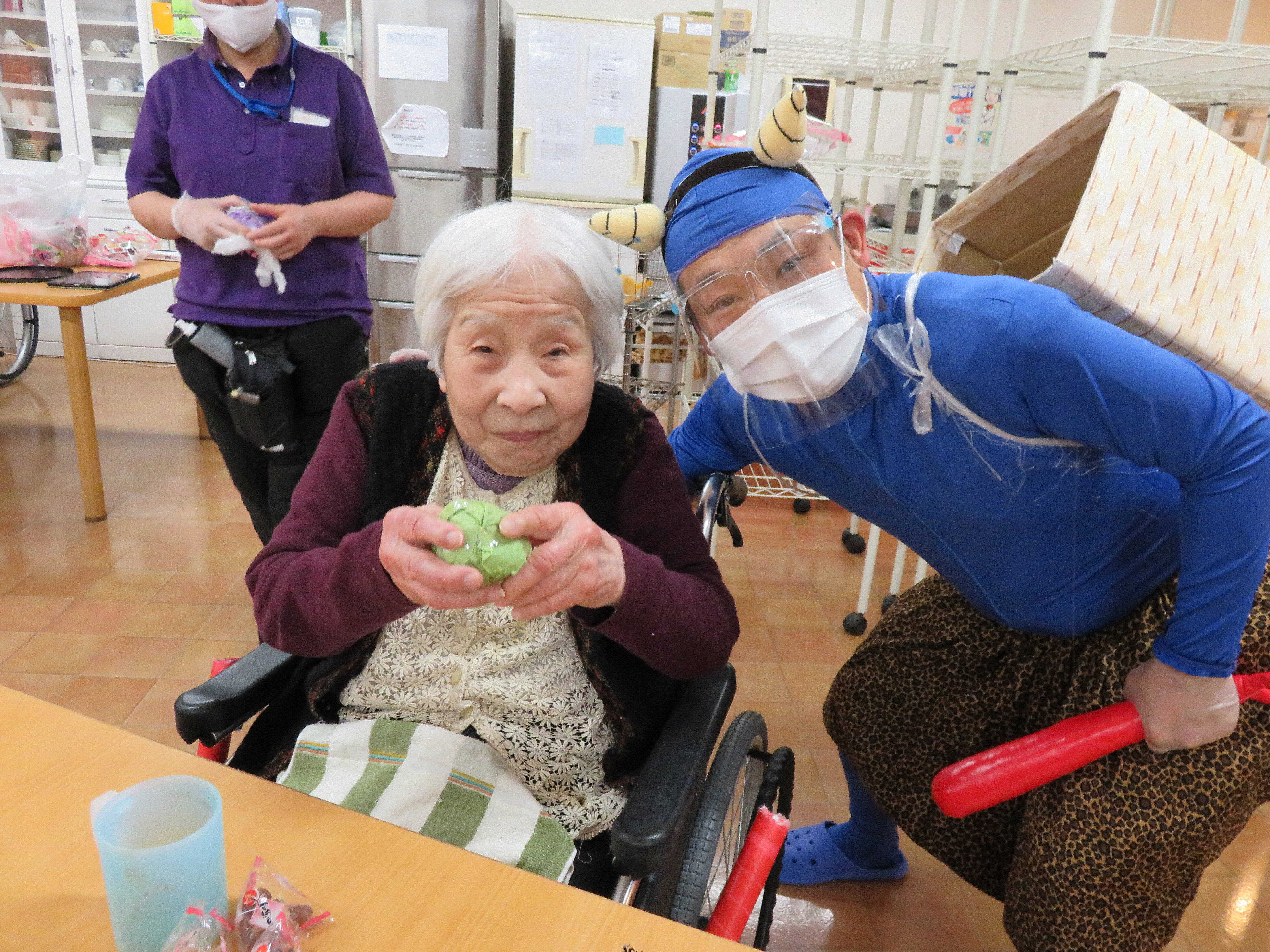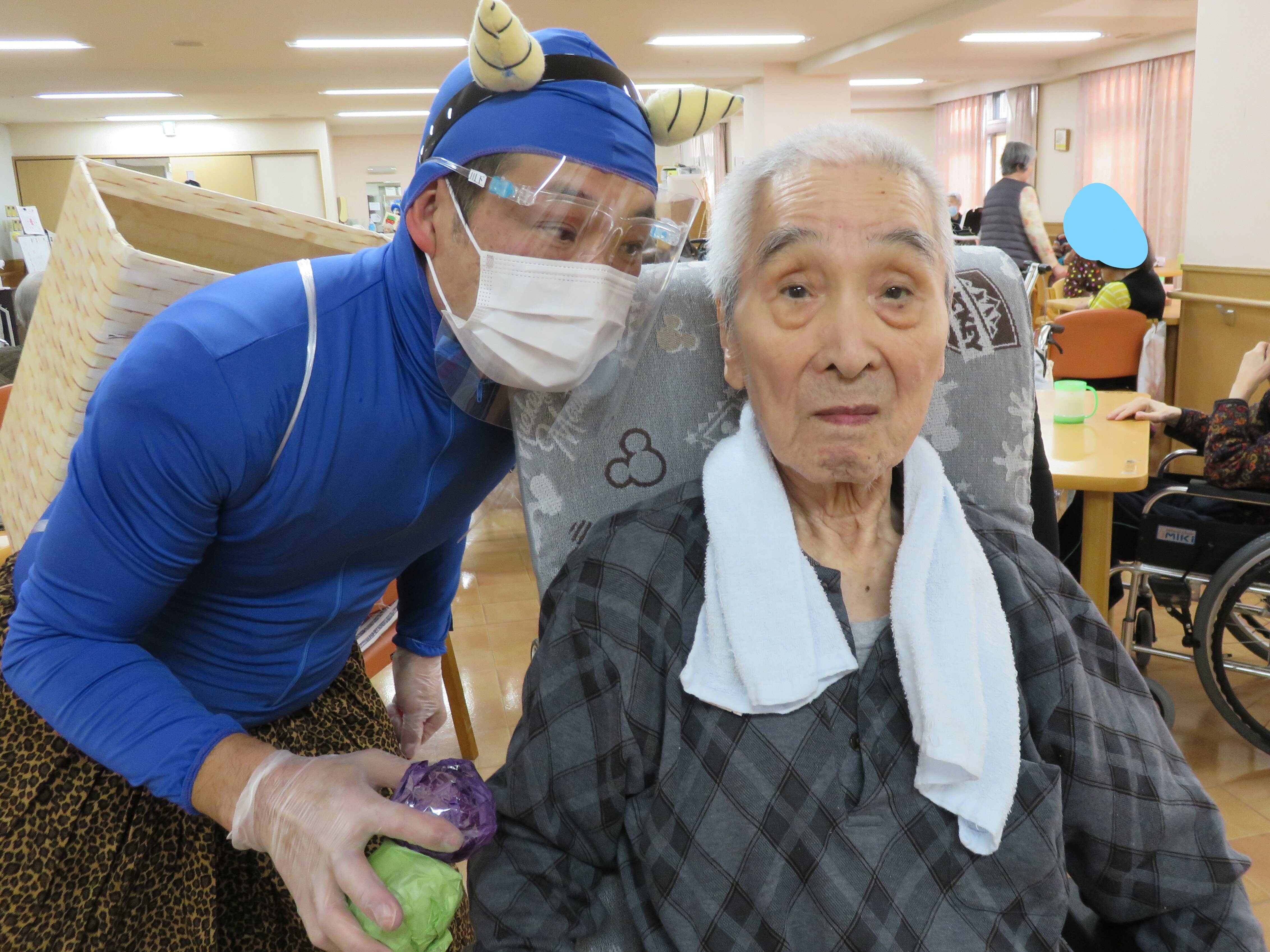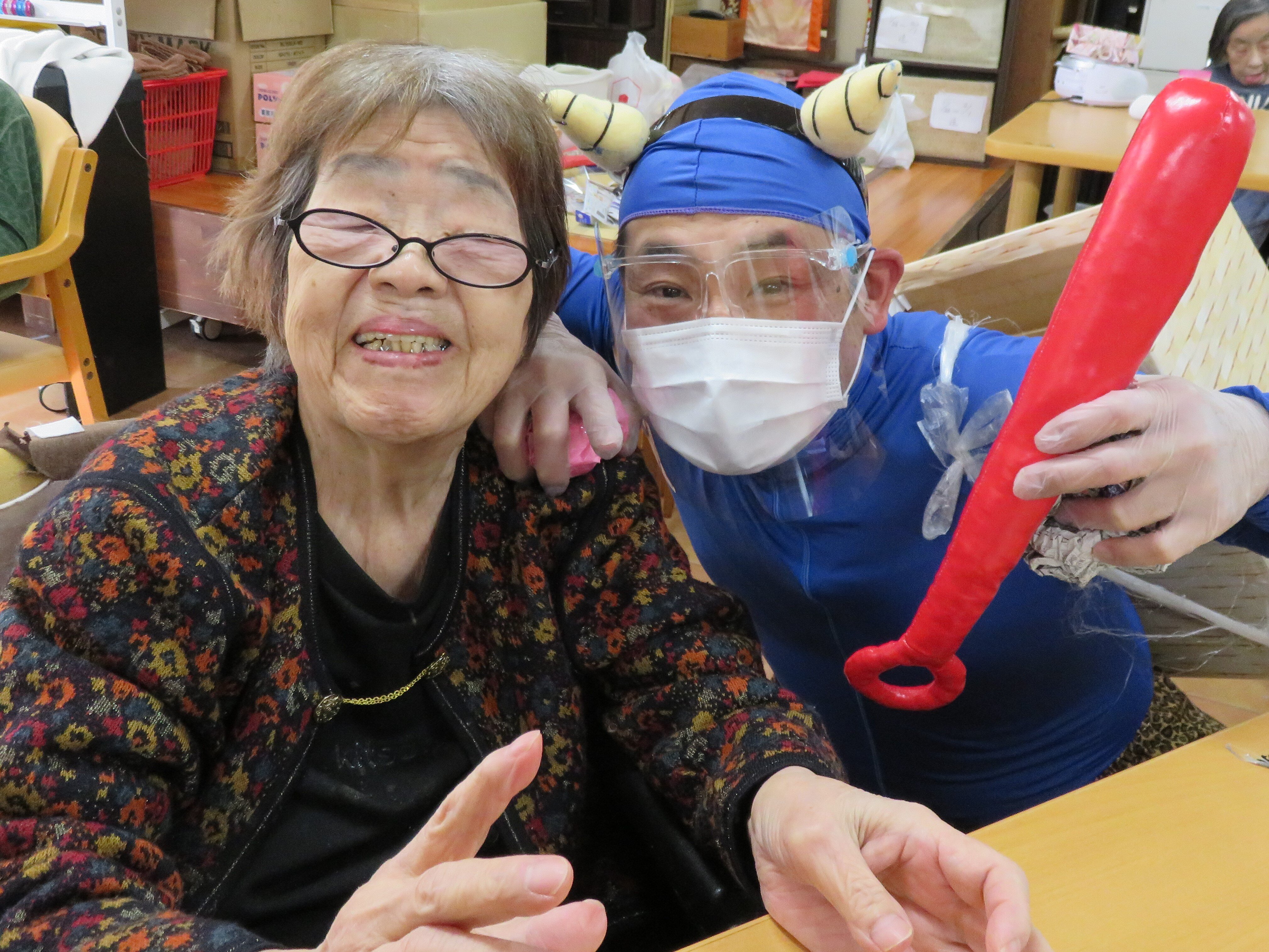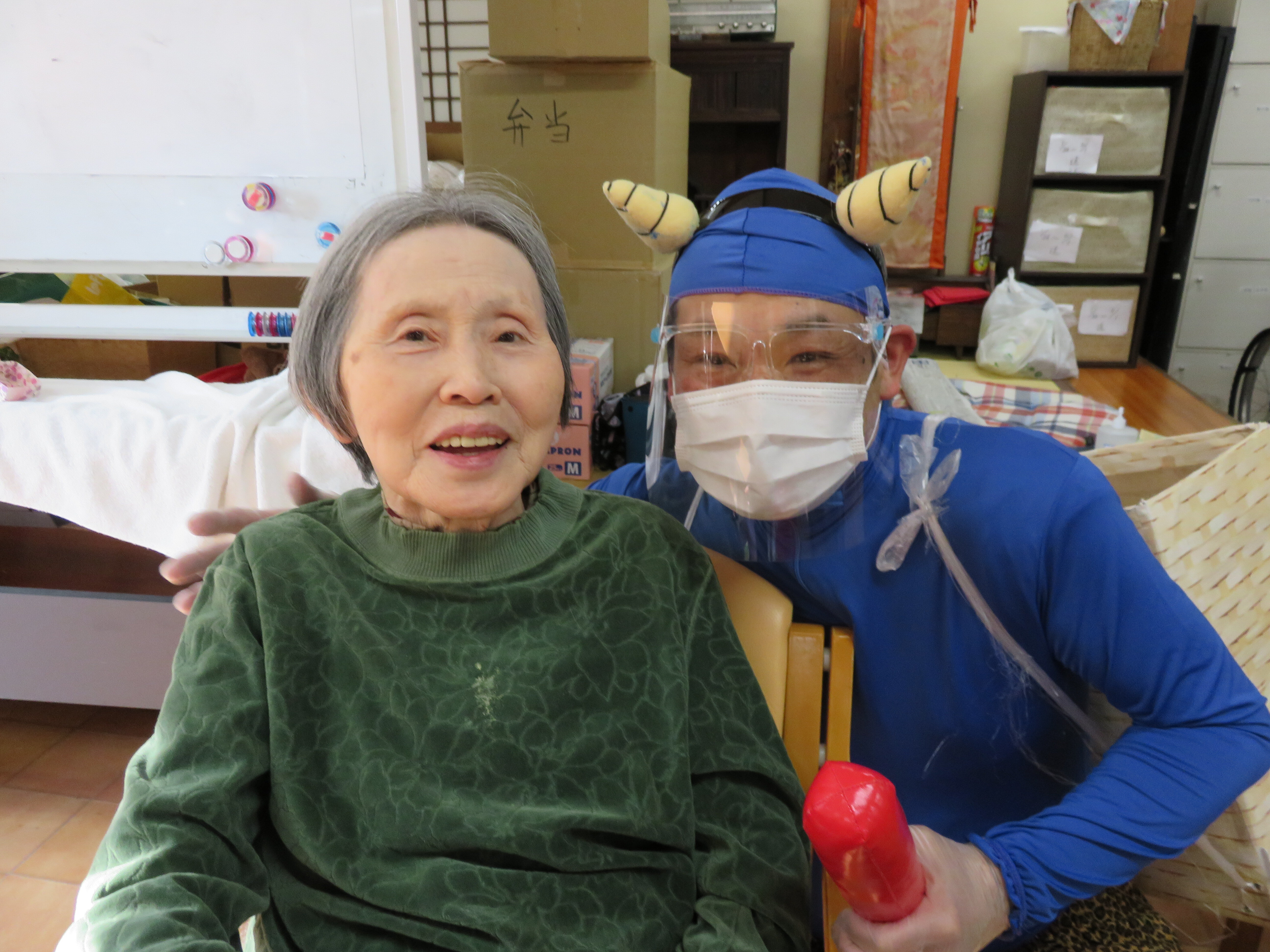 今年の鬼は感染対策のためフェイスシールドをつけています!!