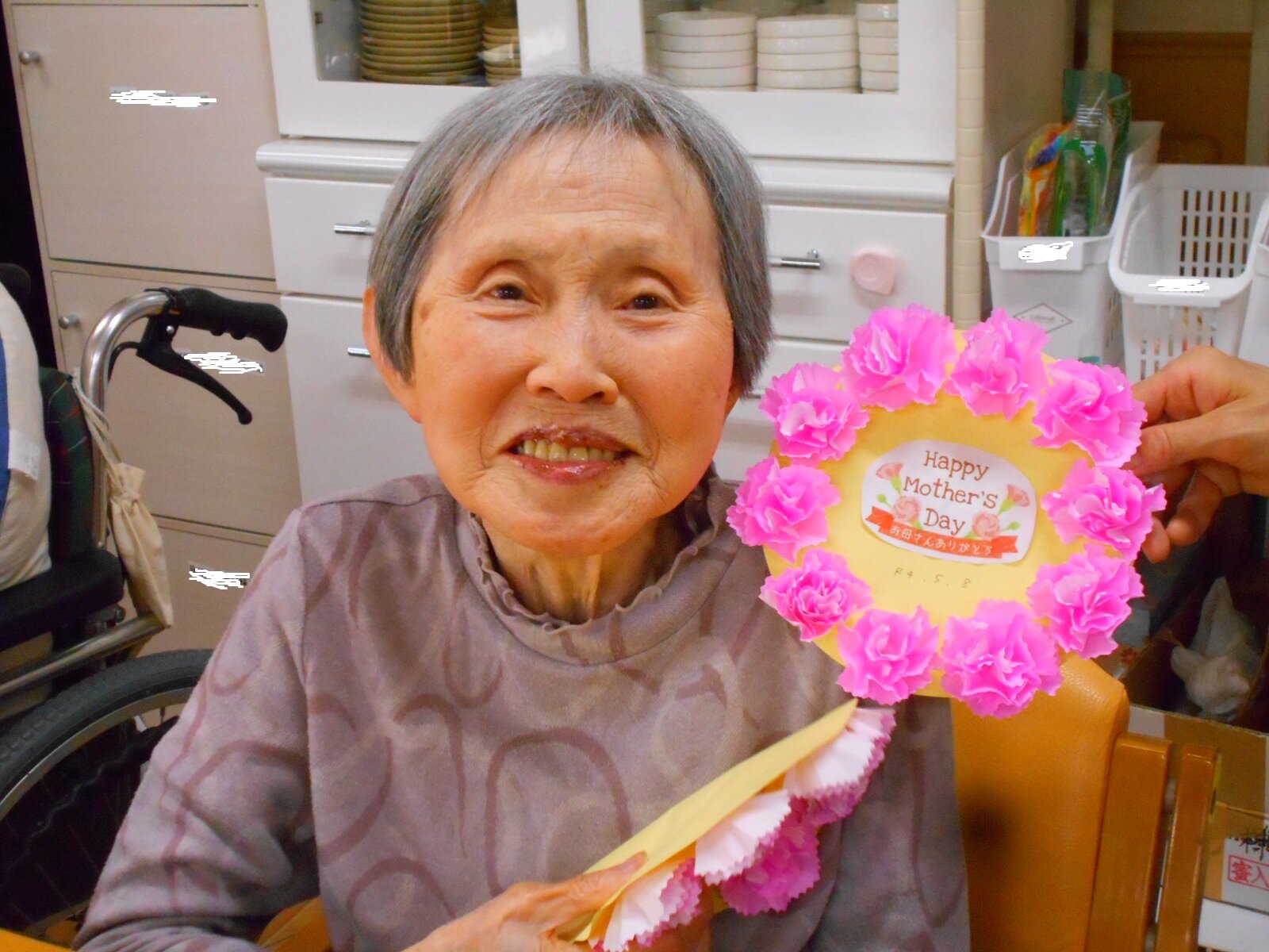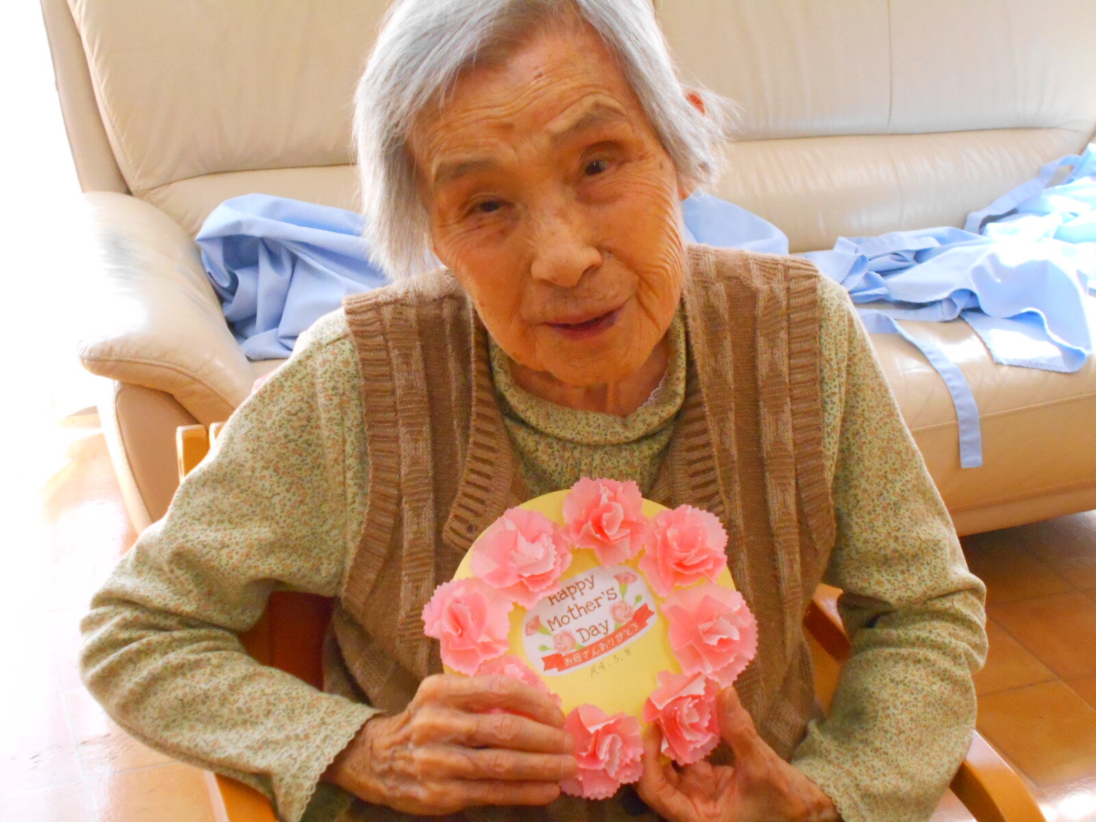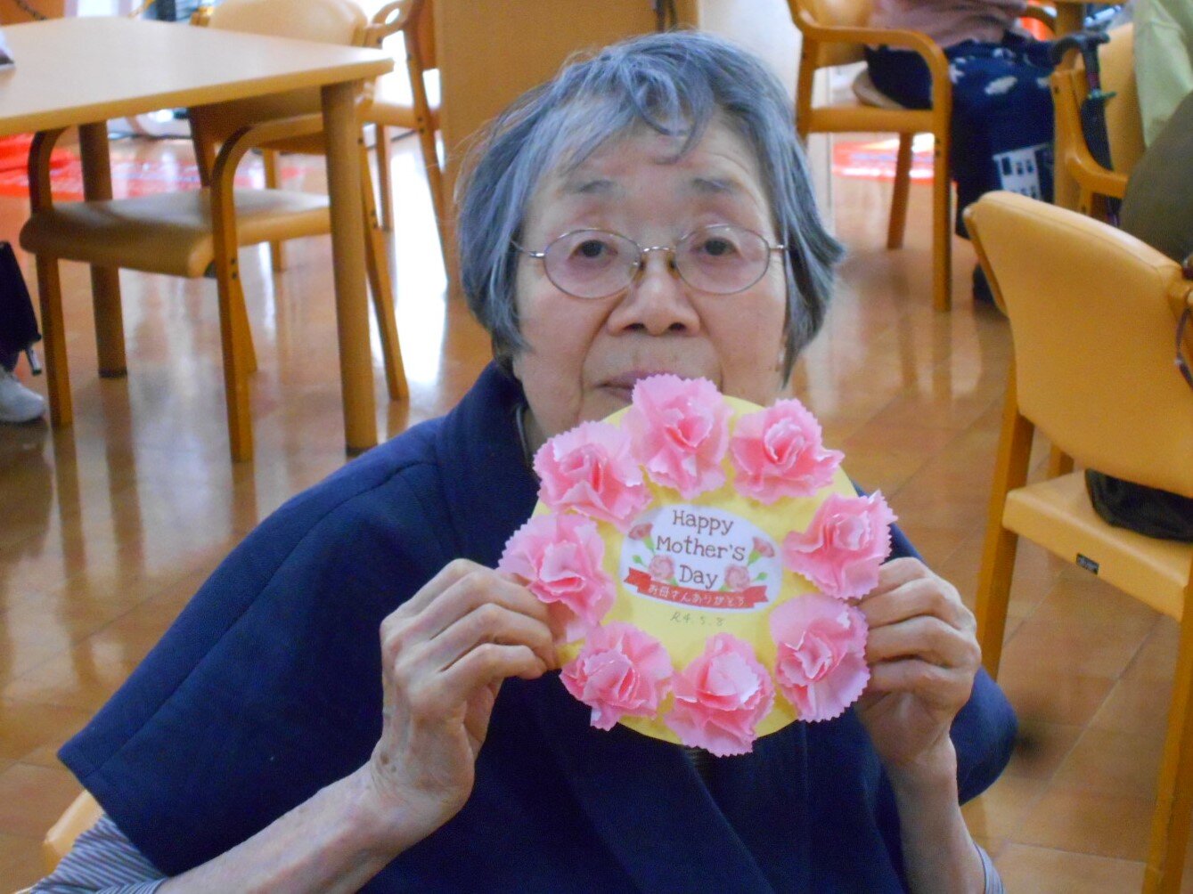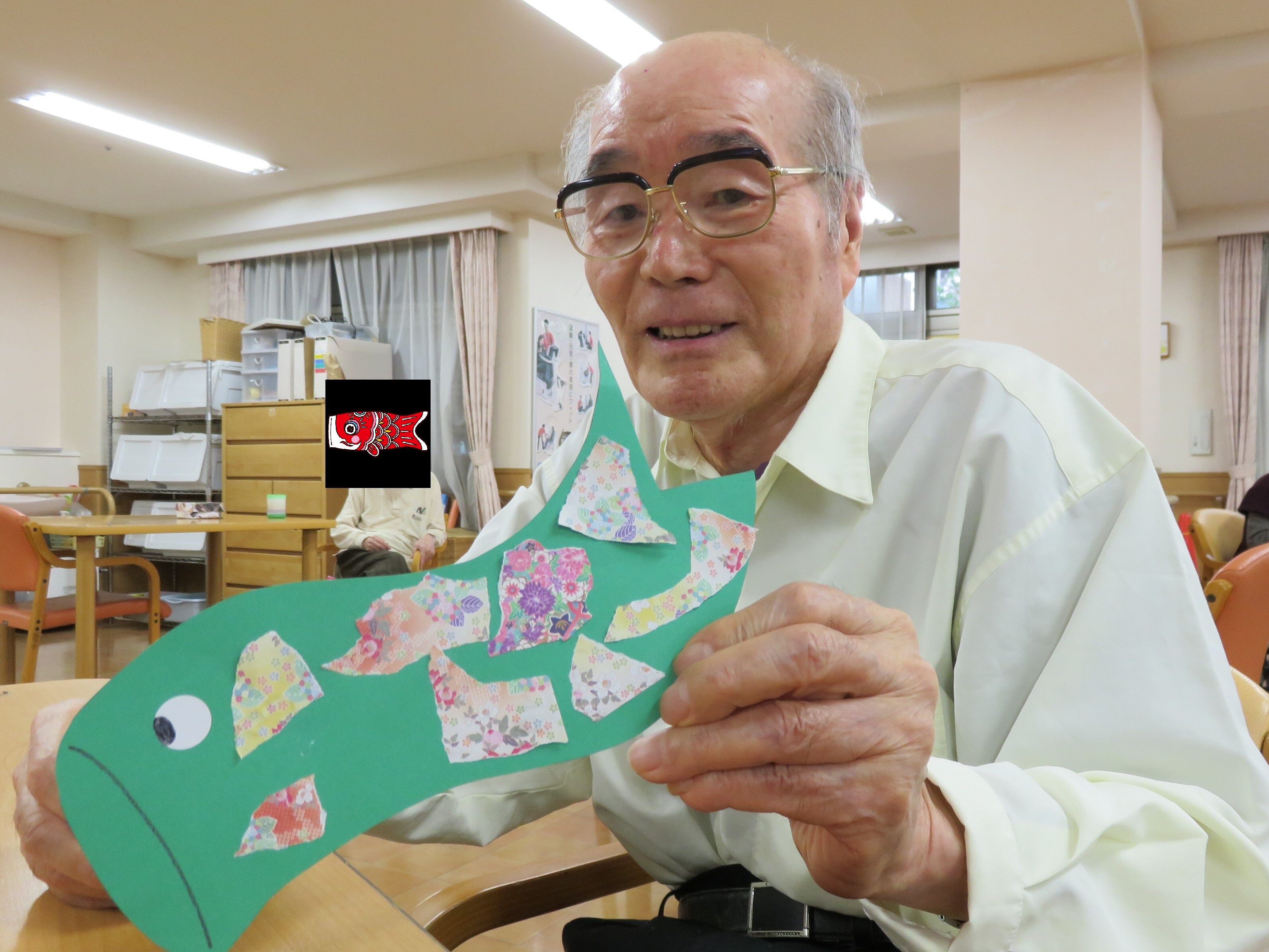 堺白鷺では5月前ににご入居者の皆さまにこいのぼりを作って頂きました。5月8日には母の日レクを行いました!!
