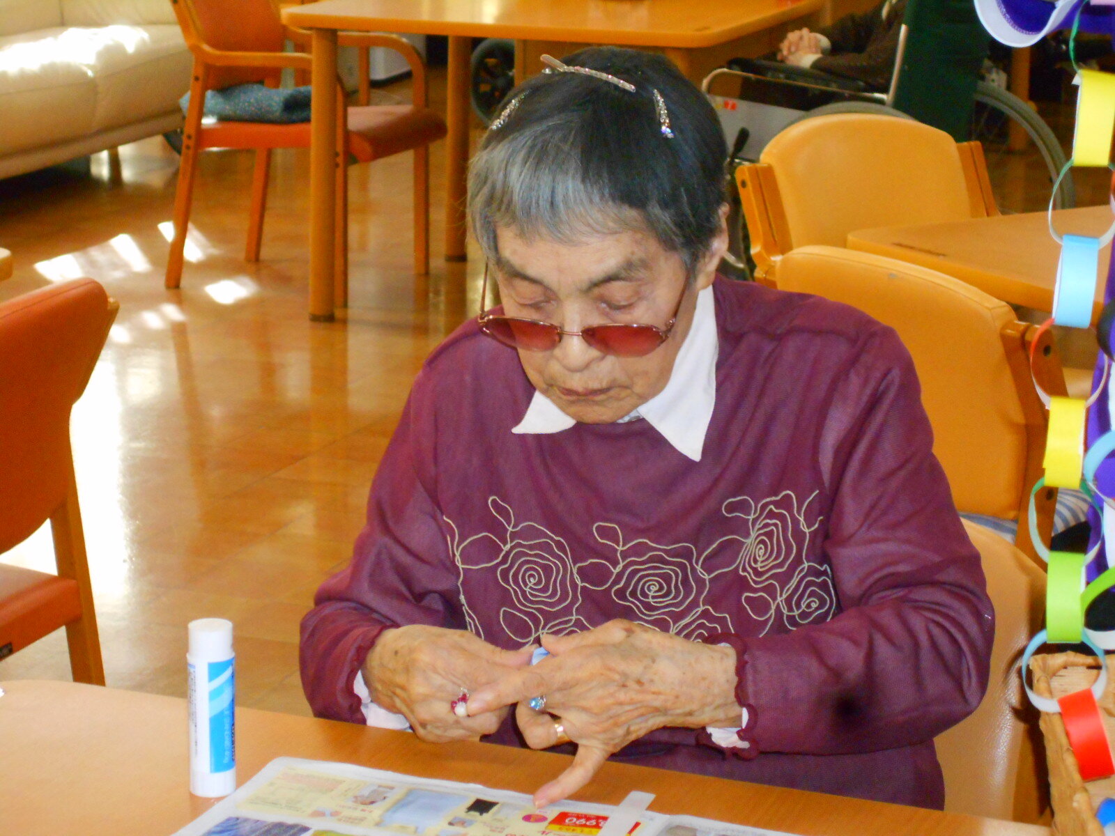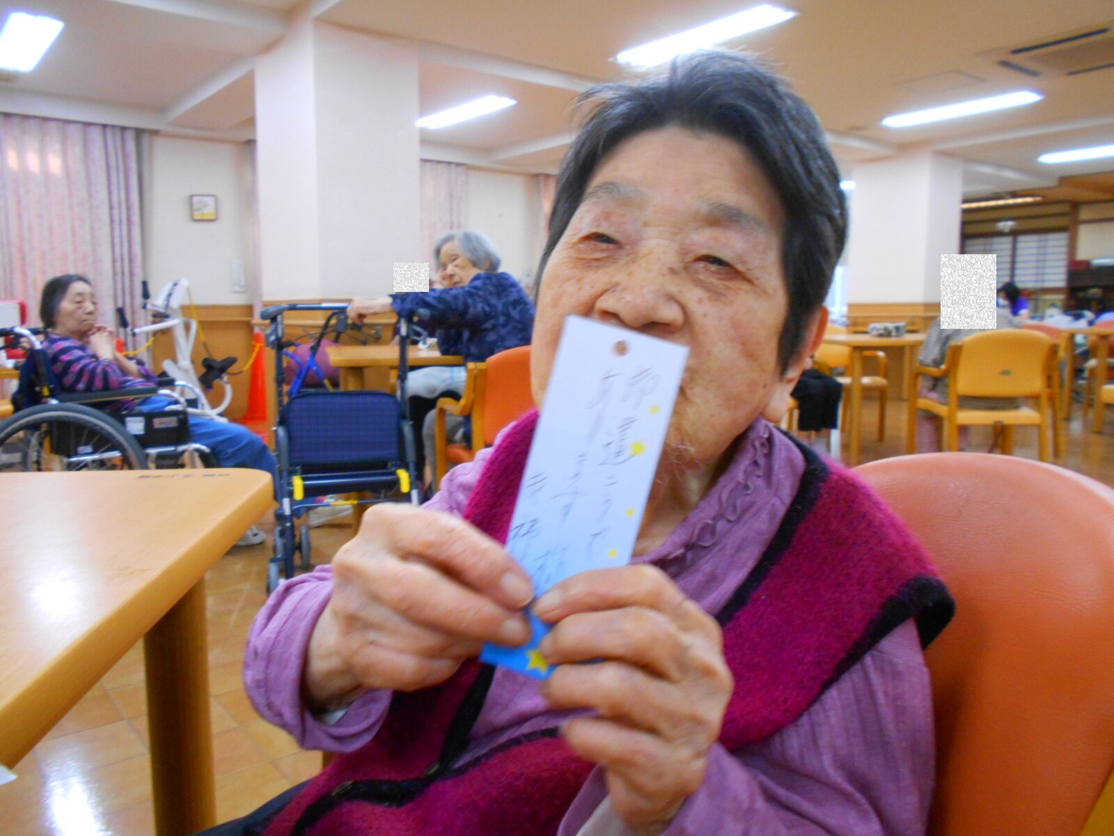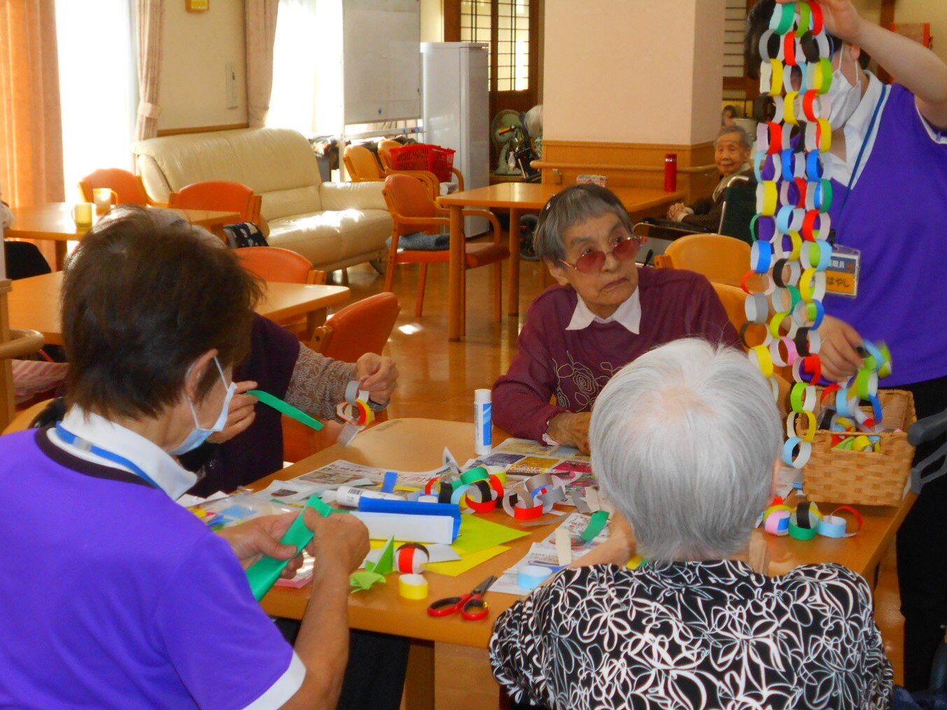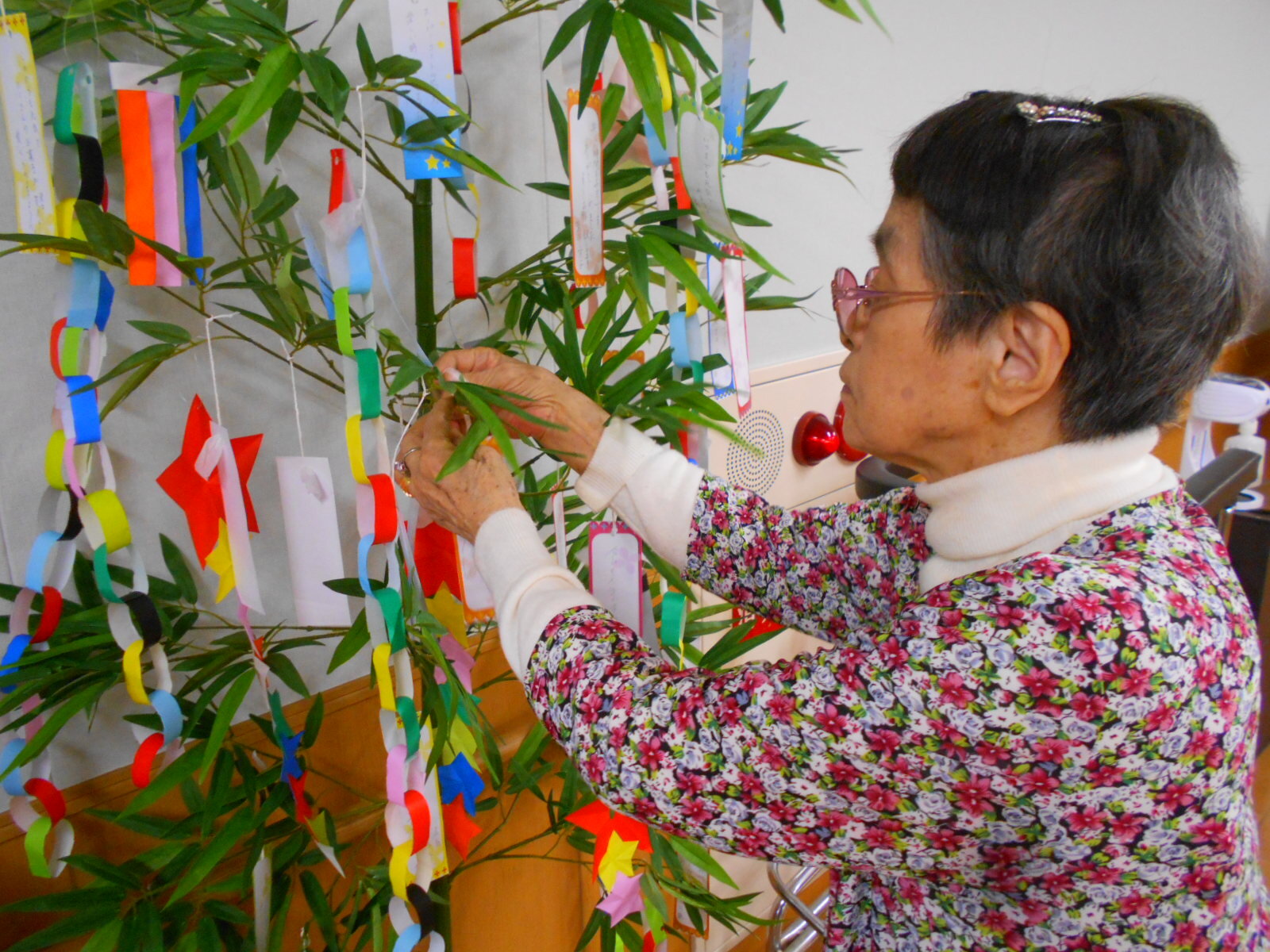まずは入居者様と一緒に笹の飾りを作りました。