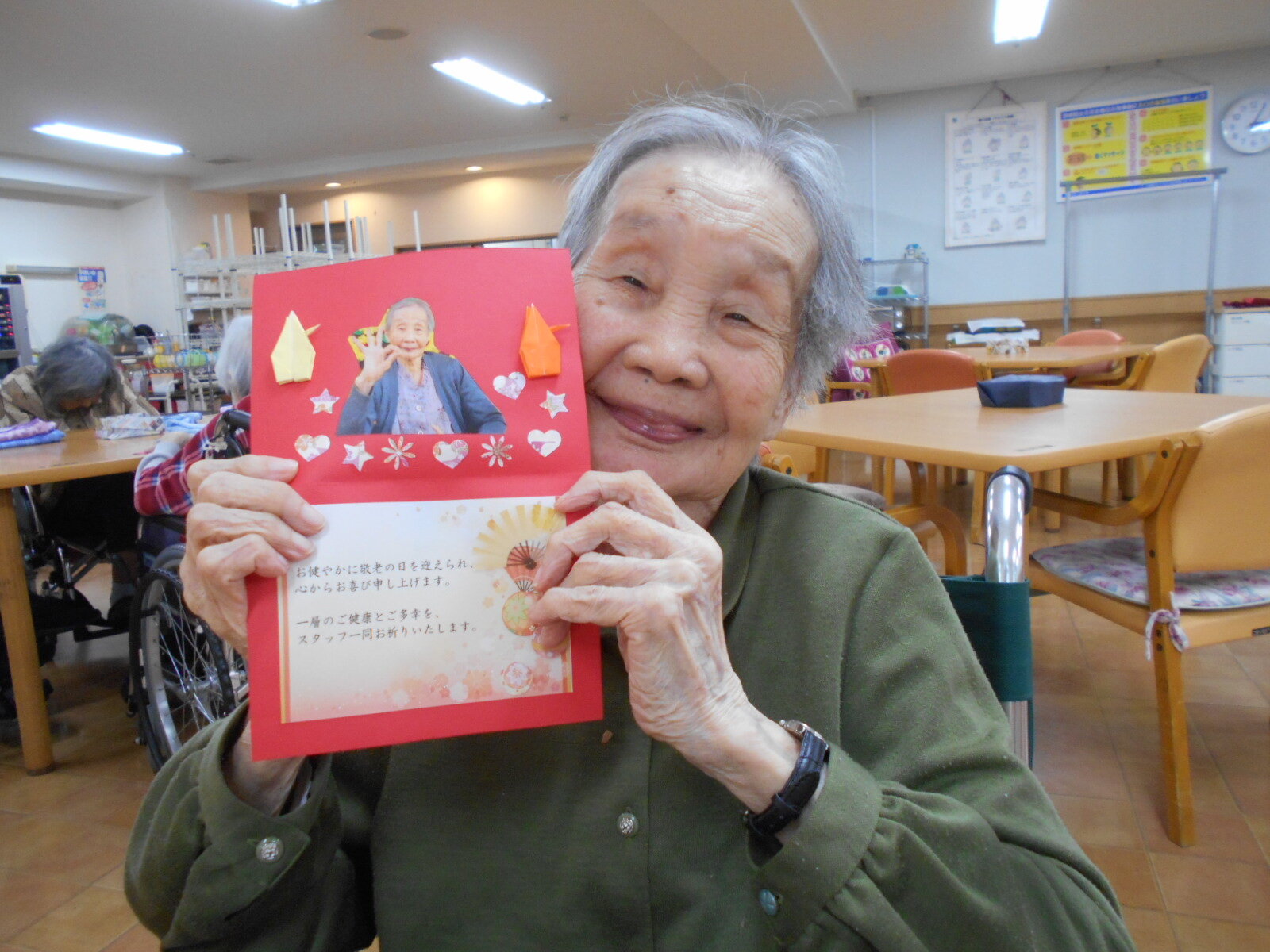今年の敬老の日にはいつも楽しいお話や素敵な笑顔を見せてくださる皆様へメッセージカードをお渡ししました☆