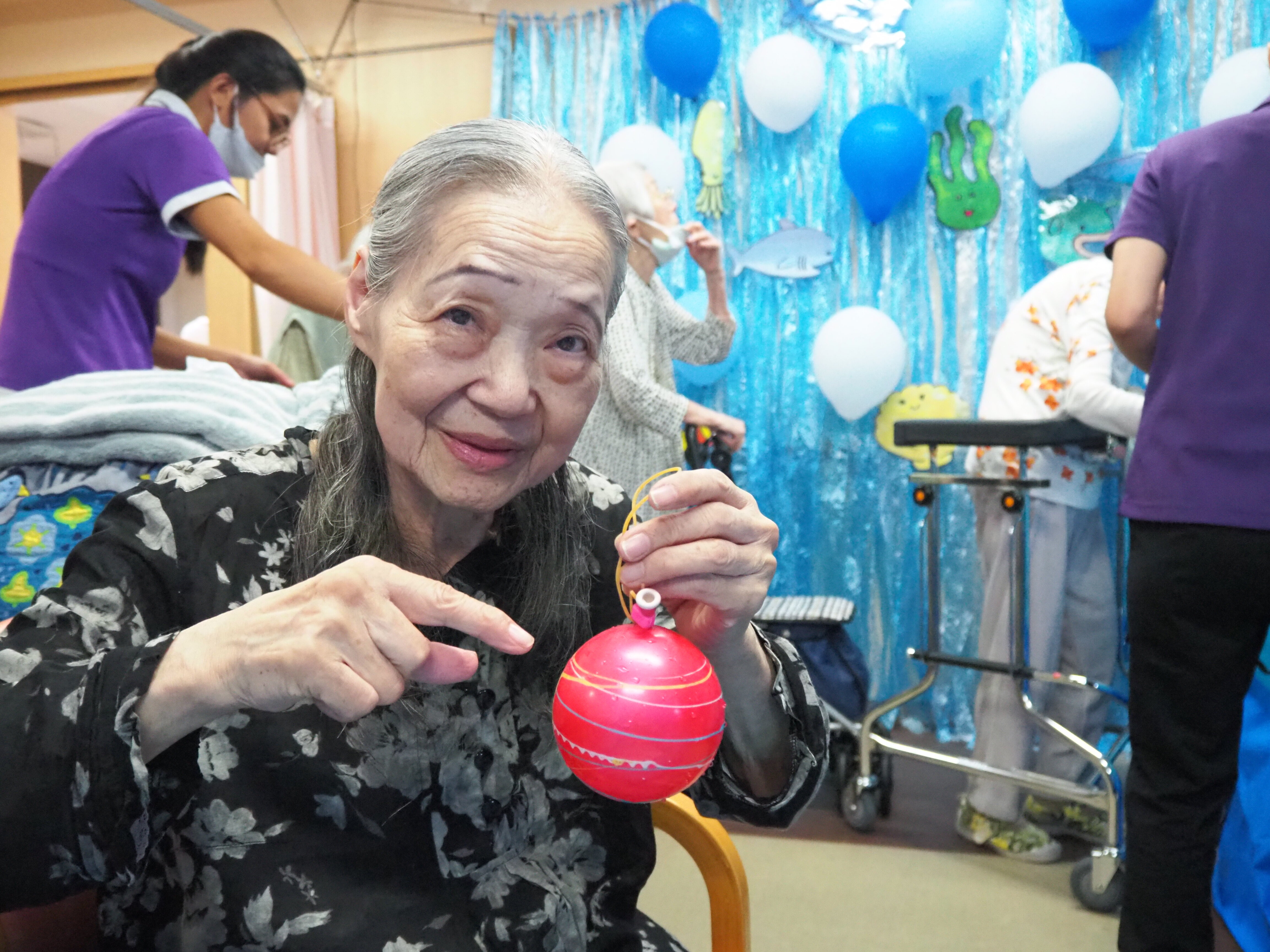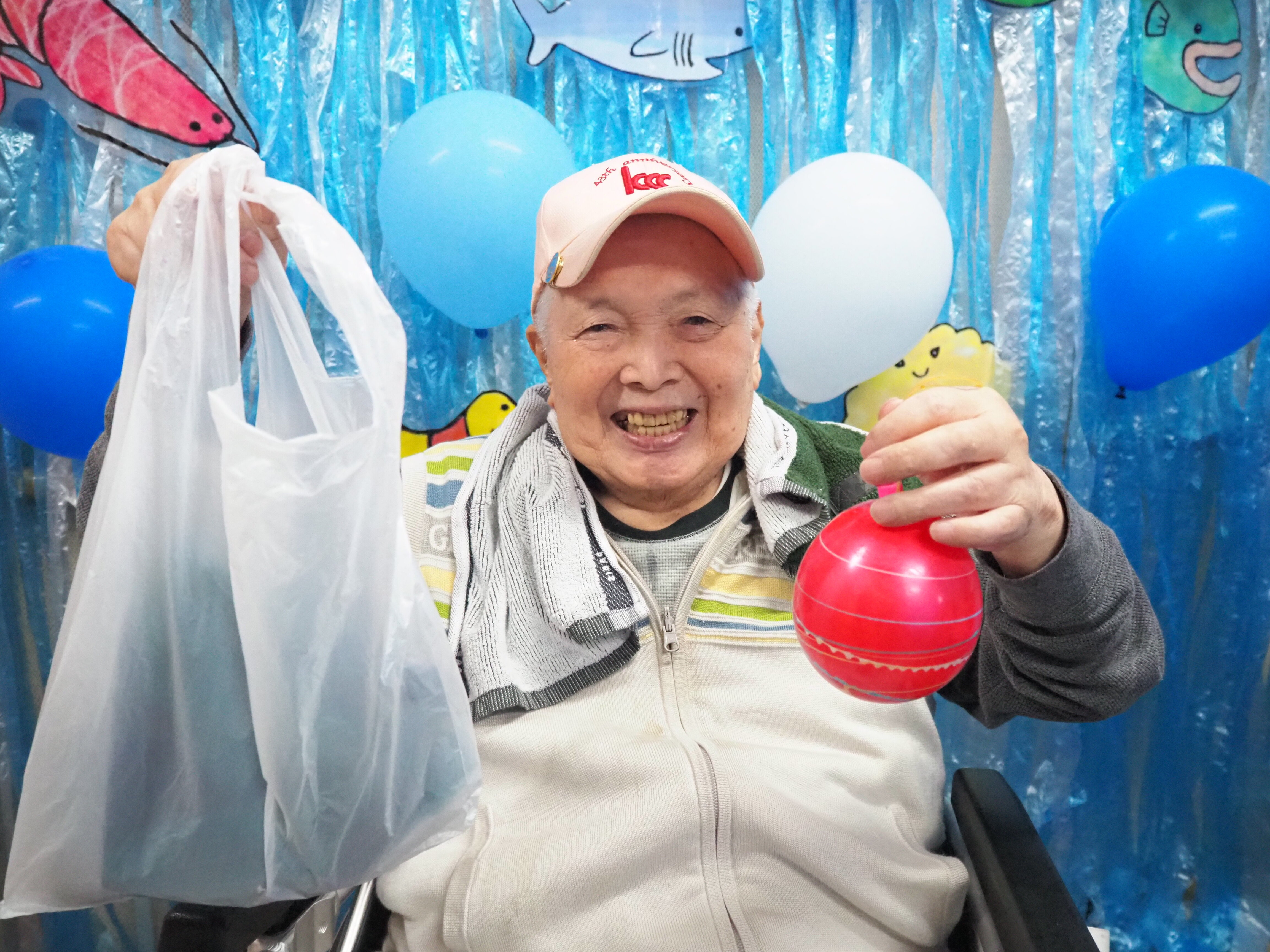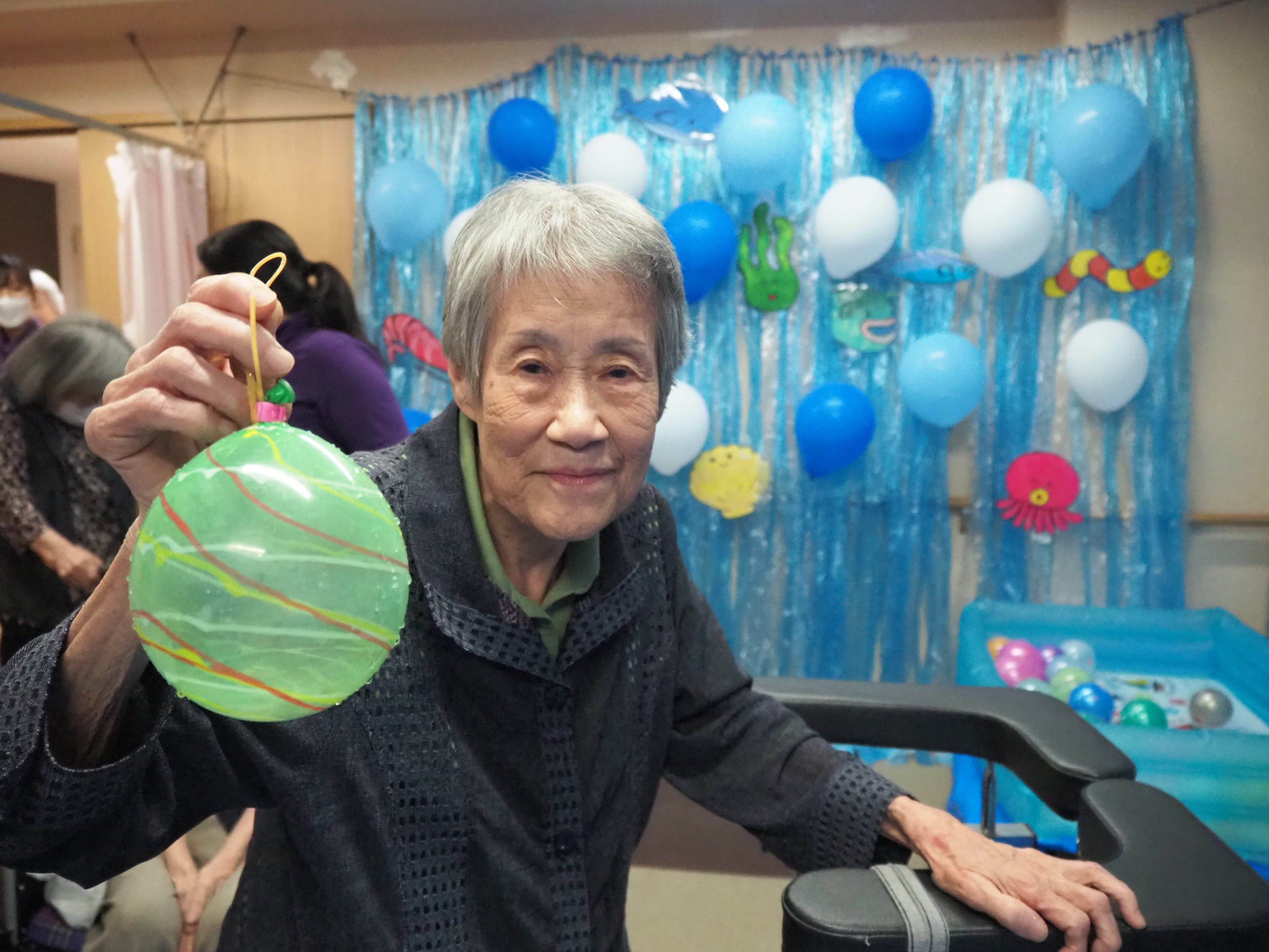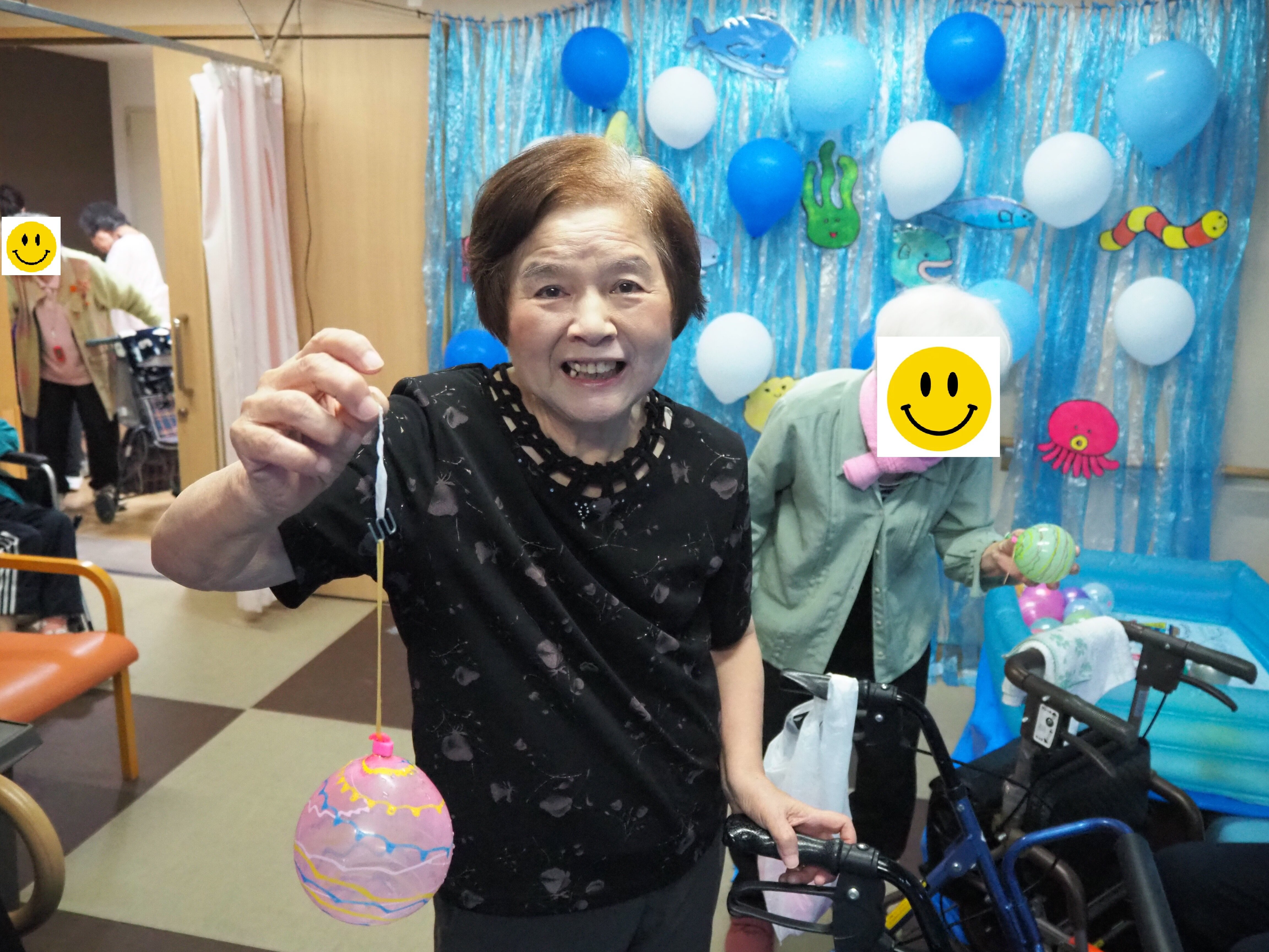 釣り上げた後は歩行器につけたり、部屋に飾っている方もおられました♪