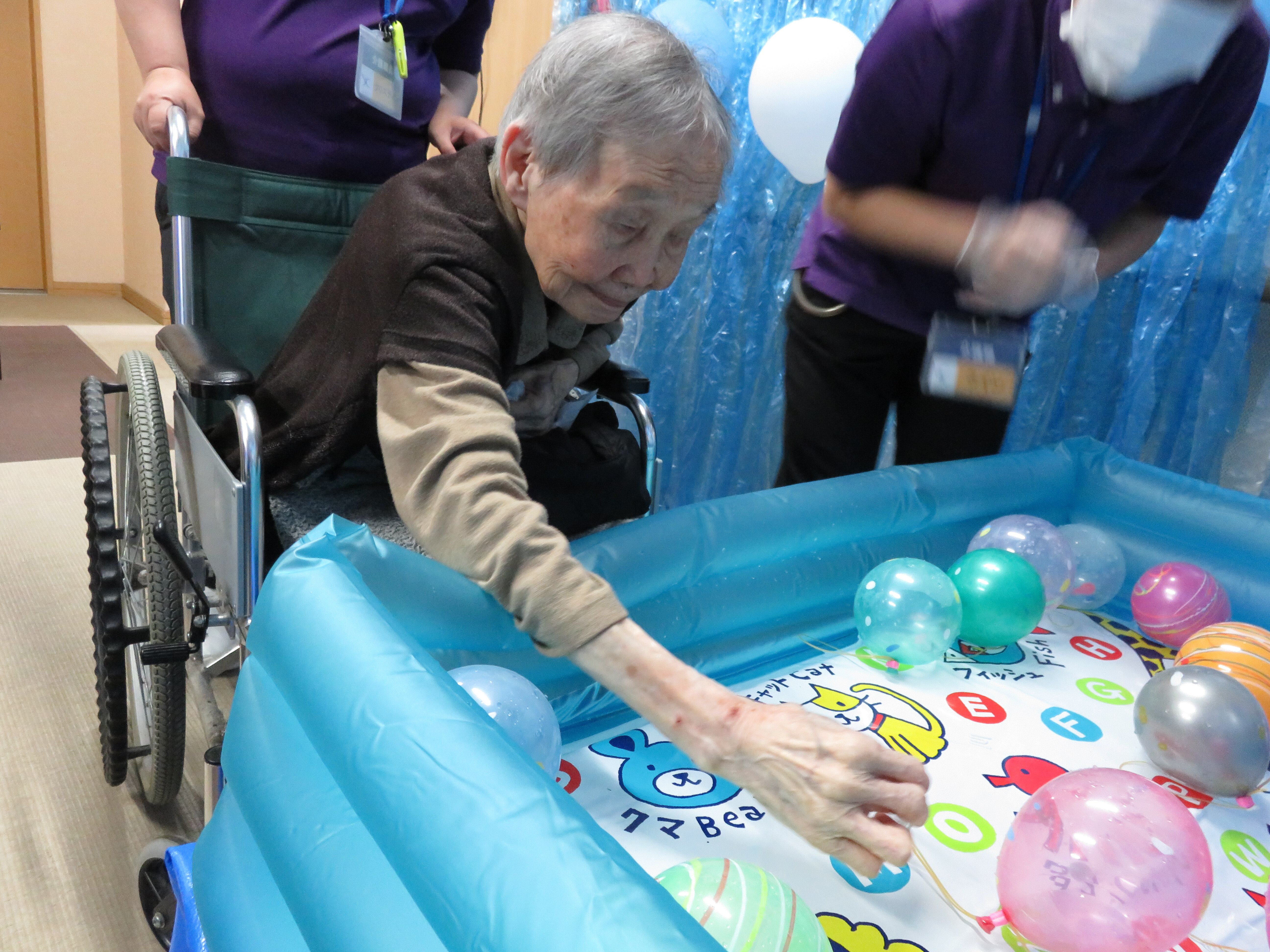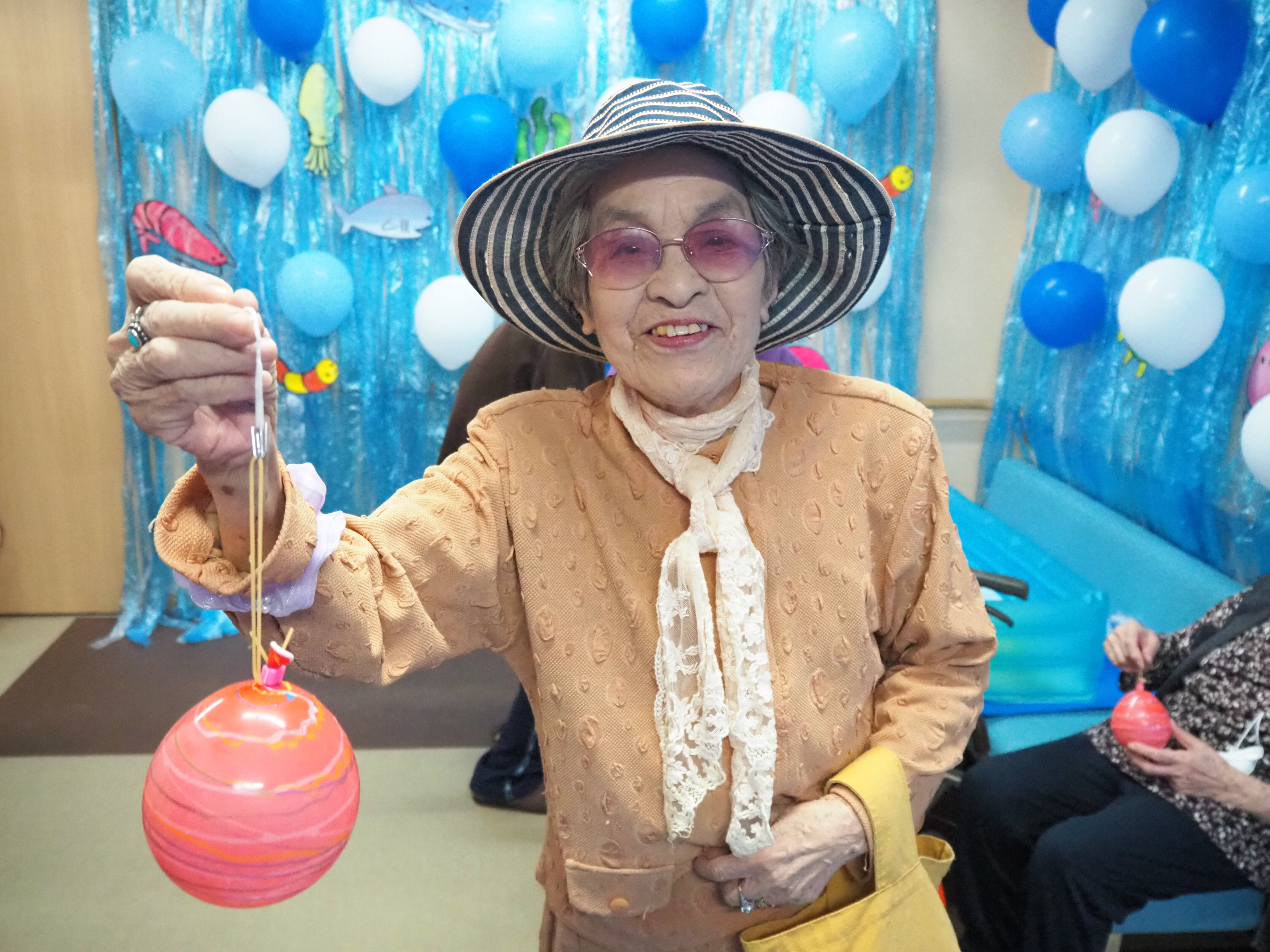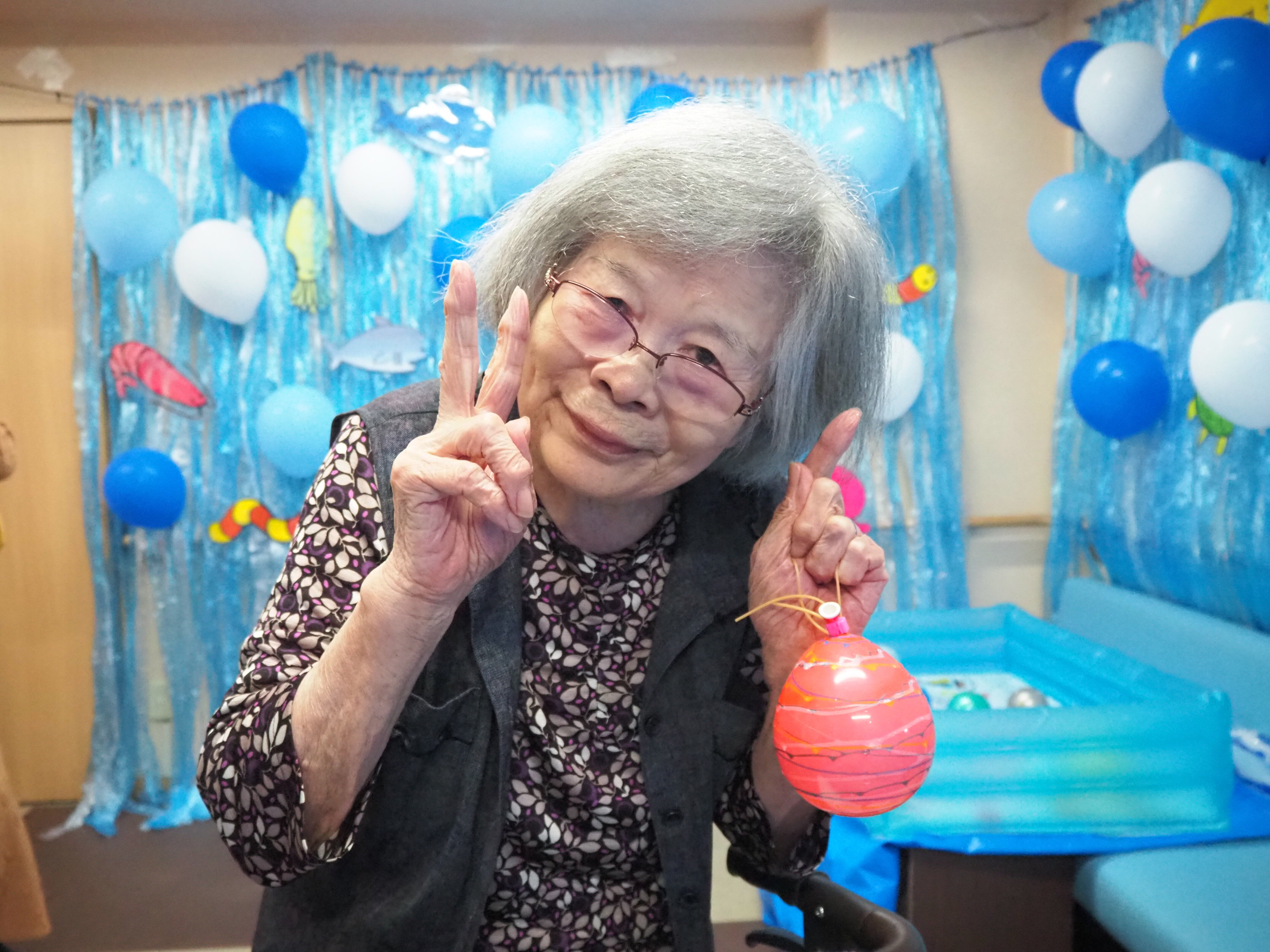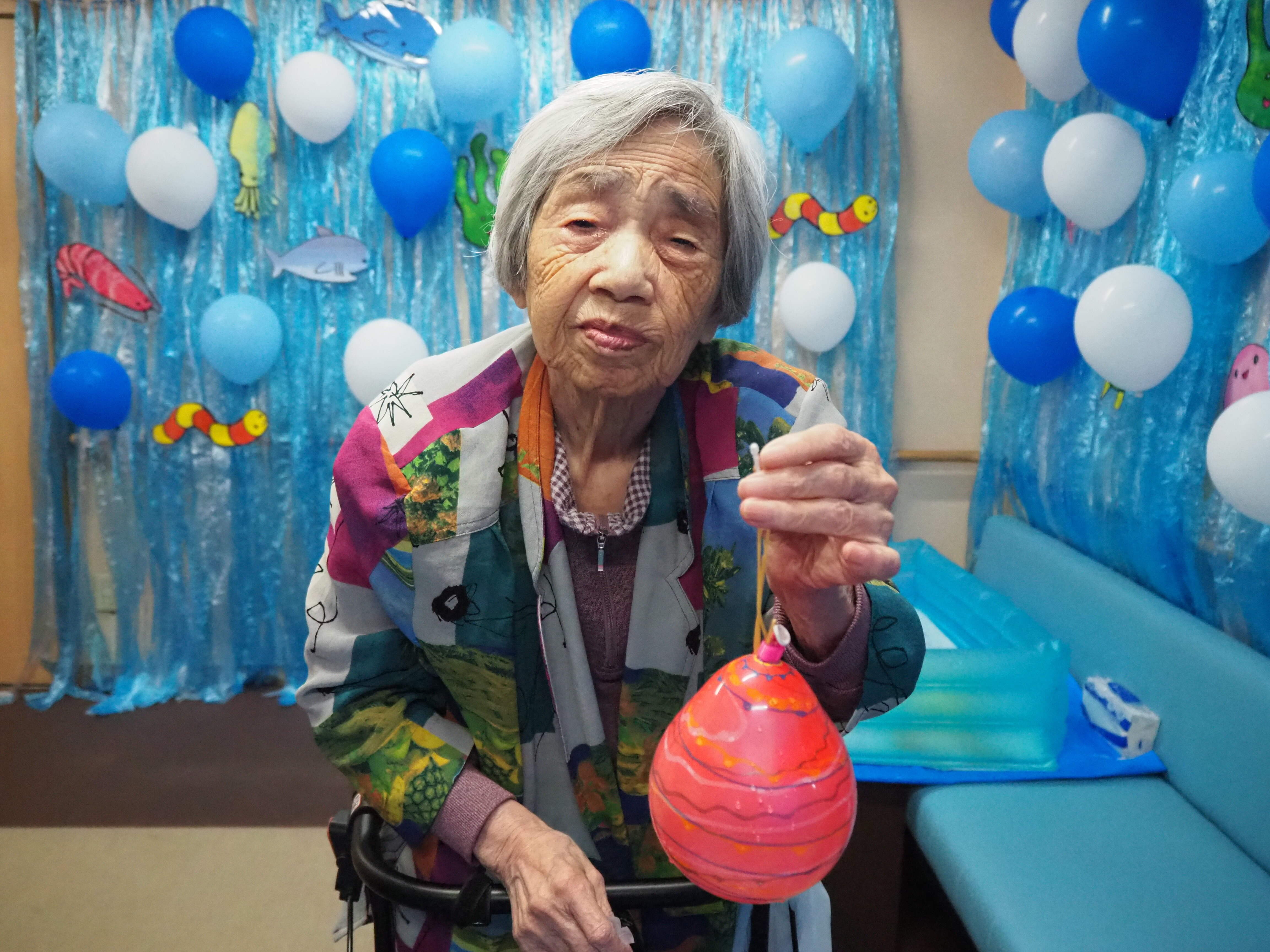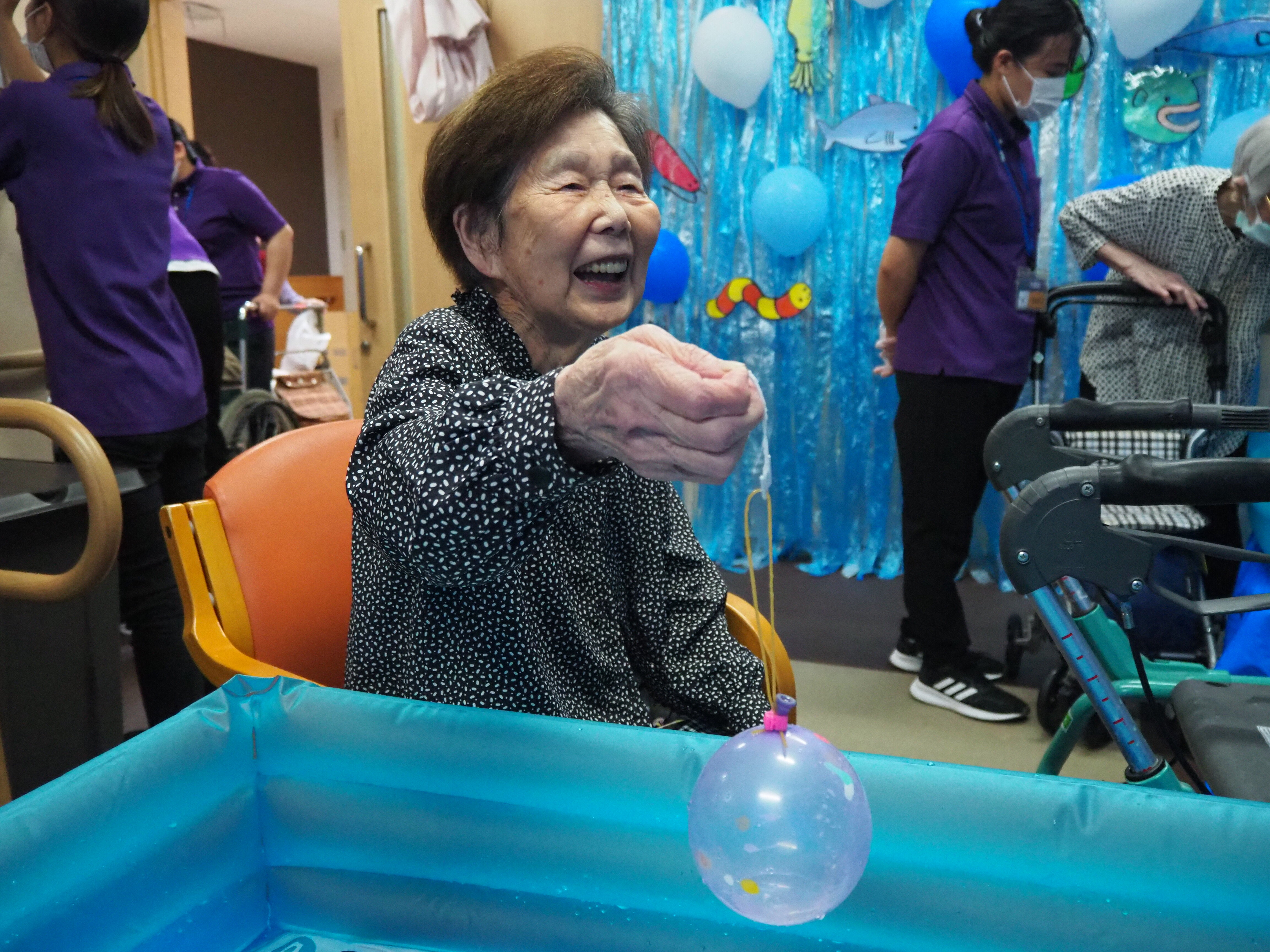 釣り上げた後は歩行器につけたり、部屋に飾っている方もおられました♪