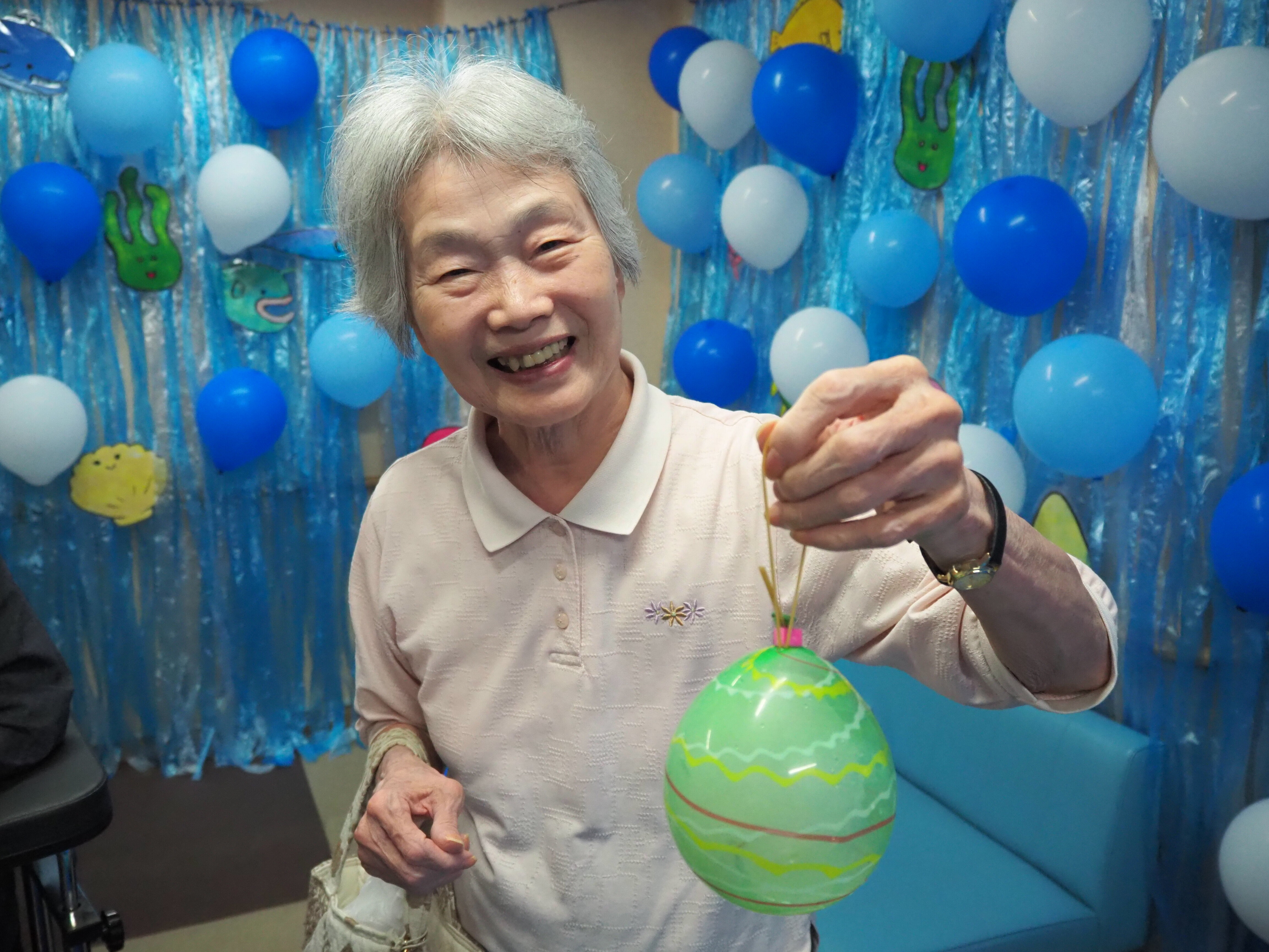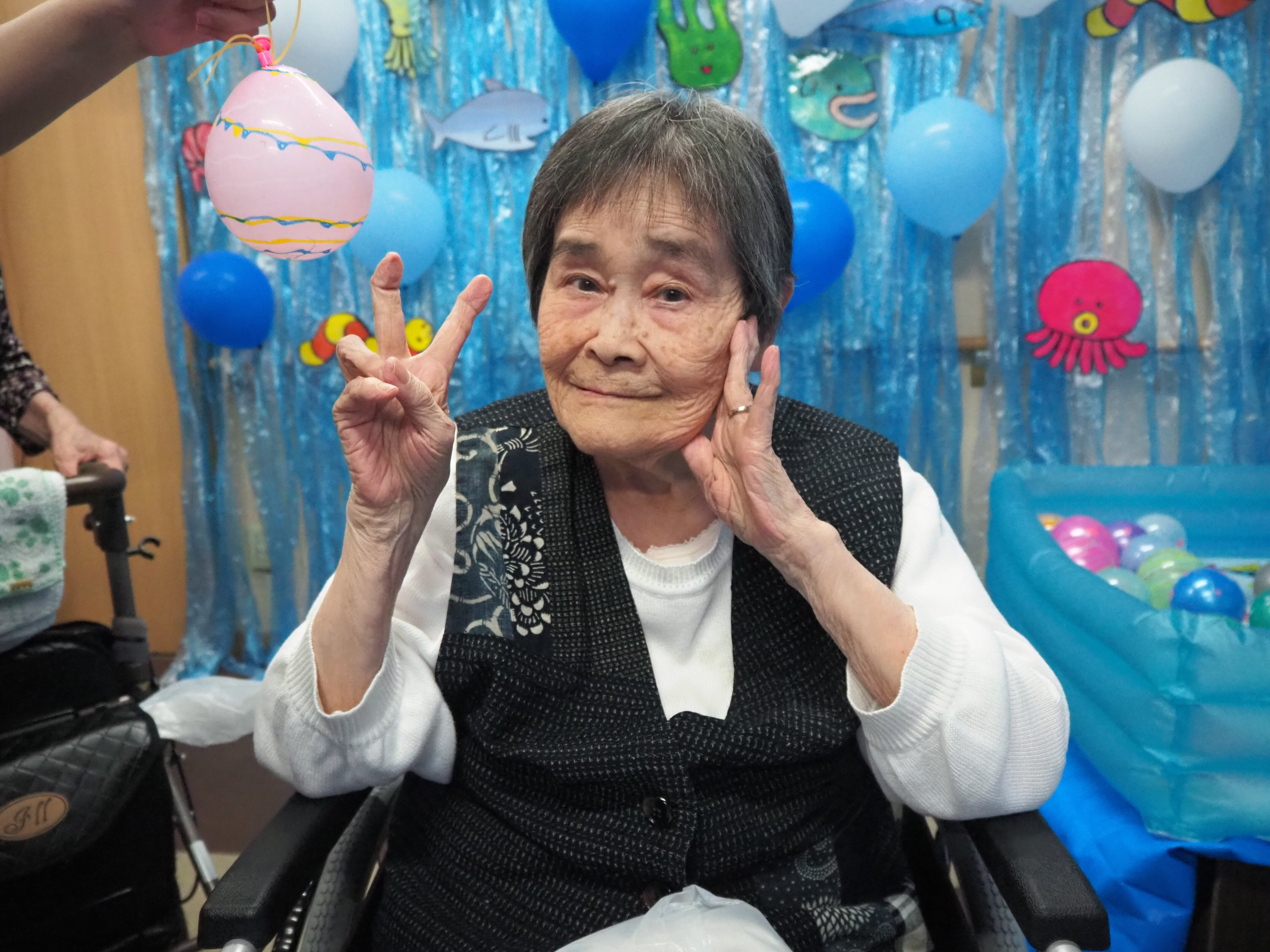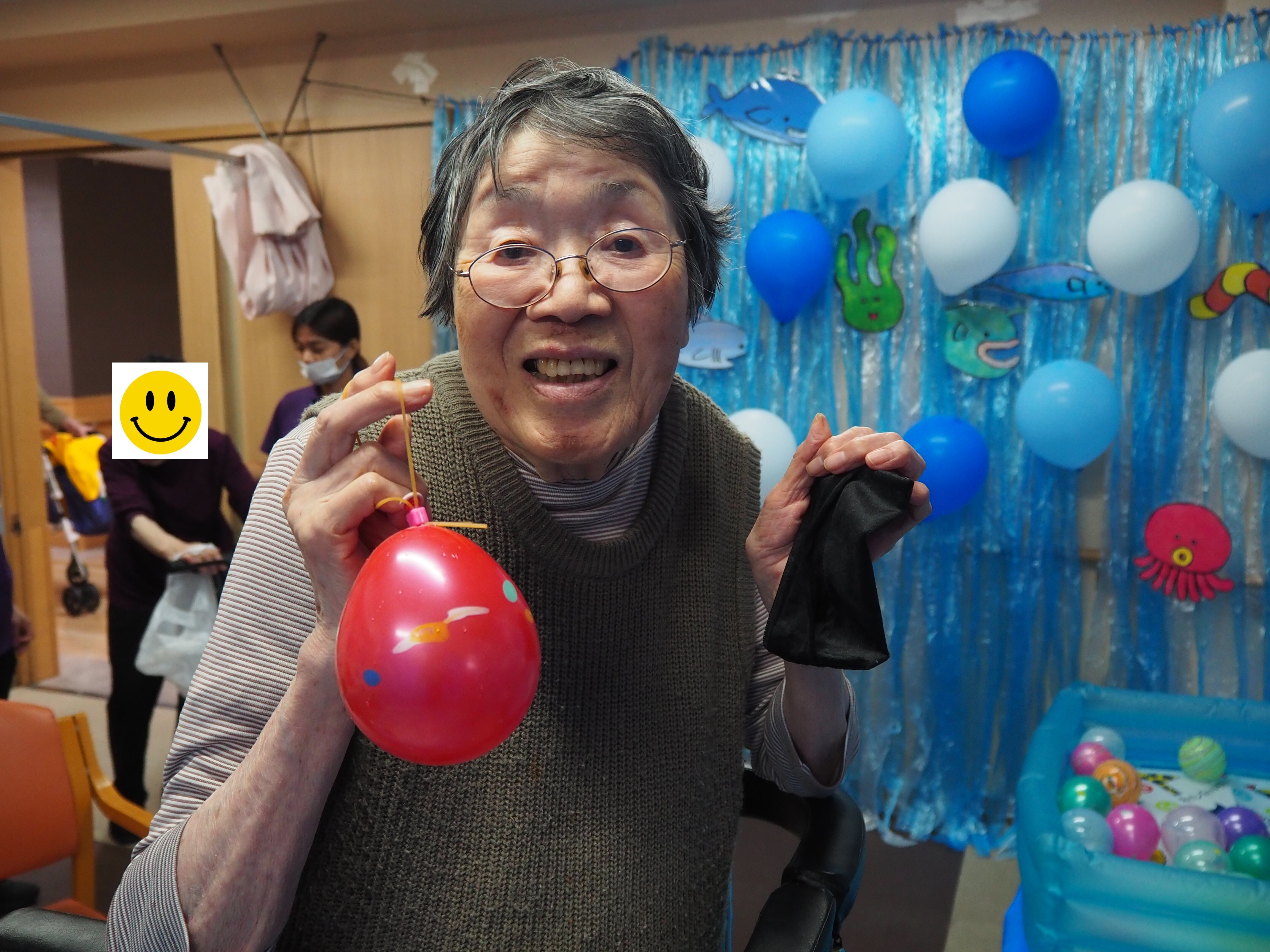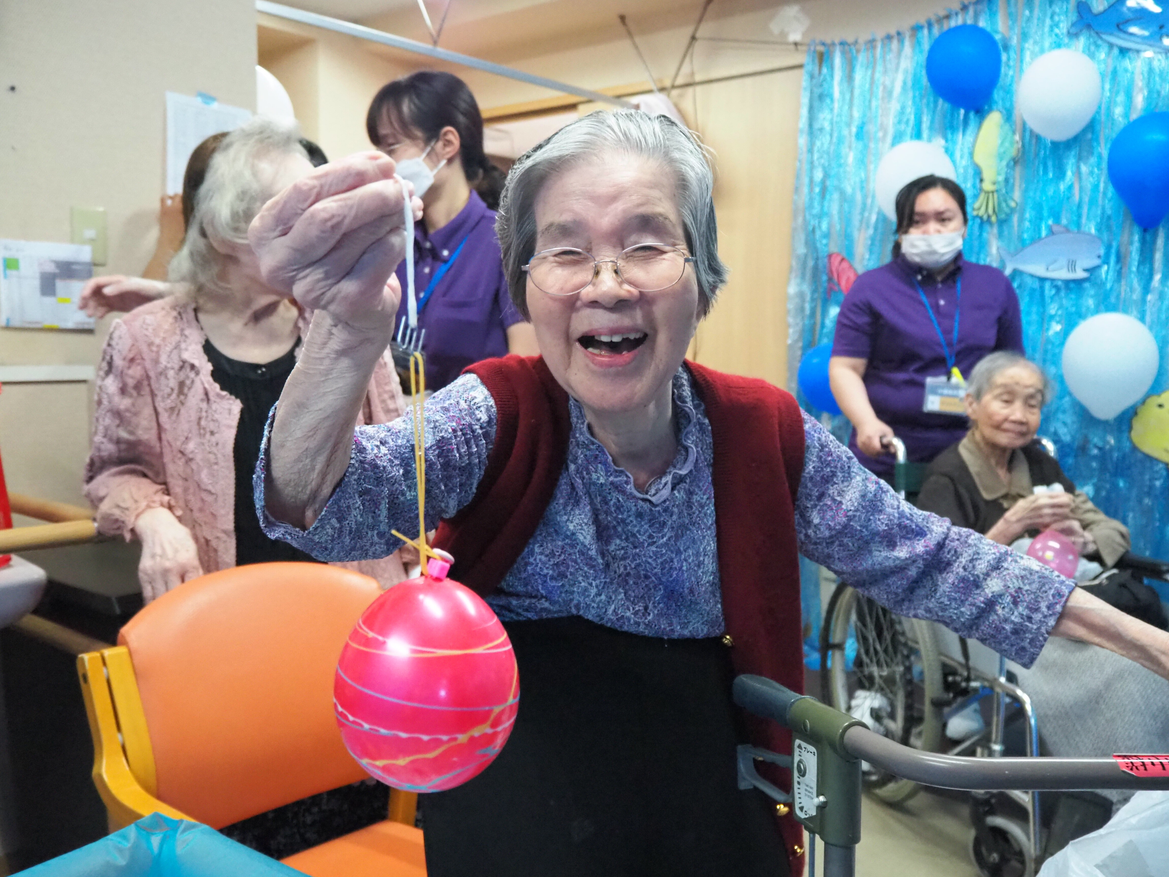 釣り上げた後は歩行器につけたり、部屋に飾っている方もおられました♪