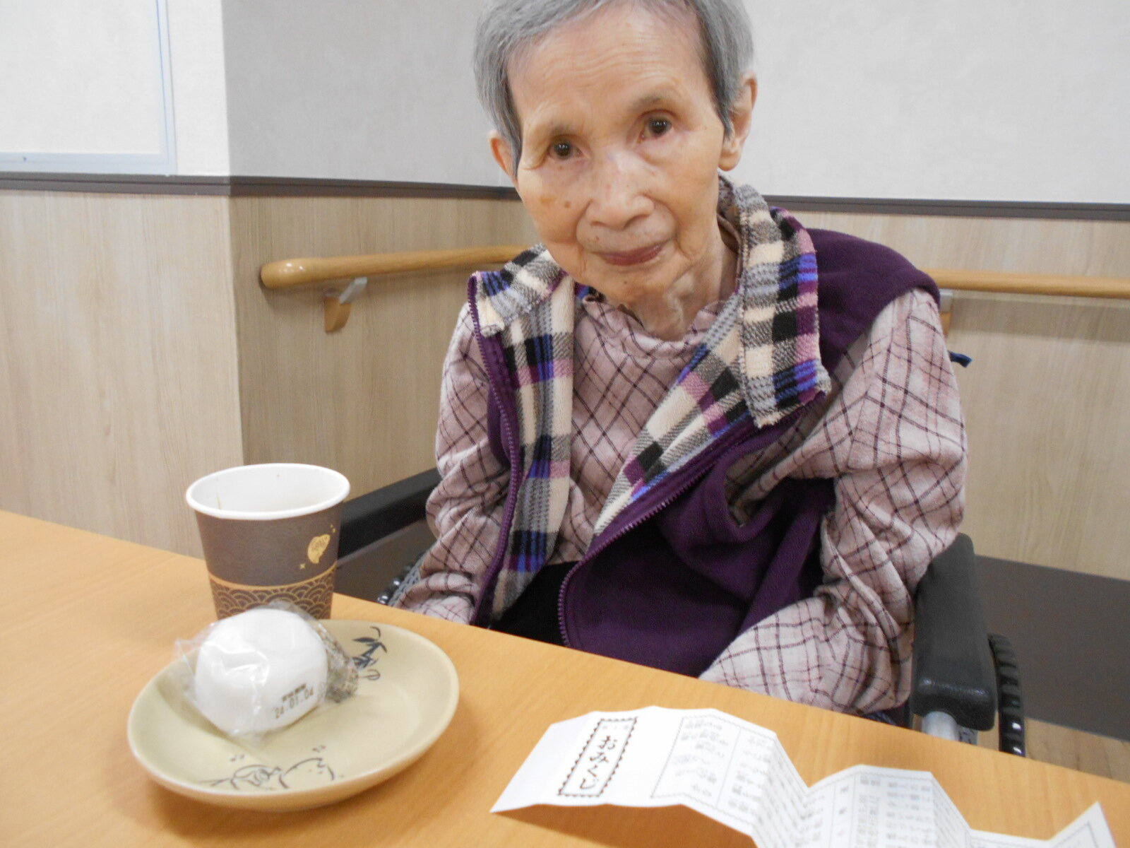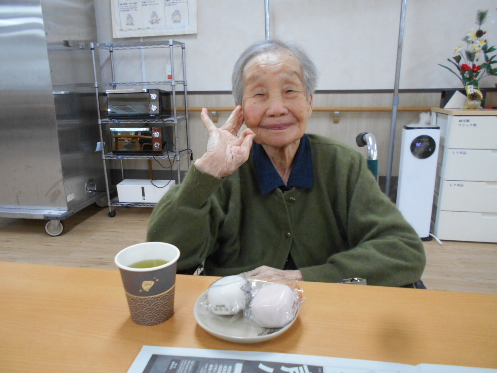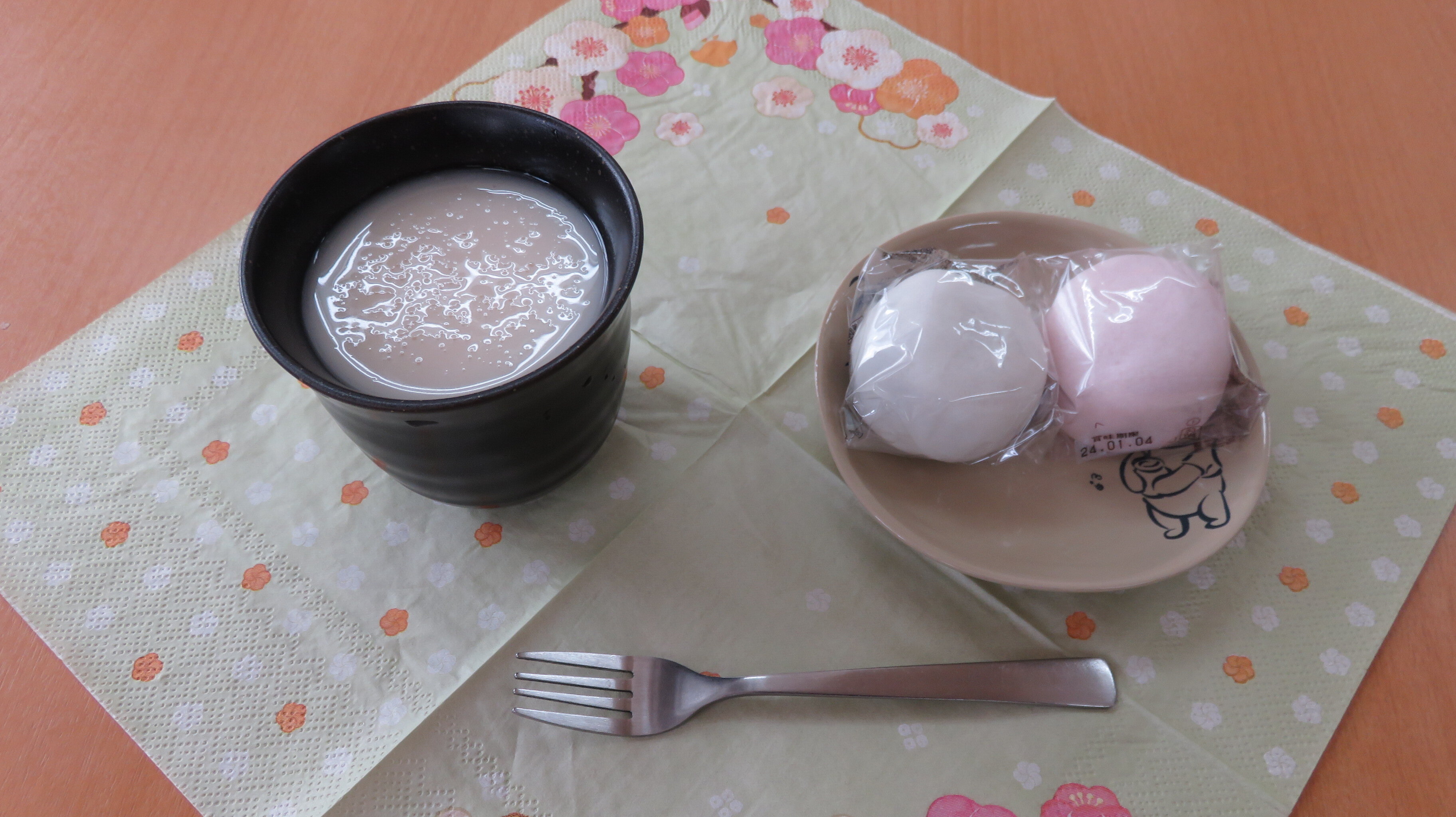 白鷺でもおやつに甘酒と紅白饅頭を召し上がっていただきました!