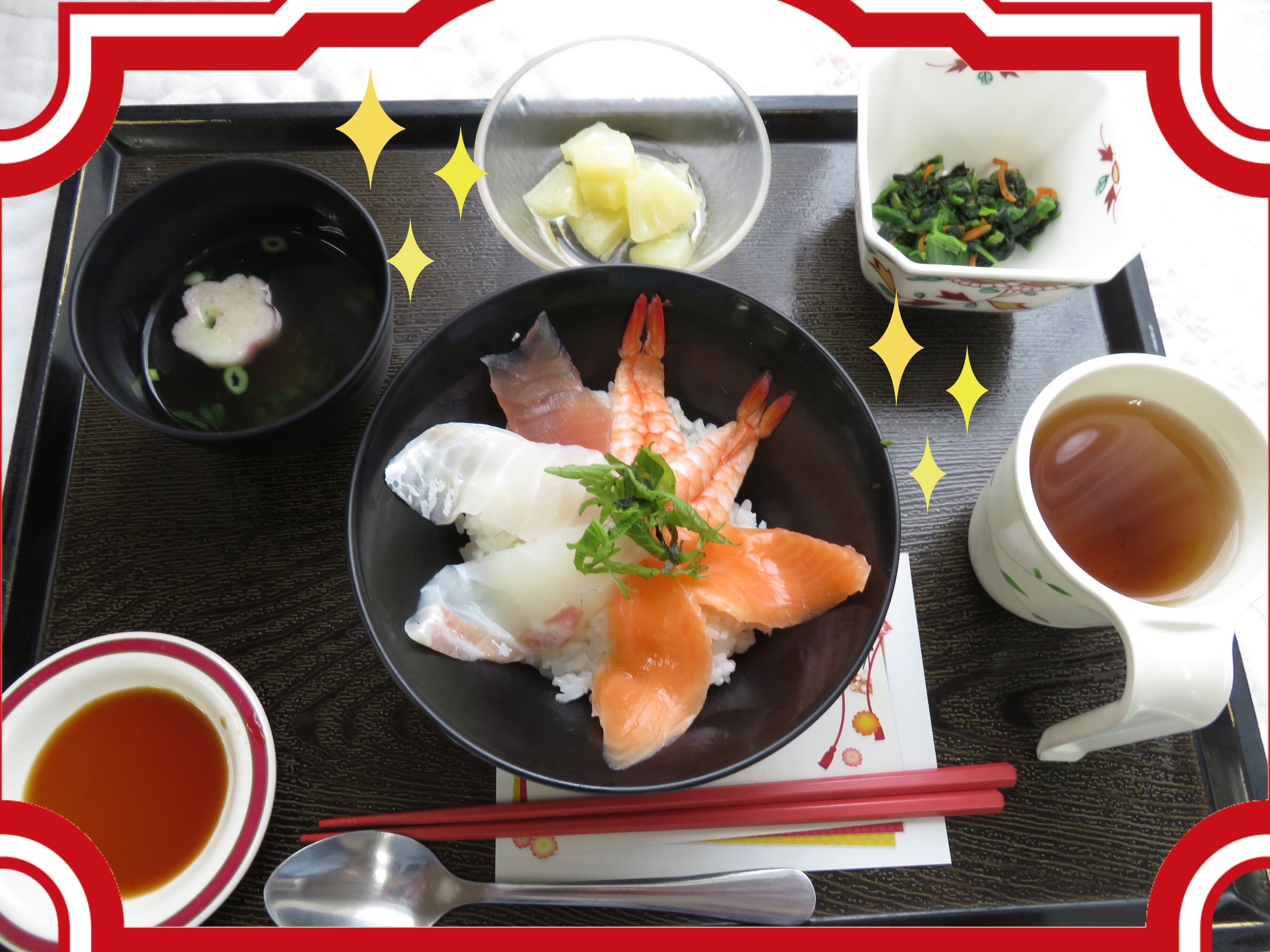 本日の昼食はごちそうメニュー「海鮮丼」でした。