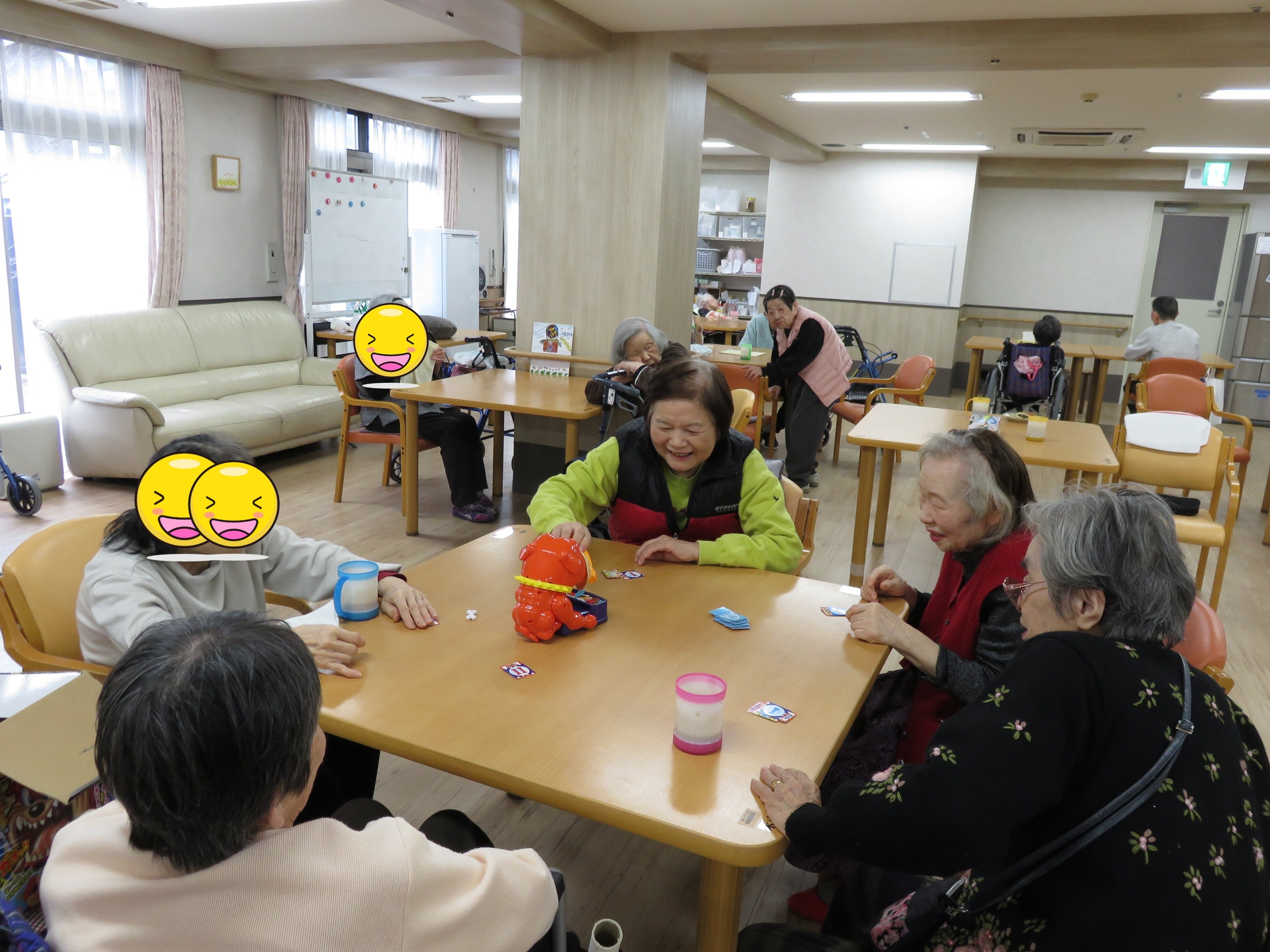 女性の入居者の方々が食堂でメイクをされていました!